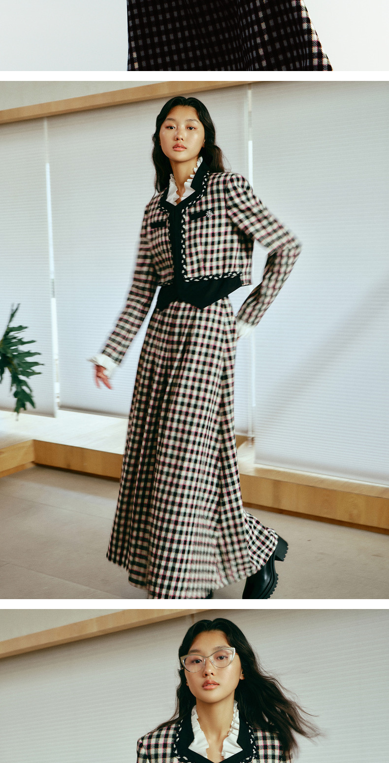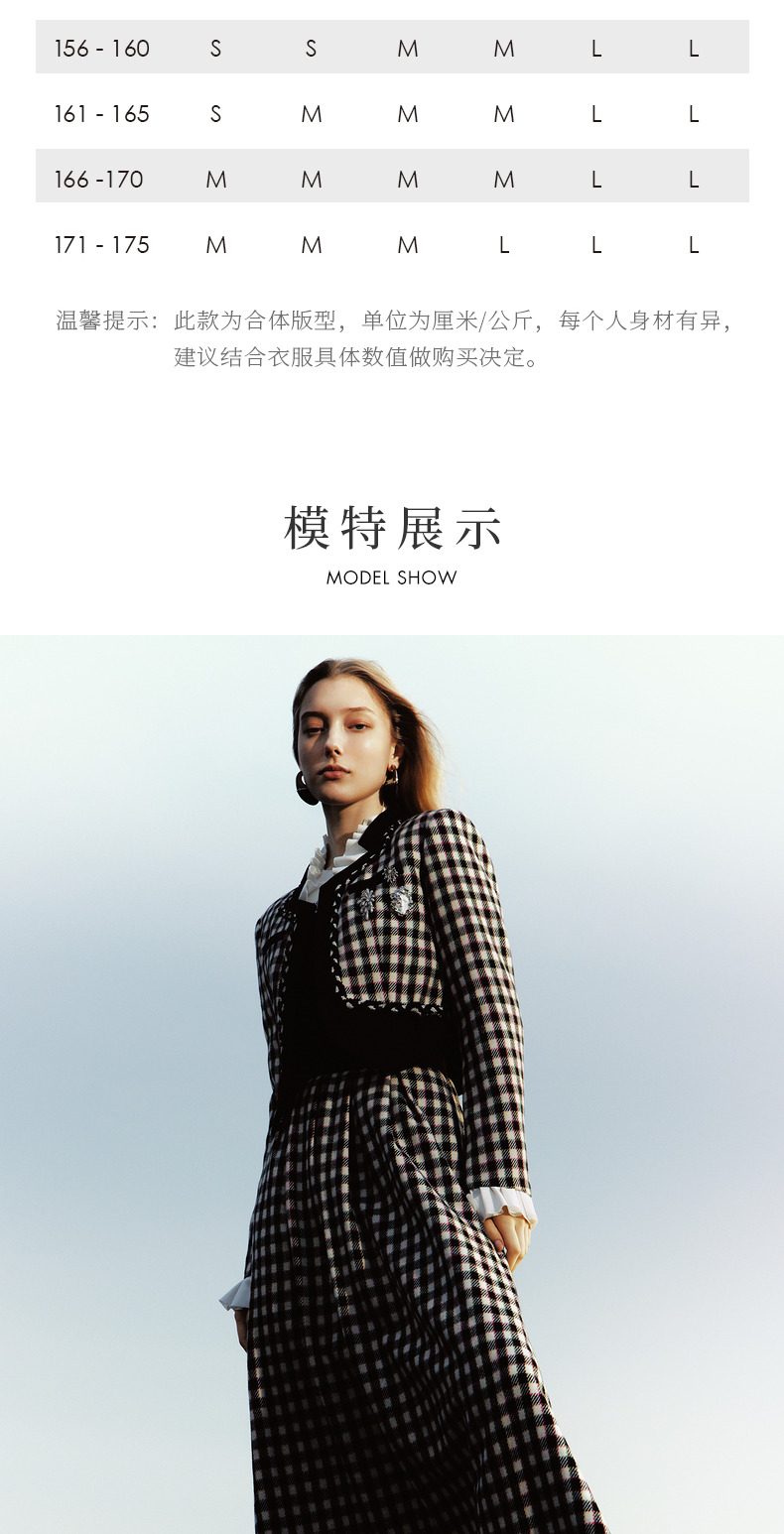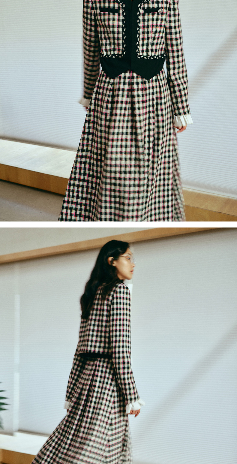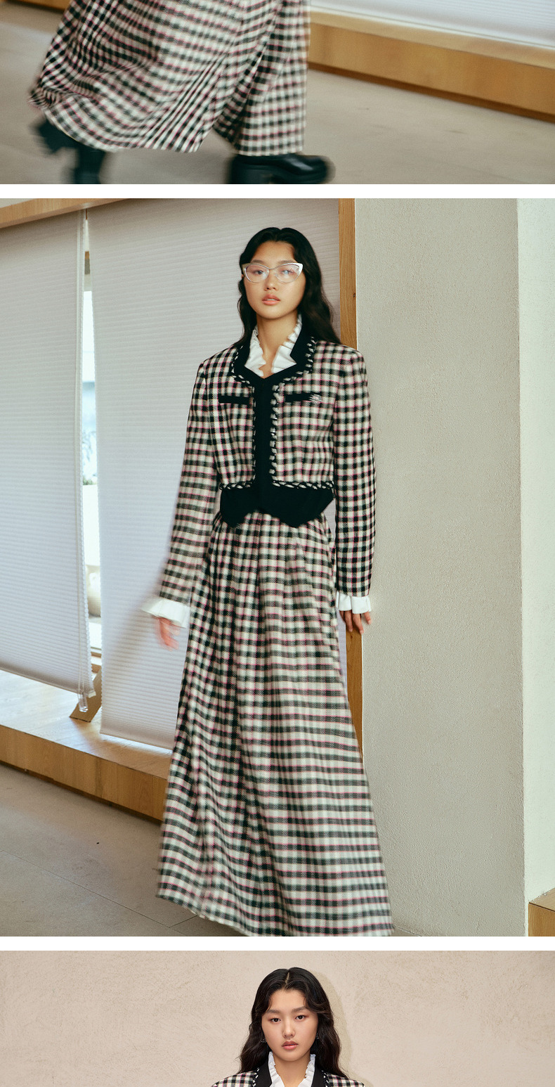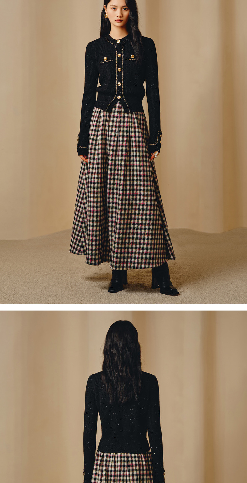MAXRIENY率性复古感花火宫廷半裙收腰大摆格纹长裙(货号:MC88SK783)