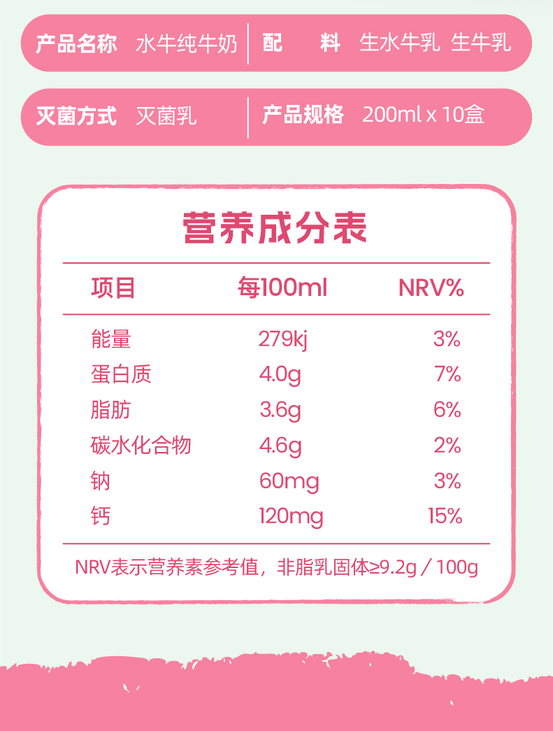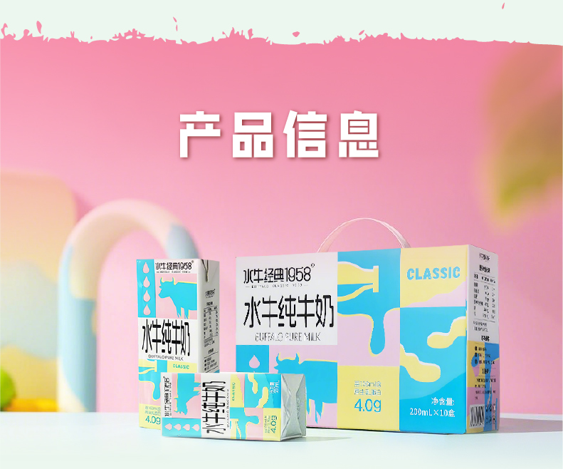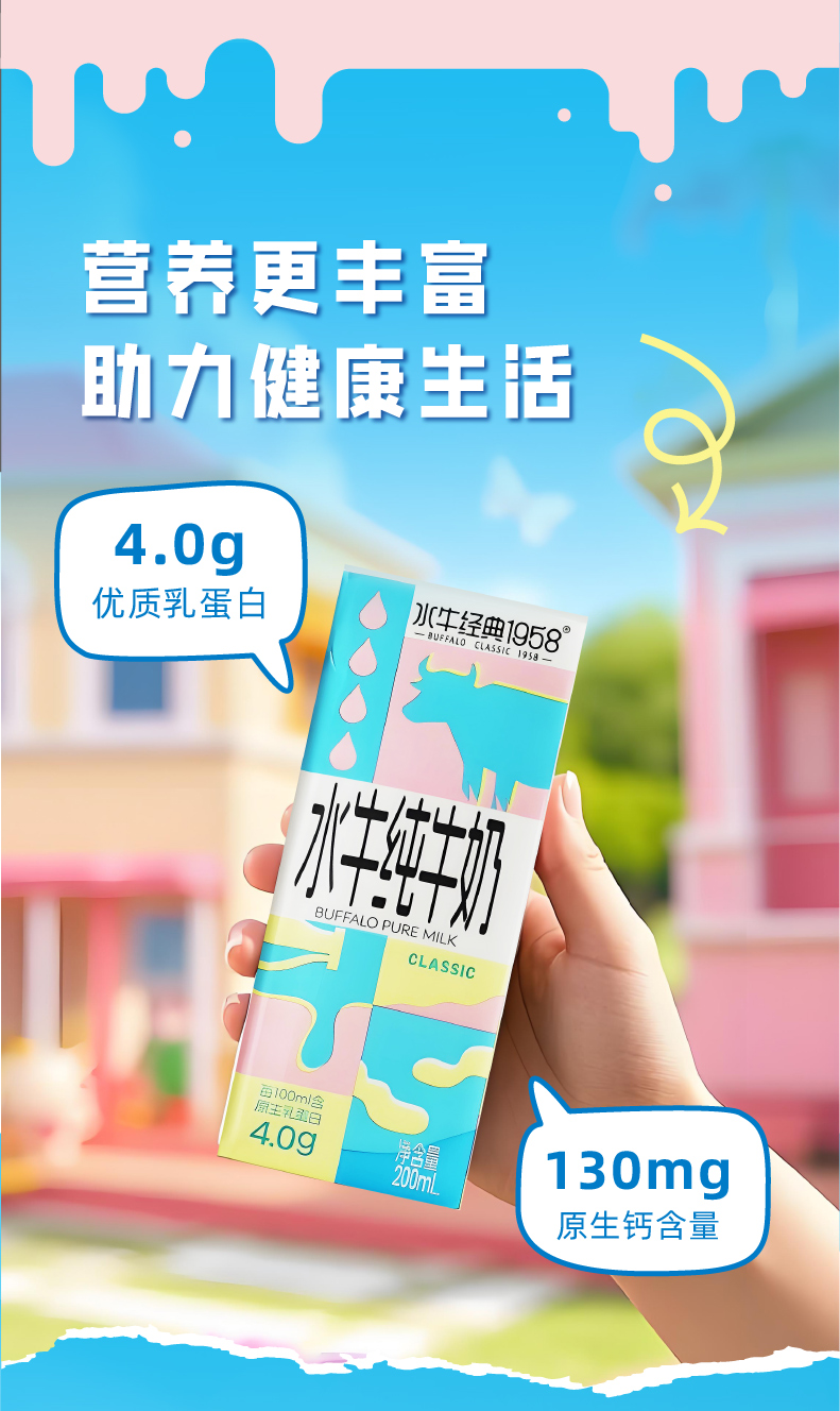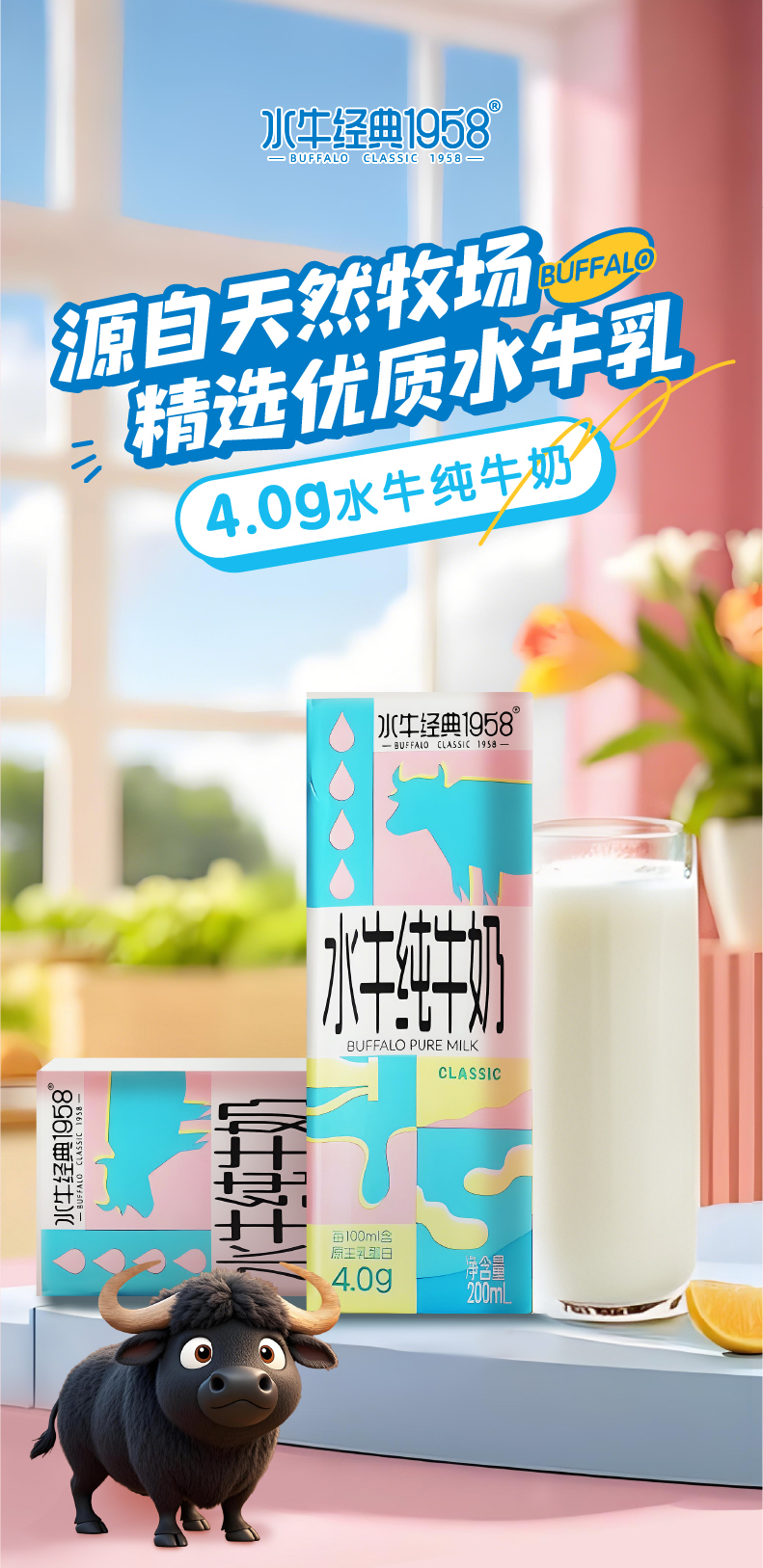 【预售-12月22日配送】水牛经典1958水牛纯奶/1箱(200ml*10盒)生产日期:10月15日左右