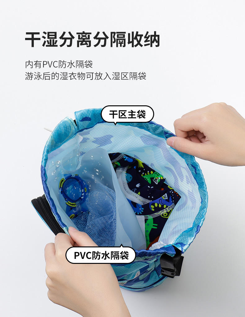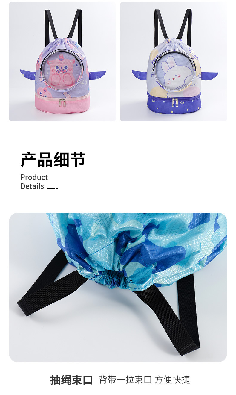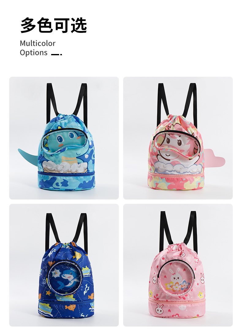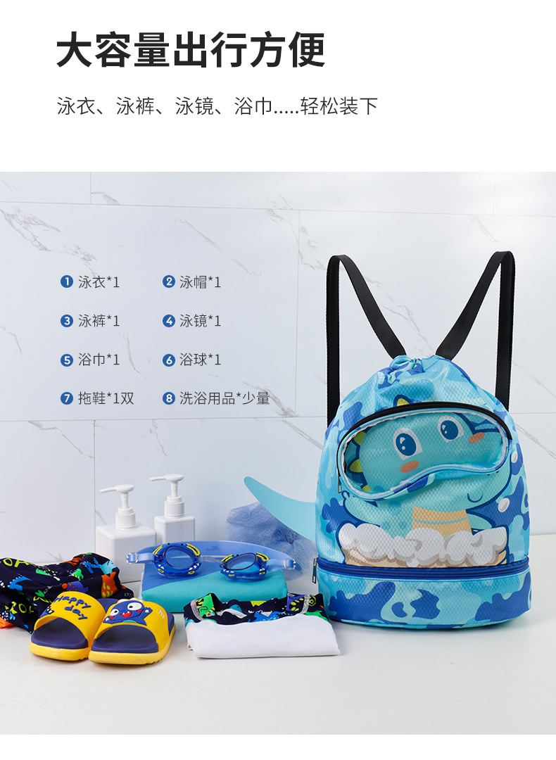 【夏日玩水游泳装备必备!萌趣卡通儿童游泳包】干湿分离防水,防泼水底部鞋仓,防刮耐磨,游泳包儿童收纳袋男女童可爱卡通运动便携沙滩双肩包-SH