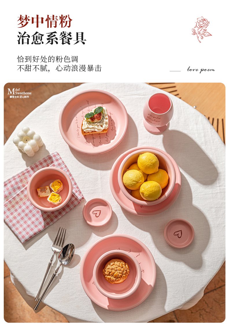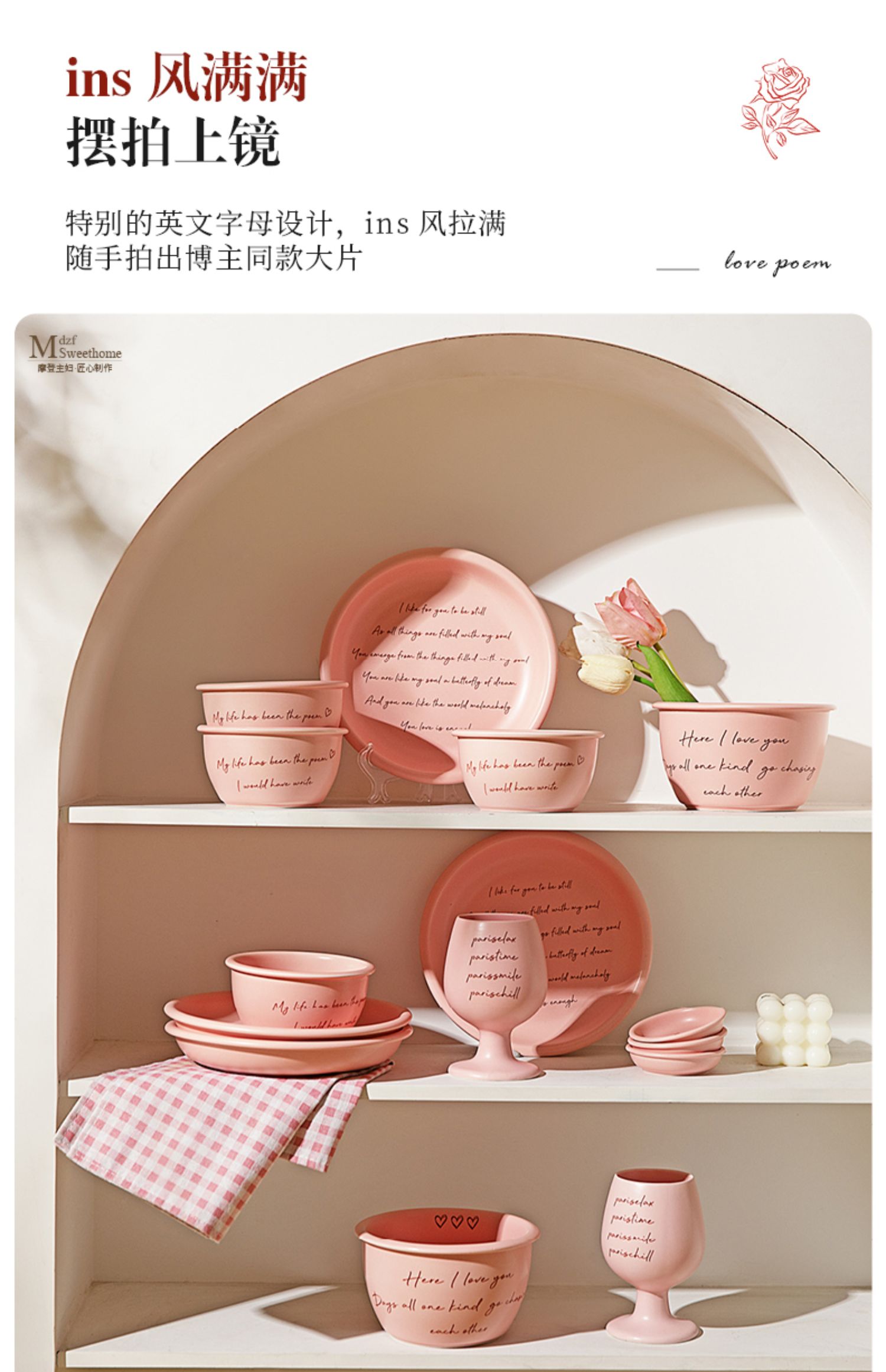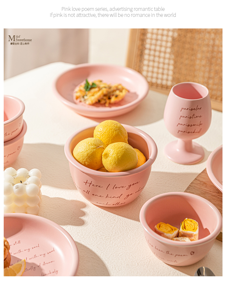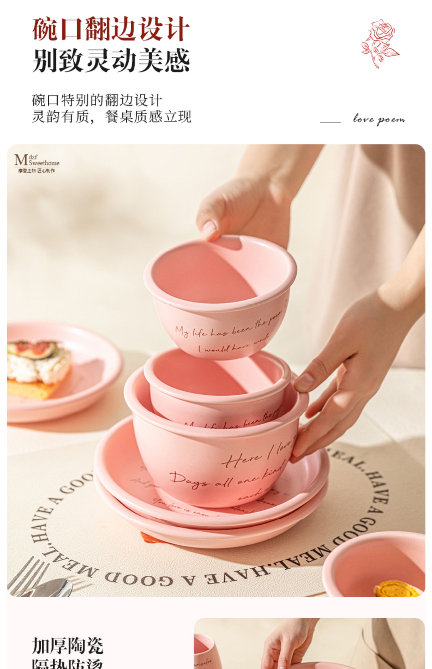 摩登主妇粉色情诗饭碗盘子餐具ins风沙拉碗高颜值家用陶瓷早餐碗