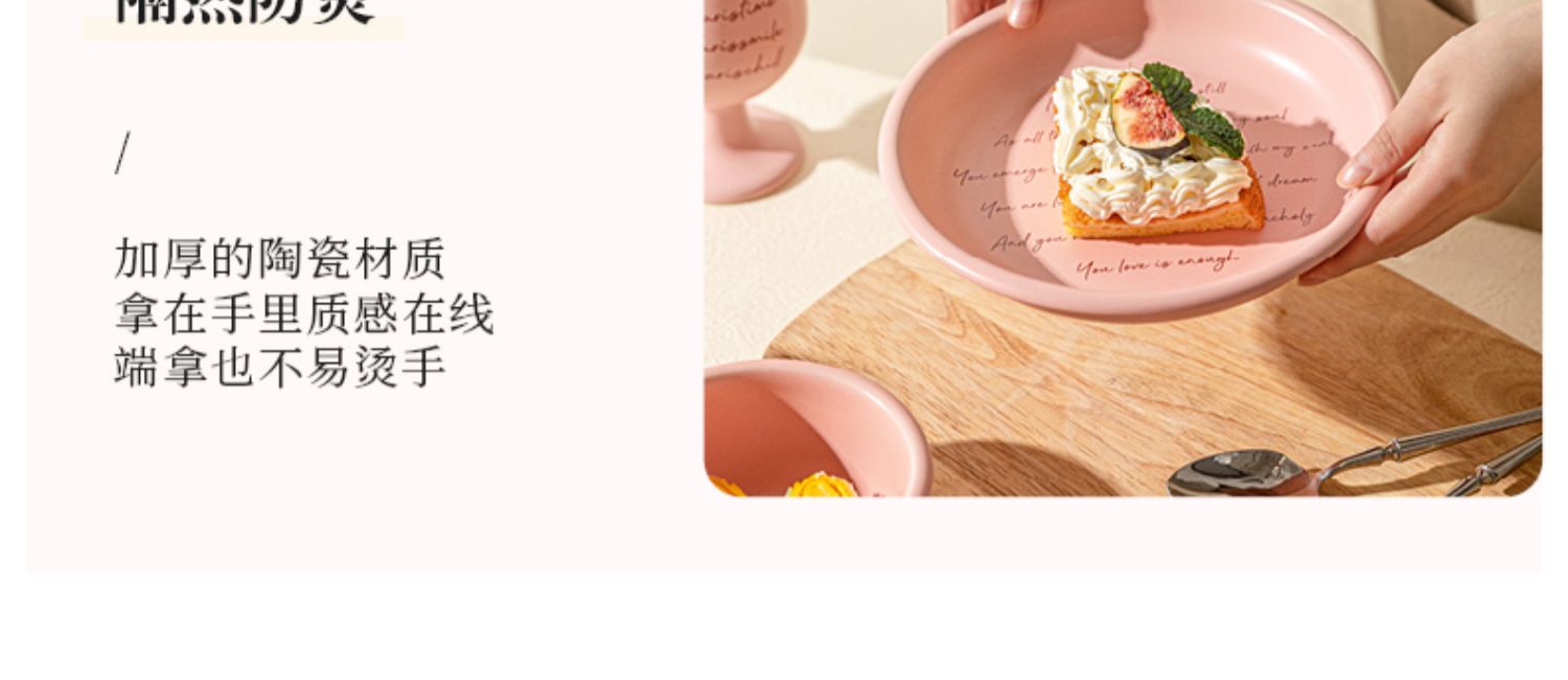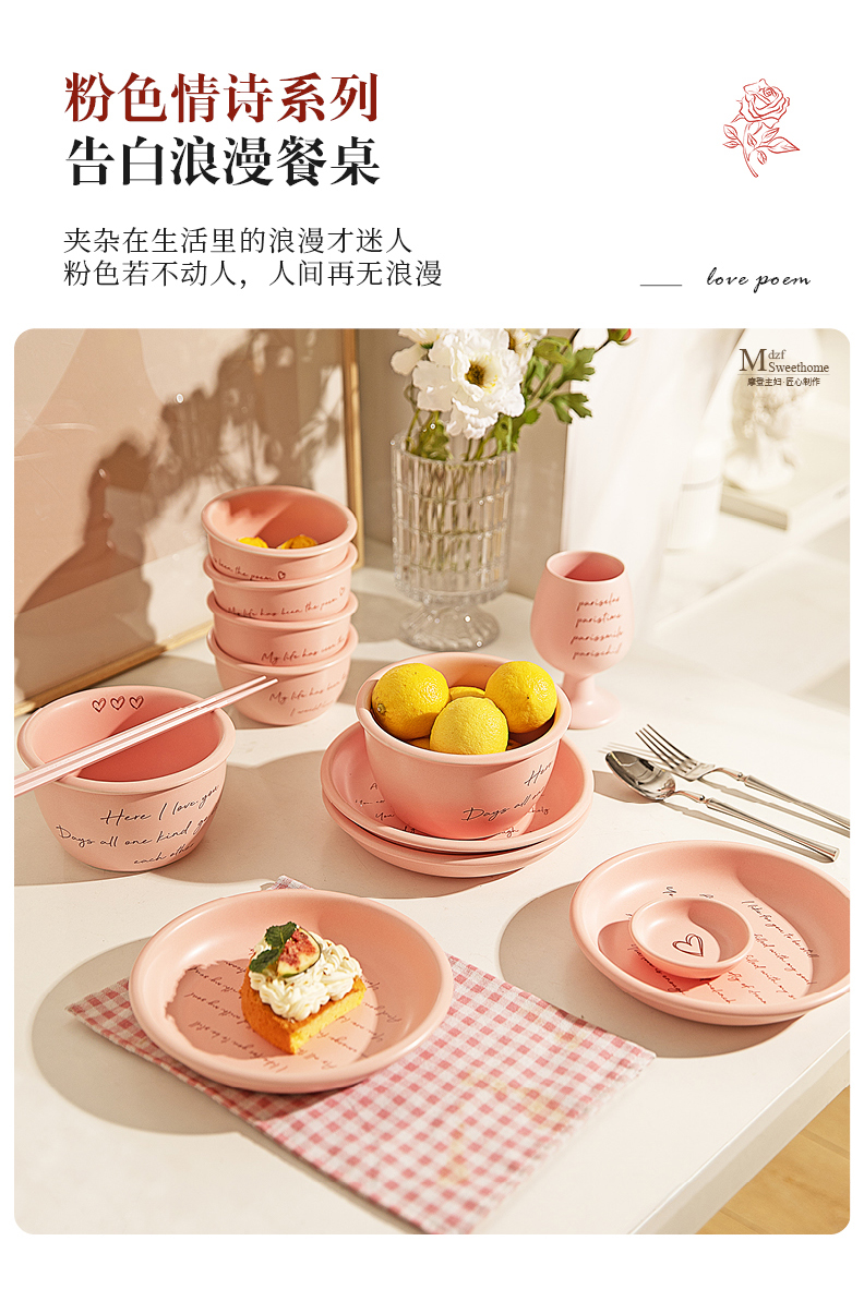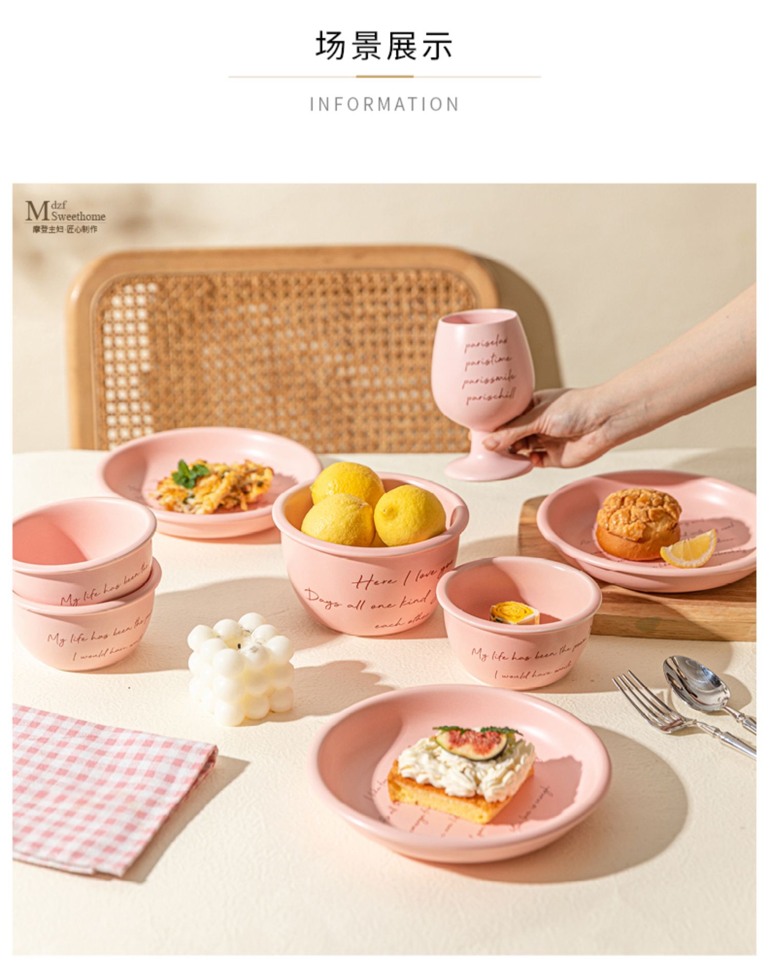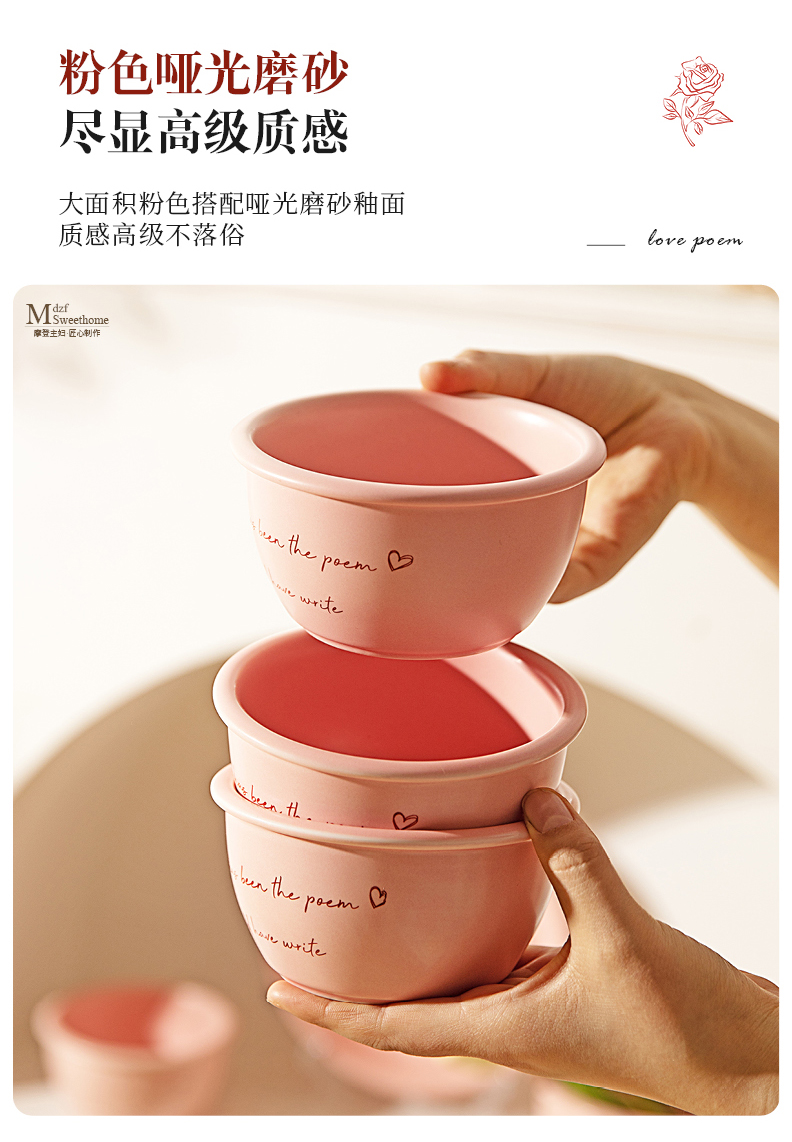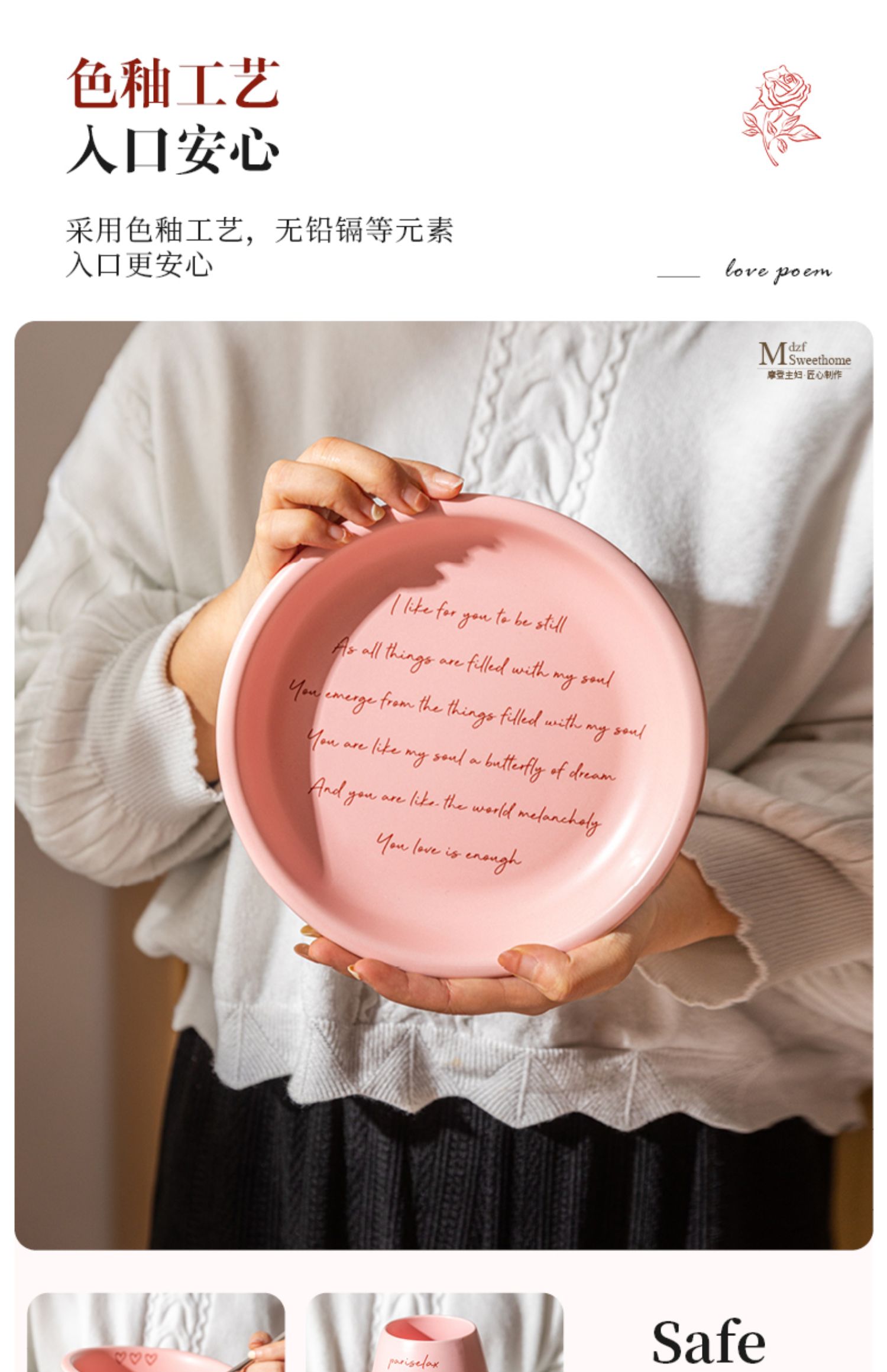 摩登主妇粉色情诗饭碗盘子餐具ins风沙拉碗高颜值家用陶瓷早餐碗