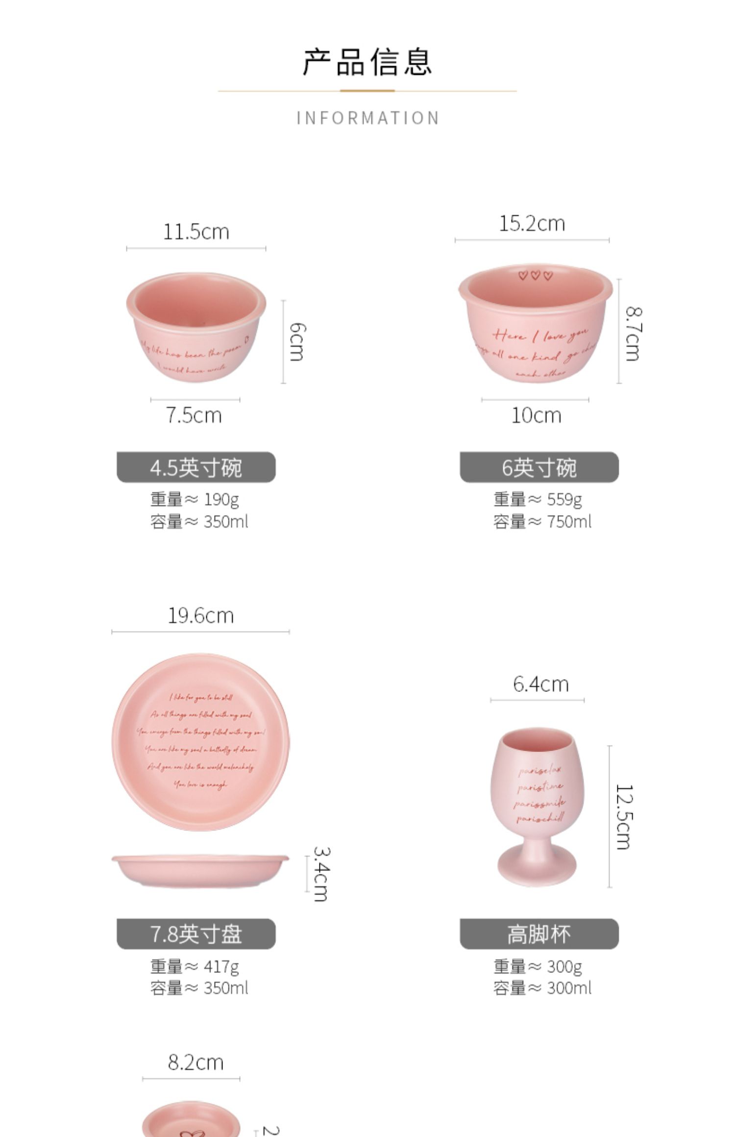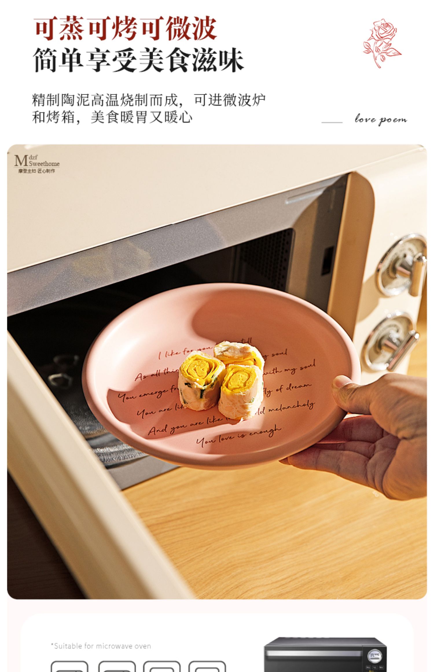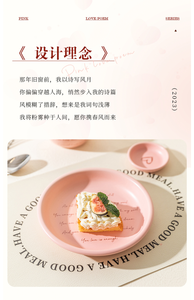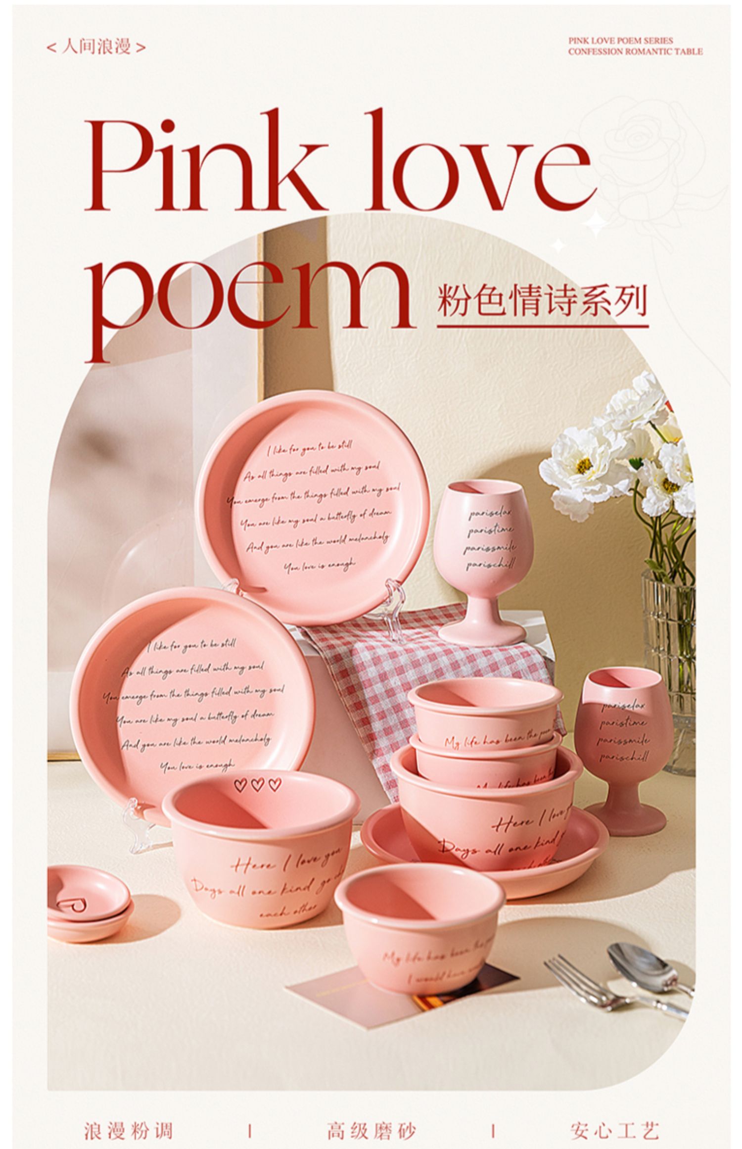 摩登主妇粉色情诗饭碗盘子餐具ins风沙拉碗高颜值家用陶瓷早餐碗