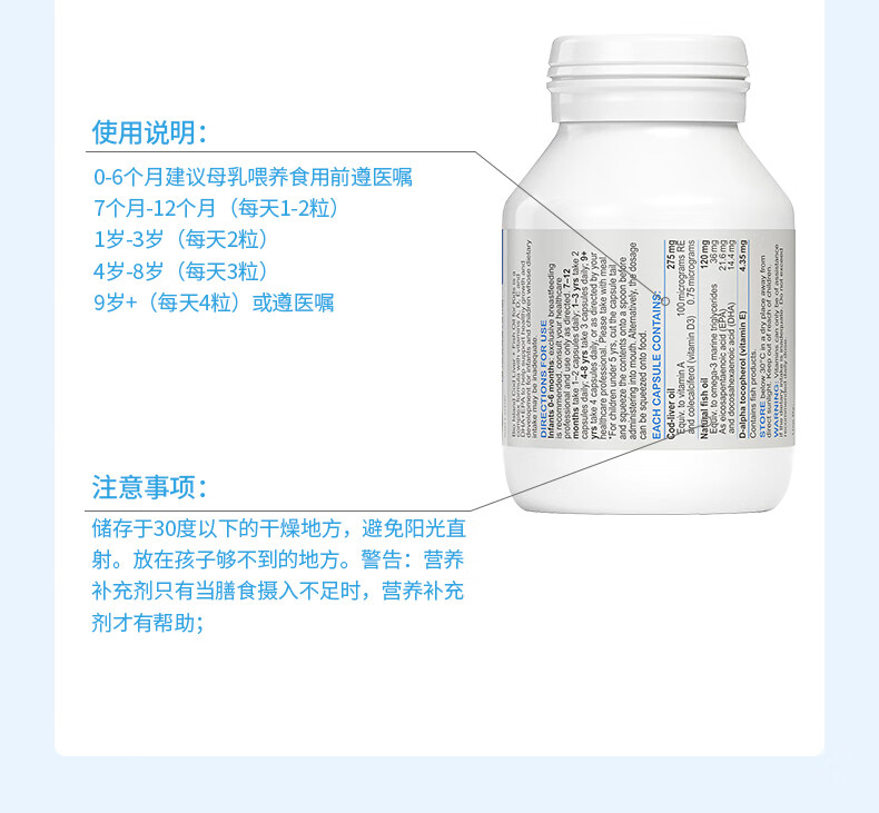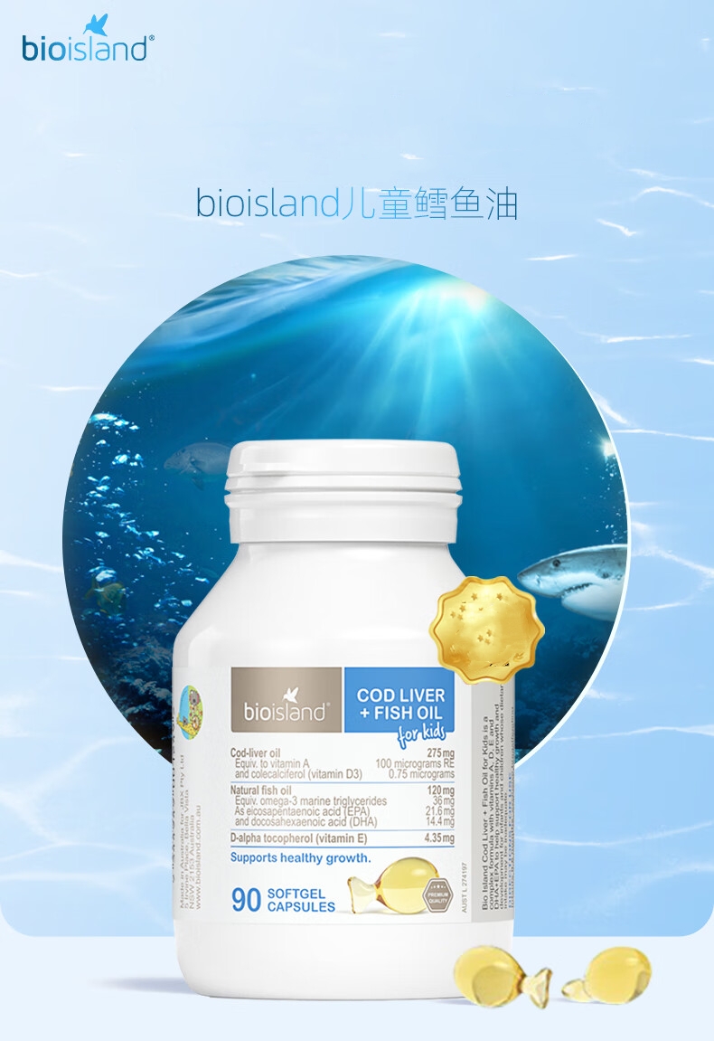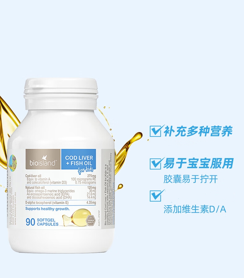 【跨境】澳洲bioisland佰澳朗德婴幼儿液体钙鱼油 90粒/瓶装(新老包装随机发)