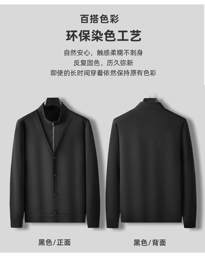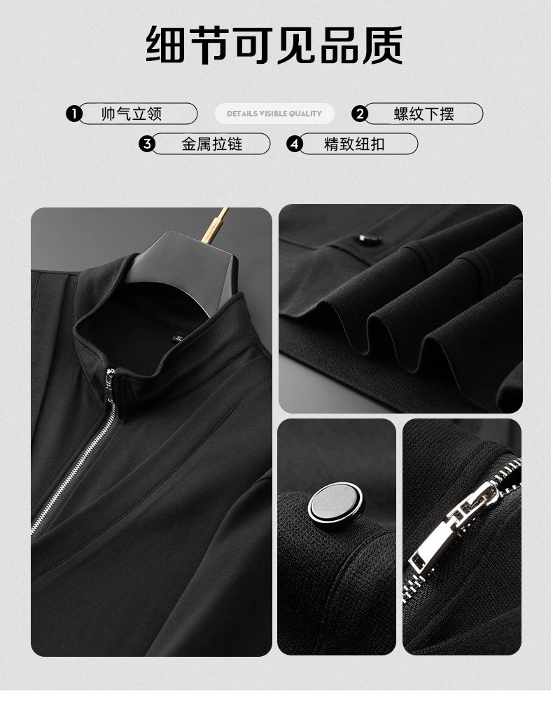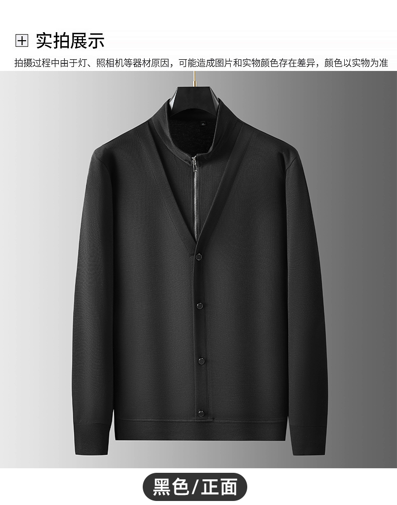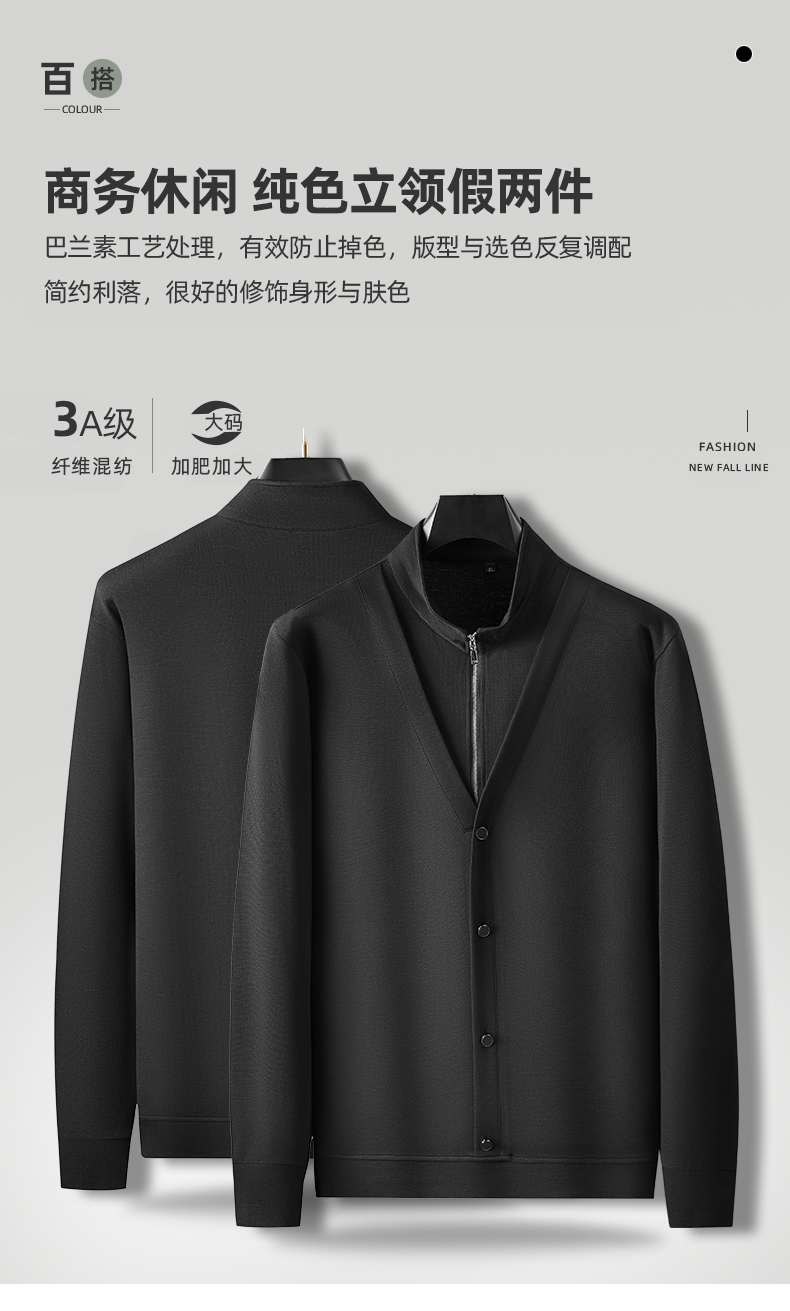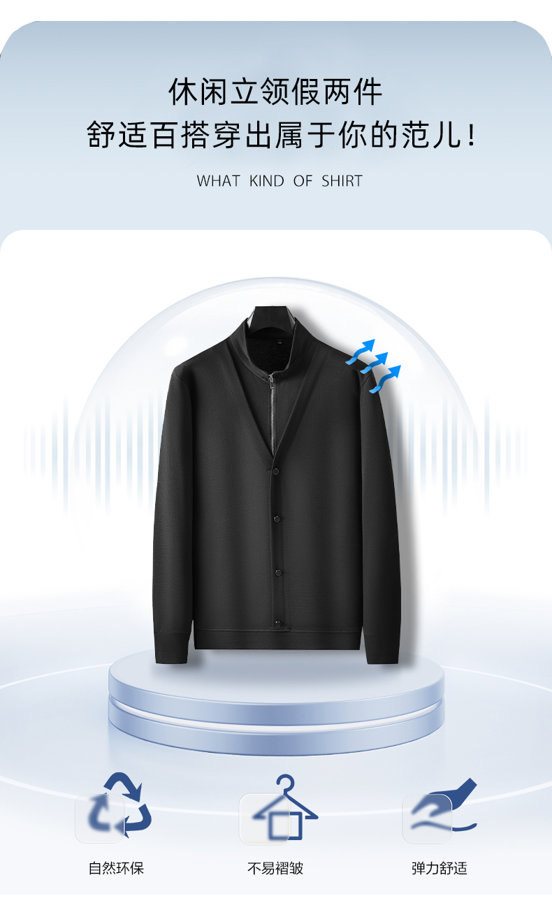 【假两件】【新款DDA】大依优型大码男士立领假两件长袖T恤商务休闲上衣加肥加大胖子舒适