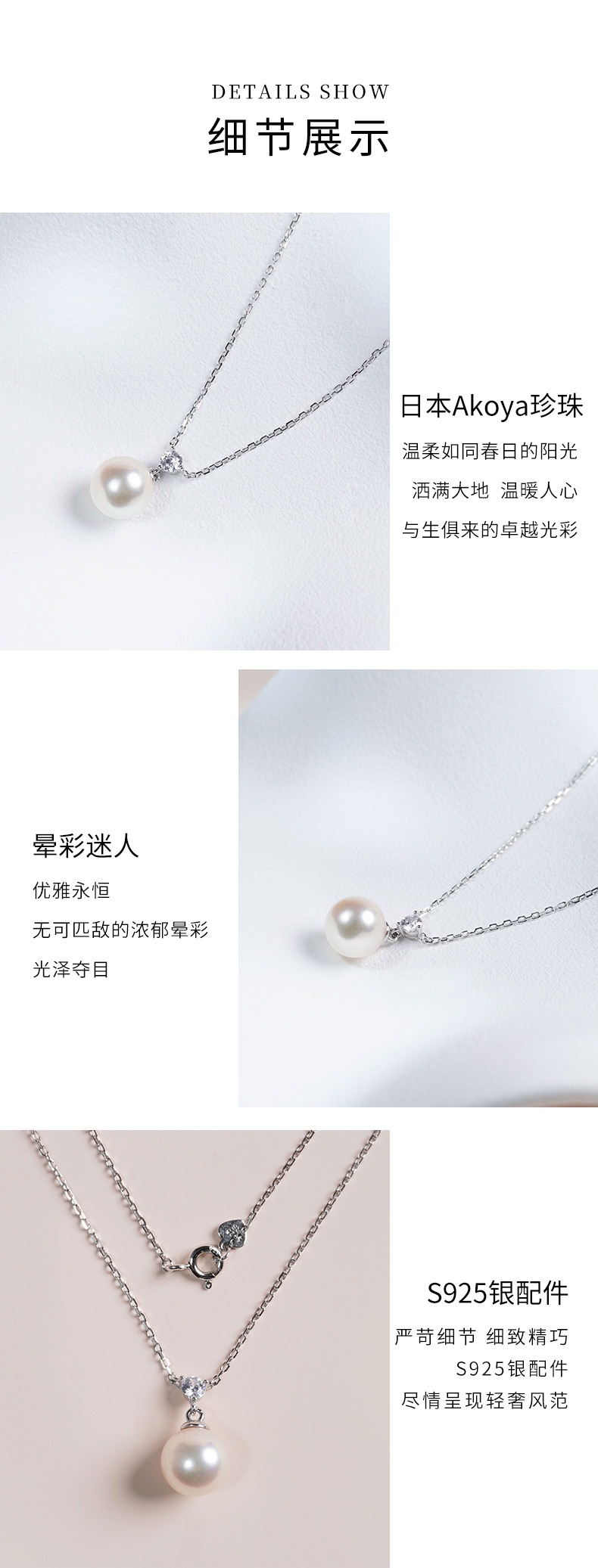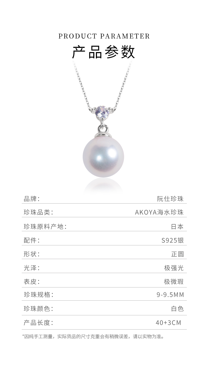 阮仕珍珠 日韵凝光系列S925银日本珠AKOYA珍珠链牌 9-9.5mm 正圆 极微瑕 极强光