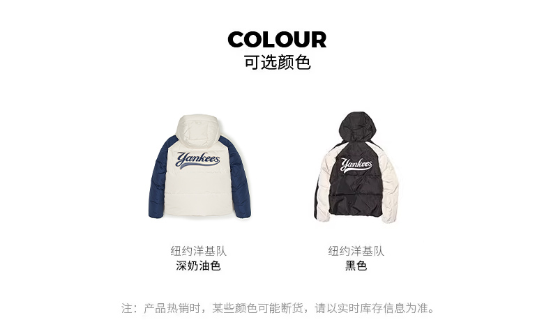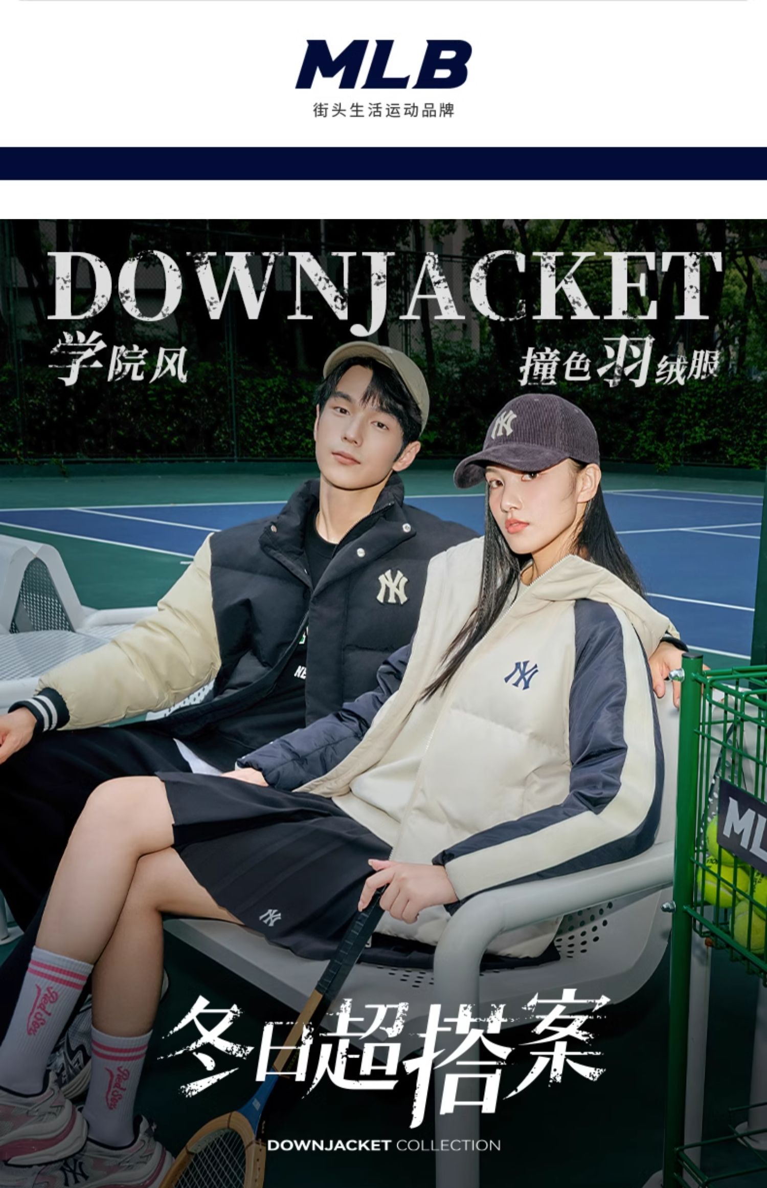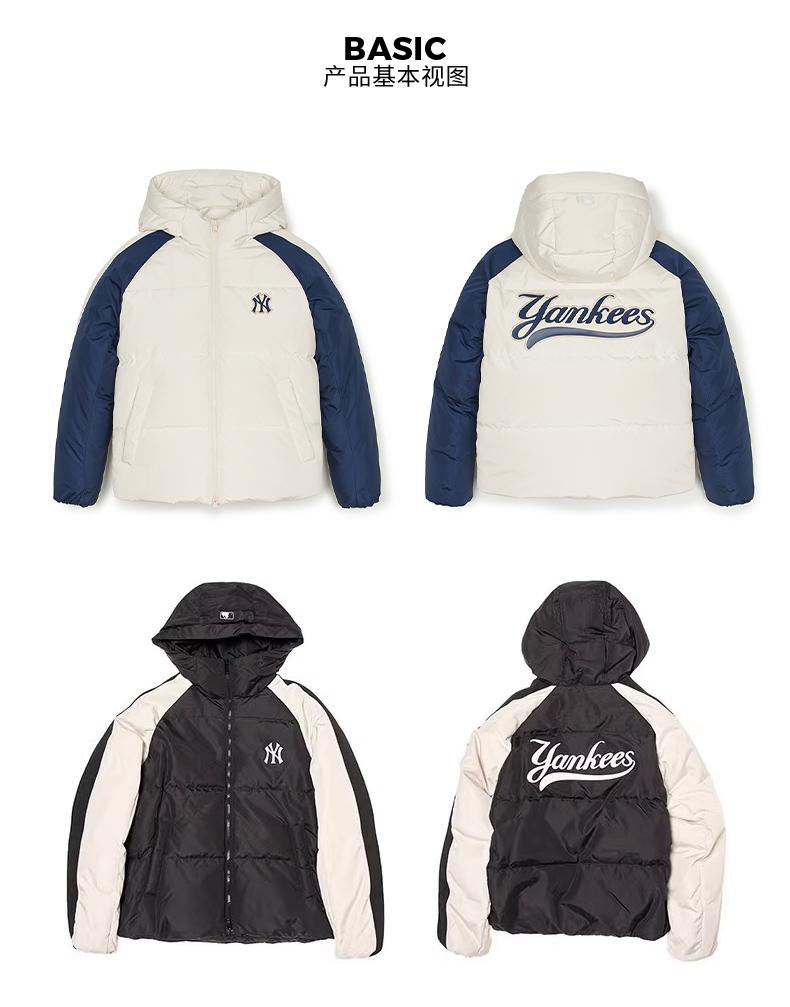 MLB男女同款学院风字母标拼接色羽绒服3ADJV0246
