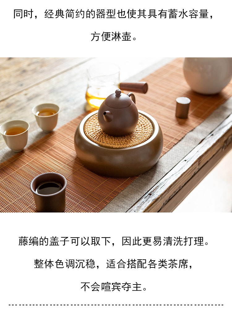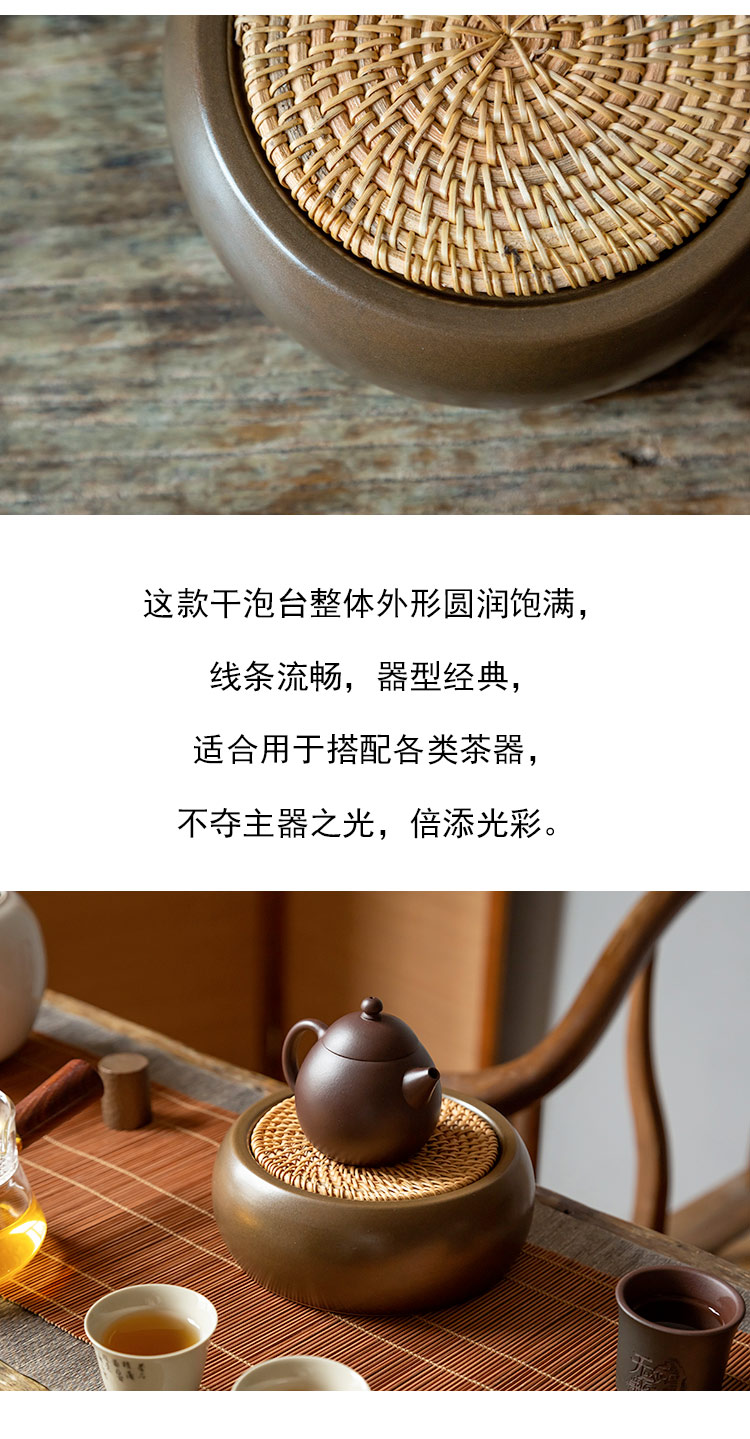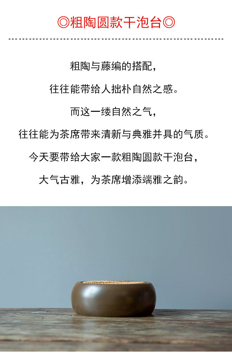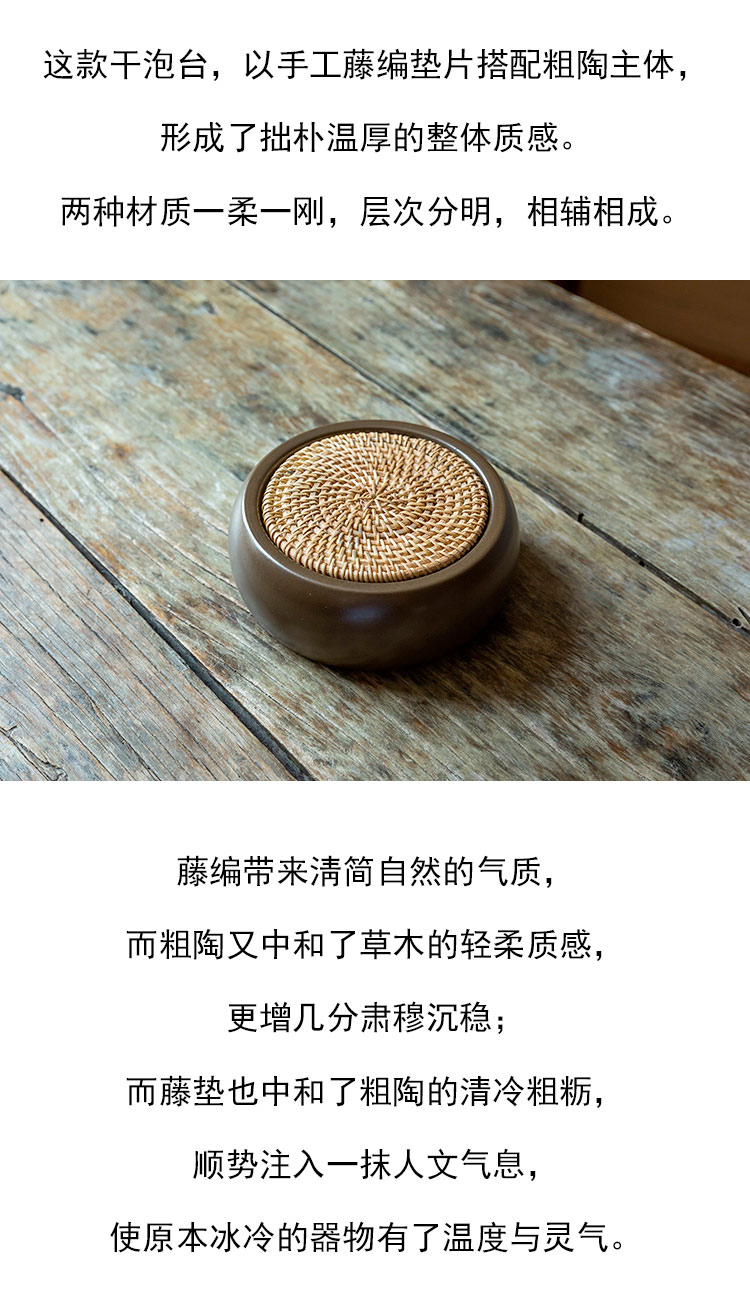茶香记 粗陶圆款干泡台带藤垫陶瓷壶承茶盘壶托茶桌零配拙朴大气
