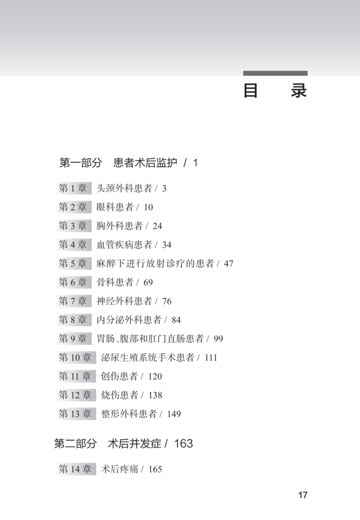 《麻省总医院术后监护管理手册》共分为以下四个部分: