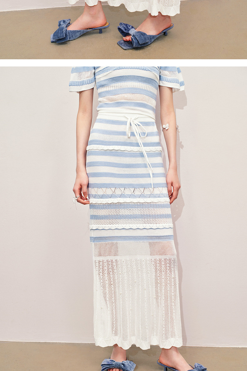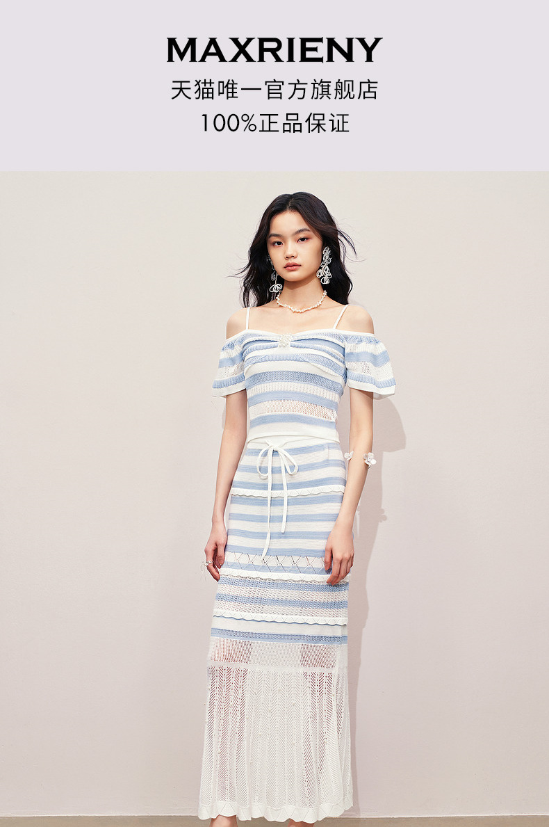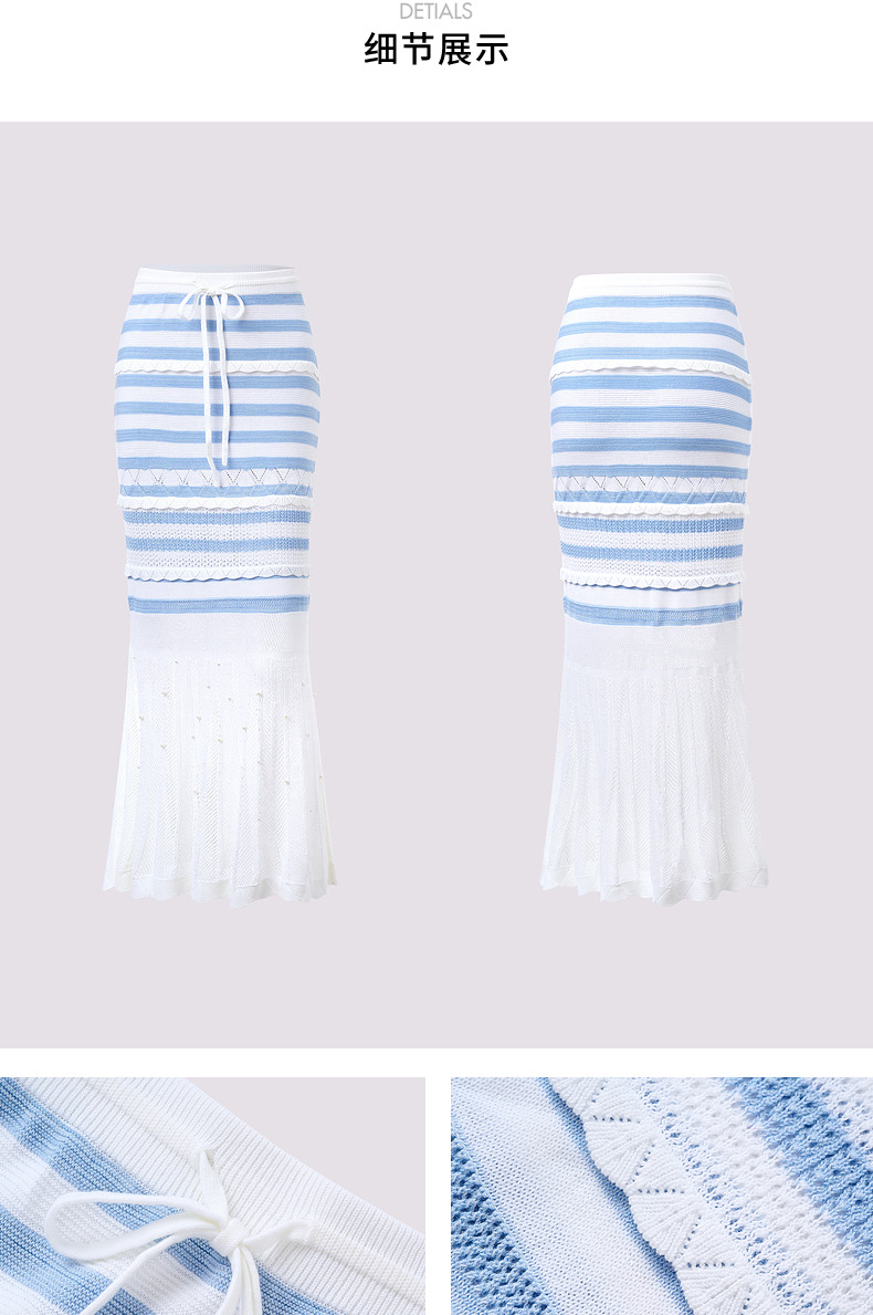 【商场同款】MAXRIENY肌理感修身鱼尾半身裙条纹包臀裙中长款(货号:MS85SK264)