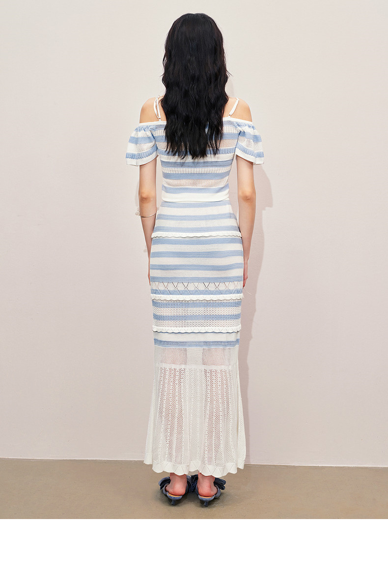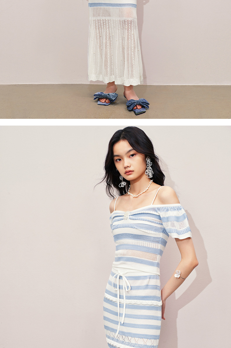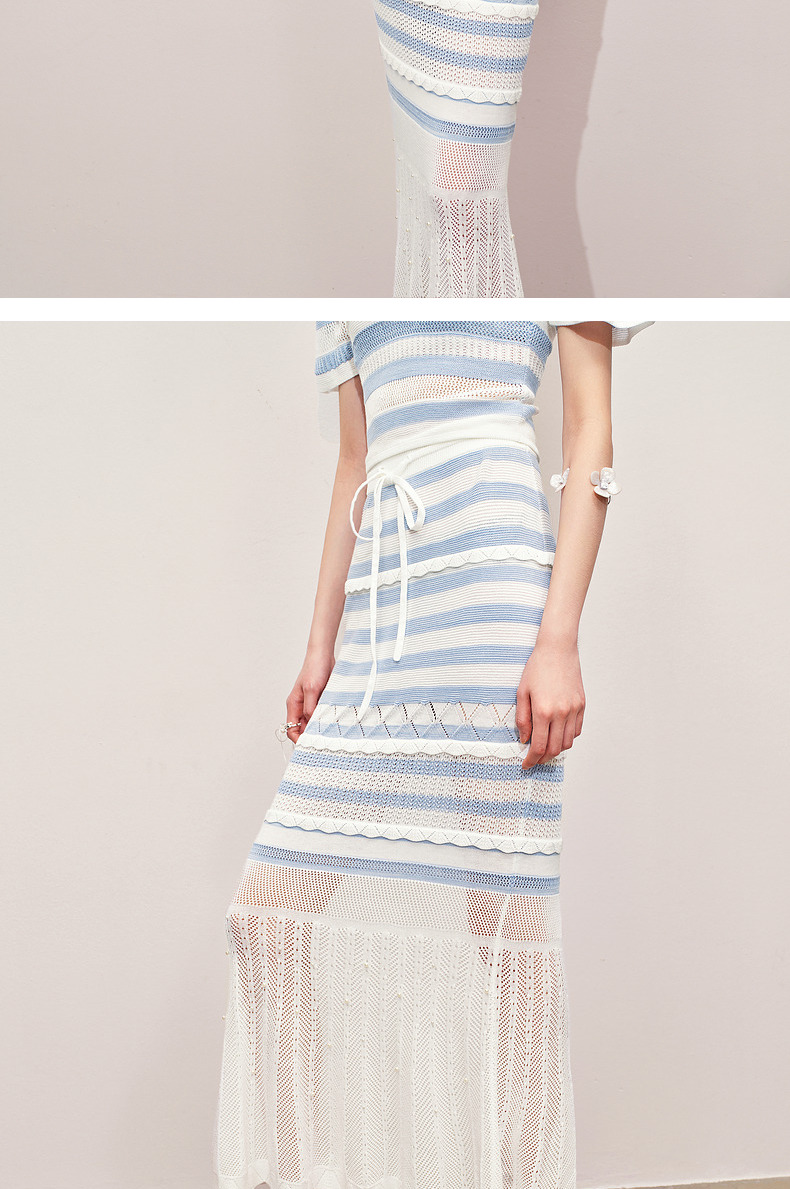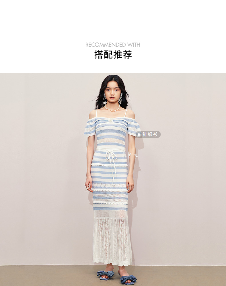 【商场同款】MAXRIENY肌理感修身鱼尾半身裙条纹包臀裙中长款(货号:MS85SK264)