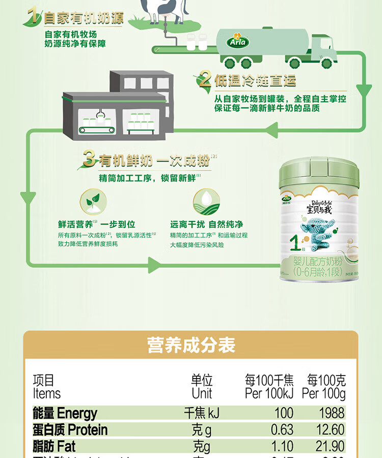Arla宝贝与我有机较大婴儿配方奶粉2段400克