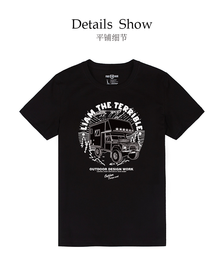 自由基地夏季新品户外露营越野改装创意短袖男女合体版型纯棉t恤 NMT-2223