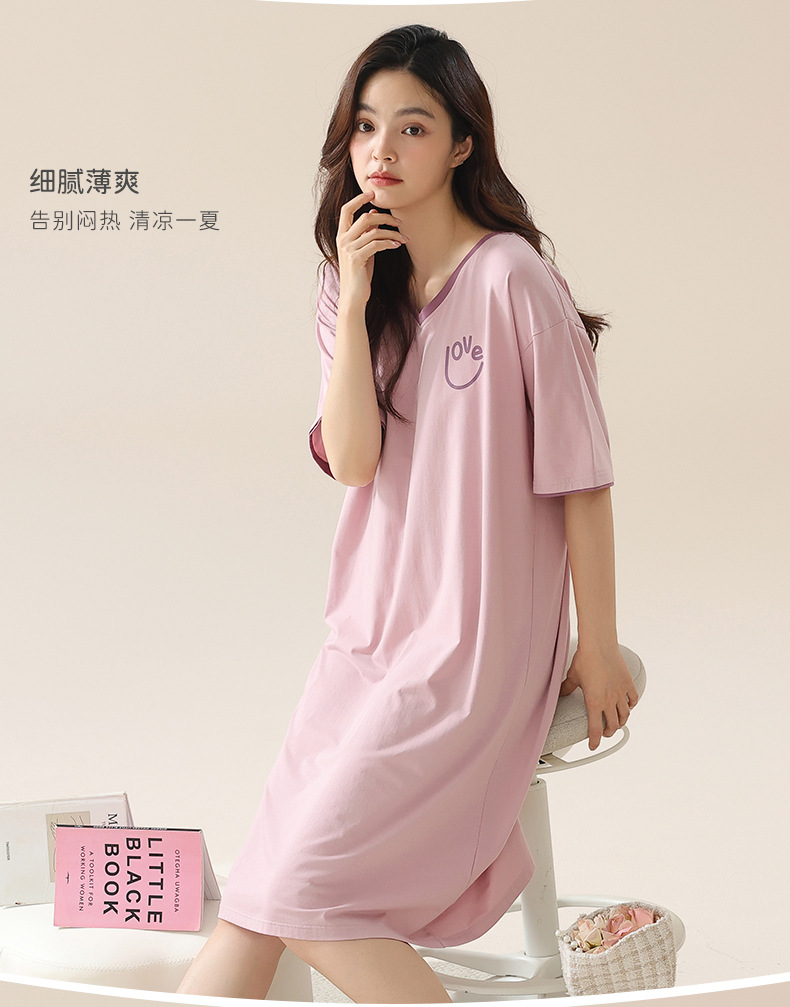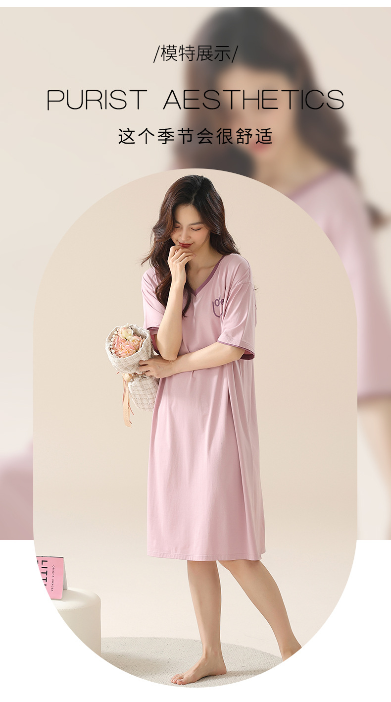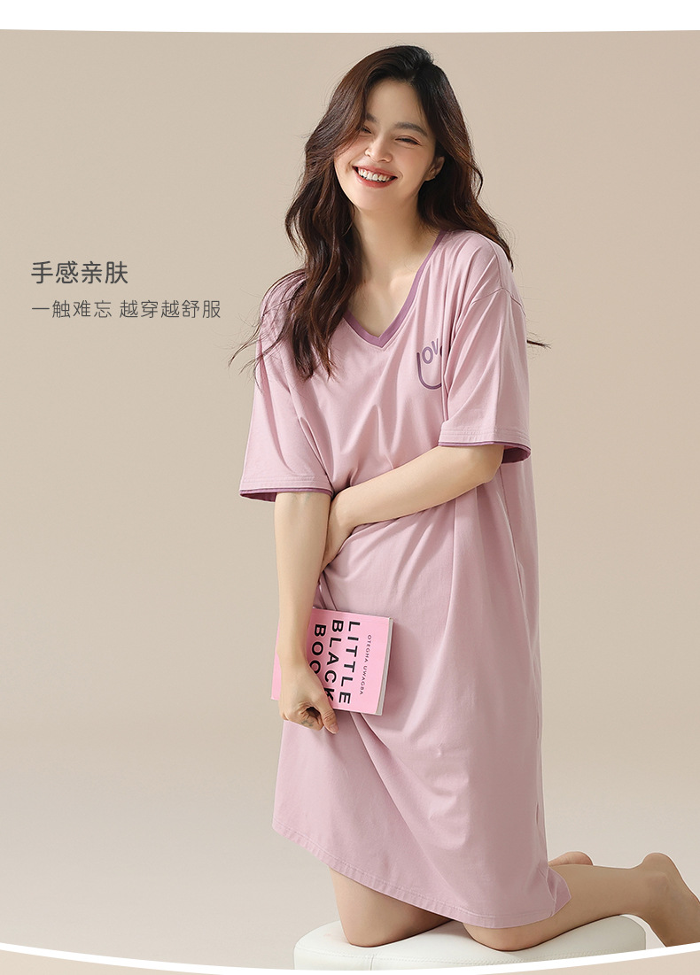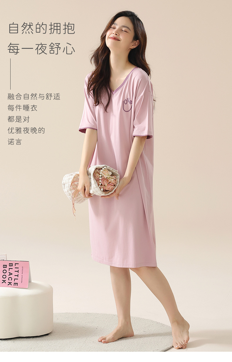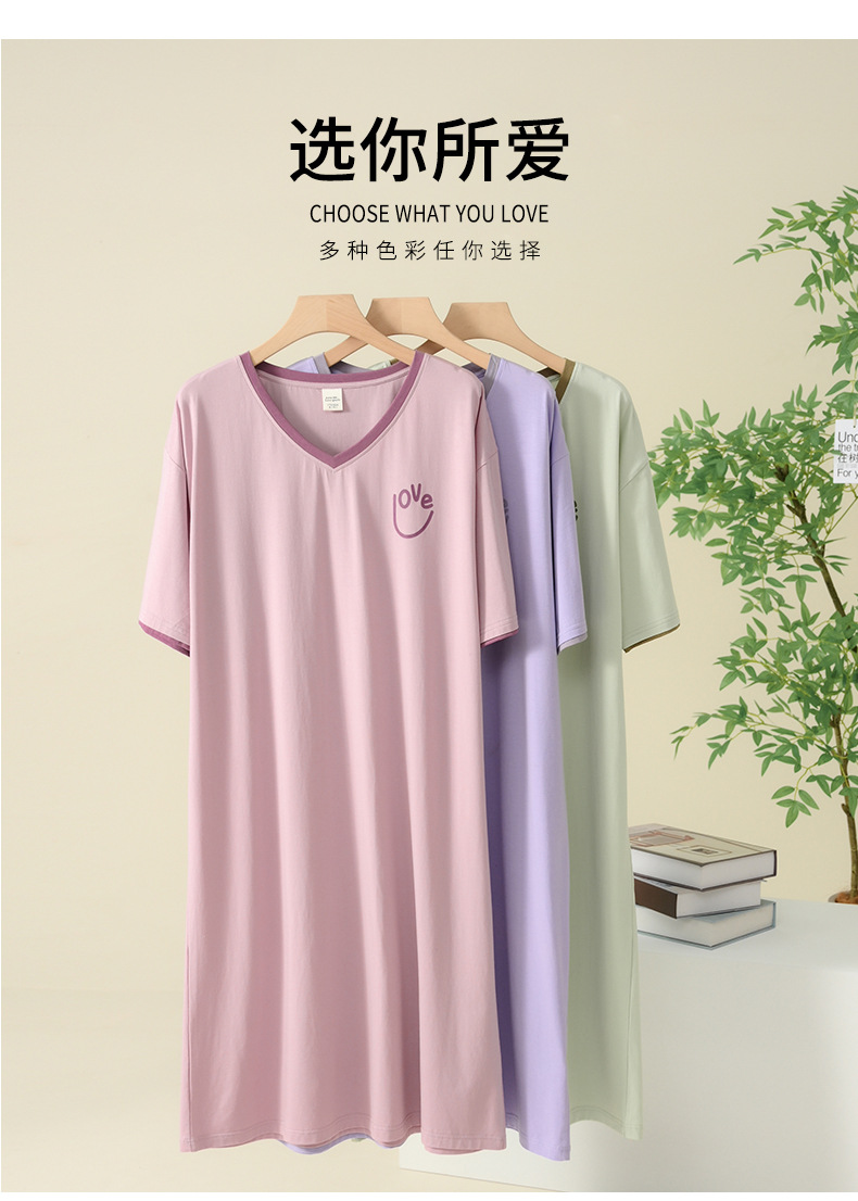 丁摩 睡裙女夏款莫代尔短袖V领可外穿家居服夏天薄款女士睡裙5ZF-22565