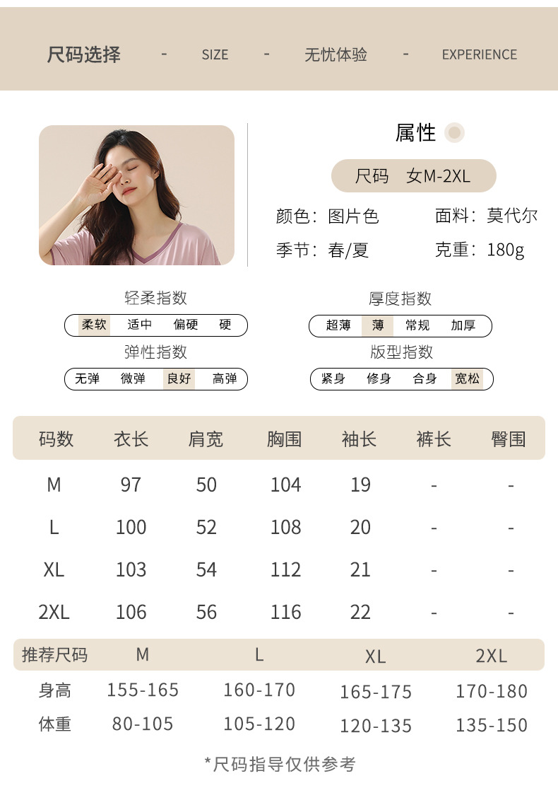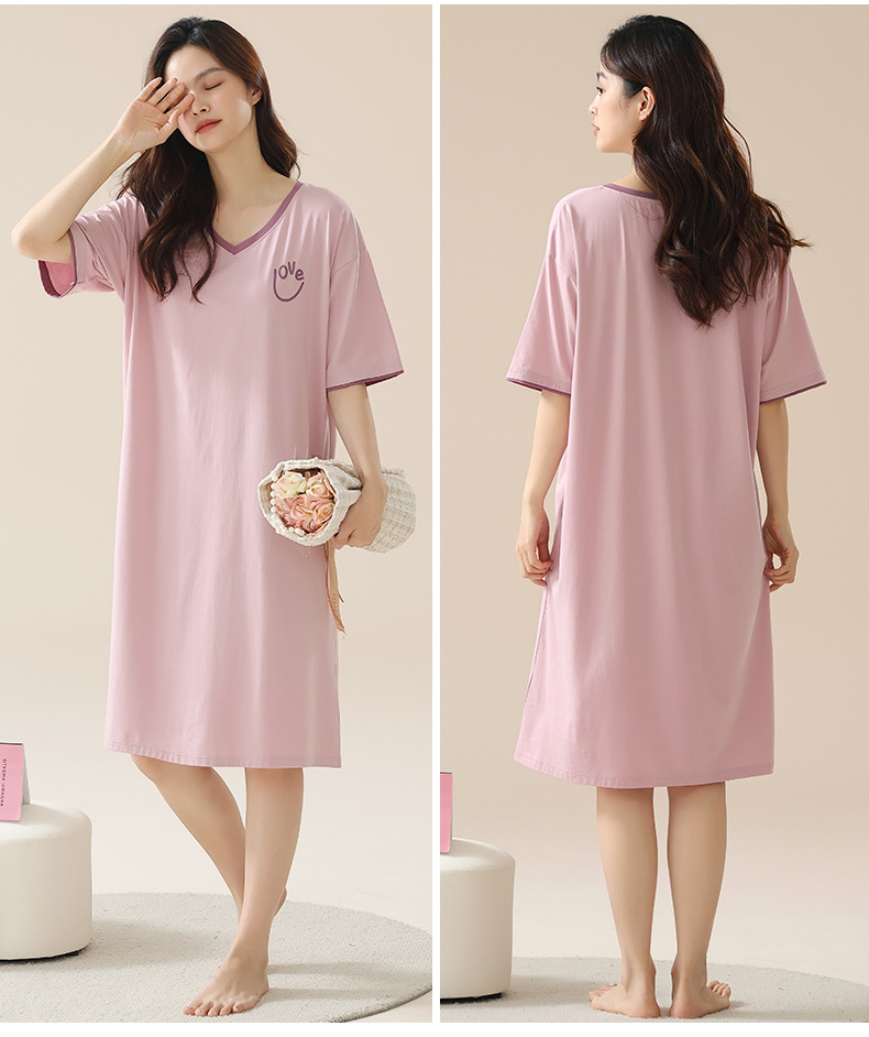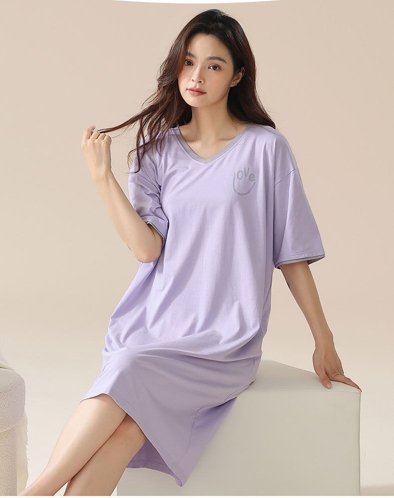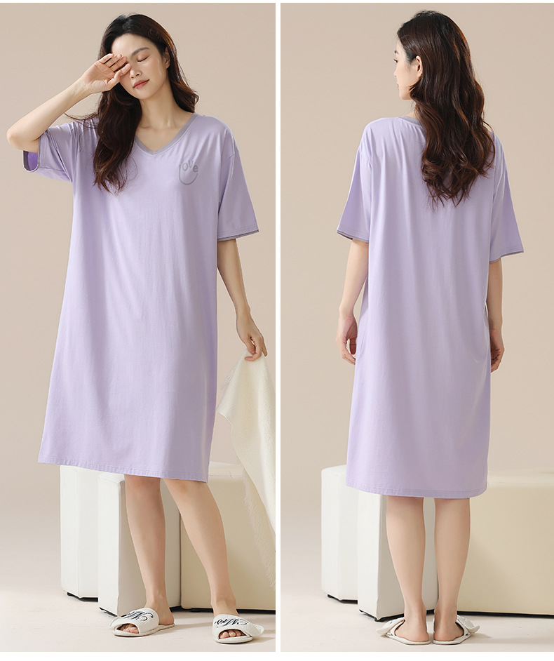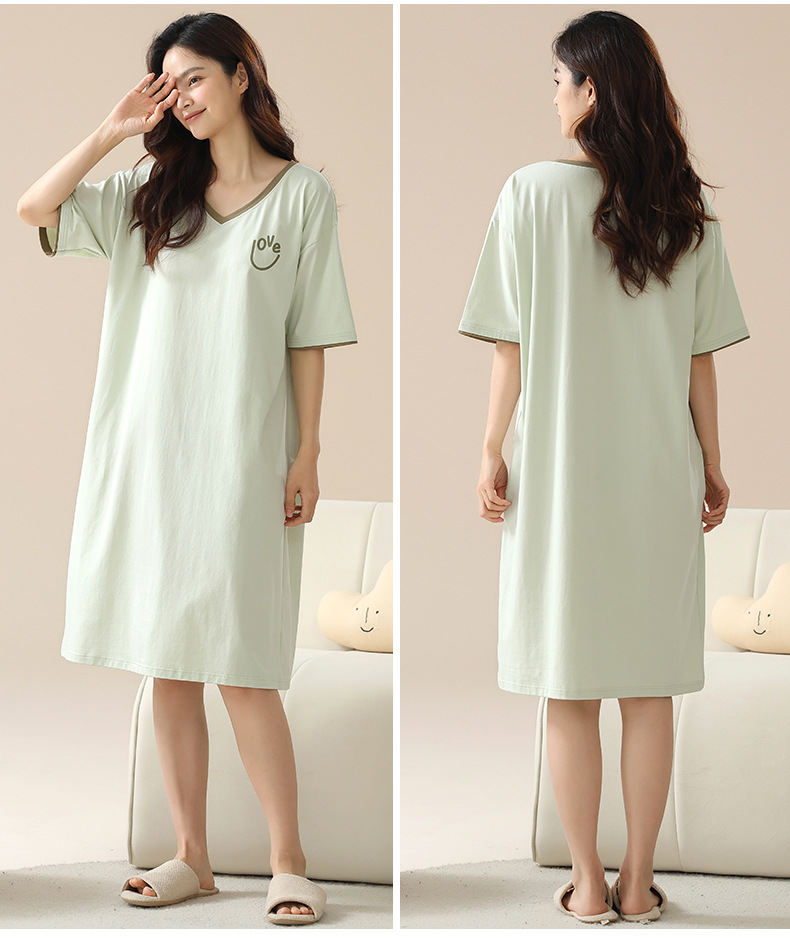 丁摩 睡裙女夏款莫代尔短袖V领可外穿家居服夏天薄款女士睡裙5ZF-22565