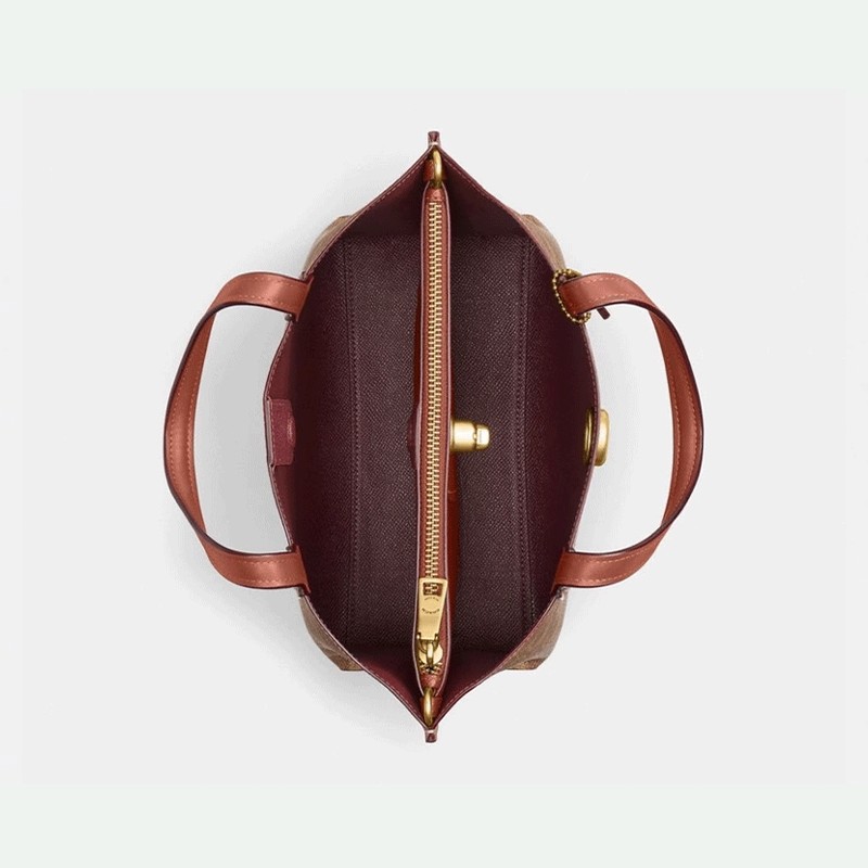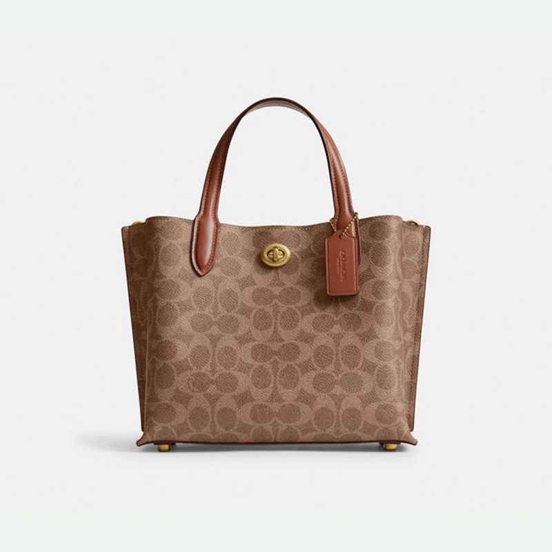 【品牌授权】【礼盒礼袋 】COACH蔻驰女士经典标志老花奥莱WILLOW 24号托特包