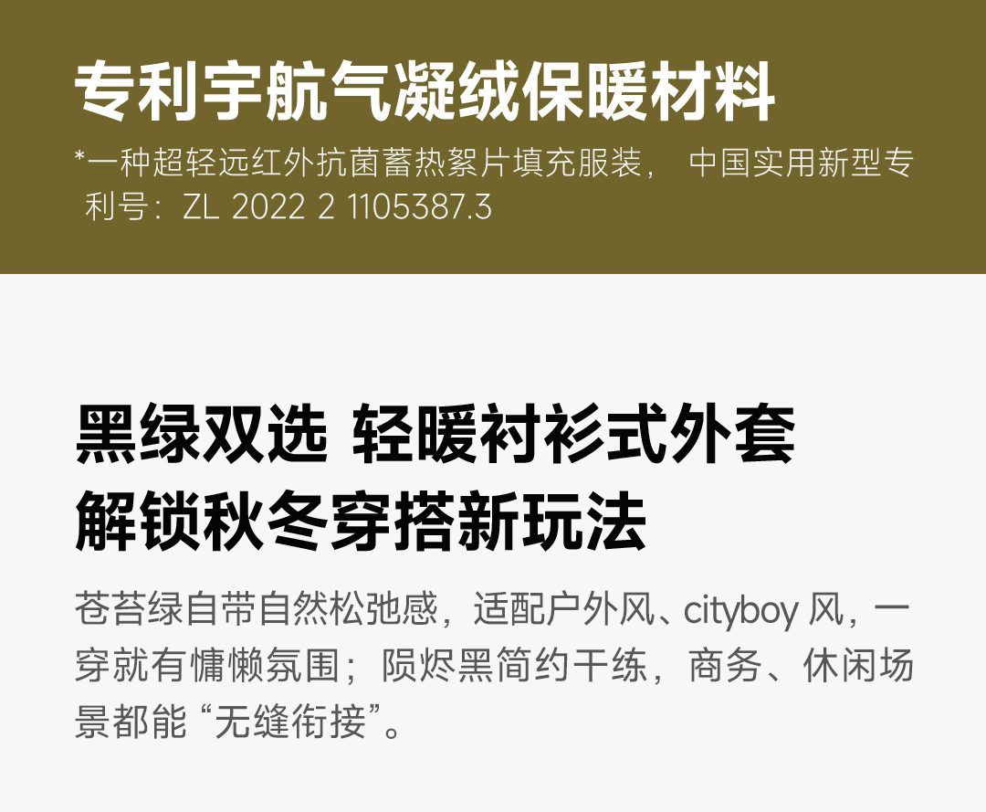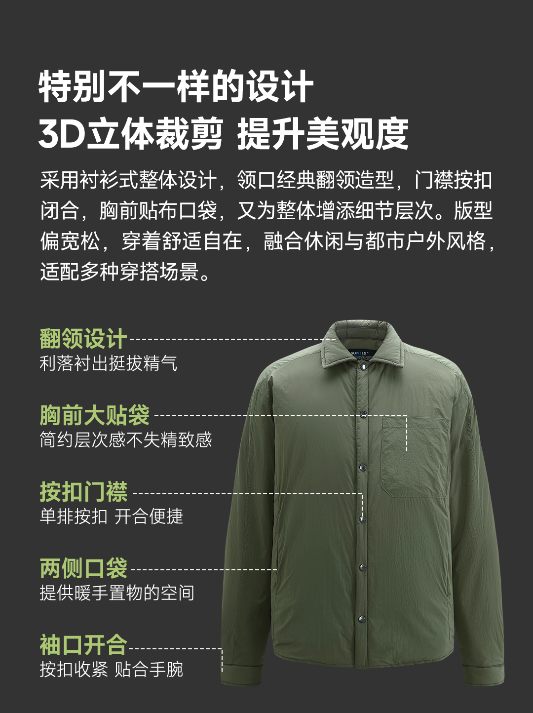 素湃SUPIELD气凝绒小翻领外套男东北冬季轻薄绒保暖棉外套抗寒服