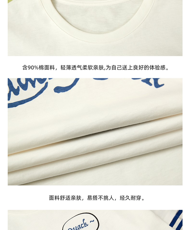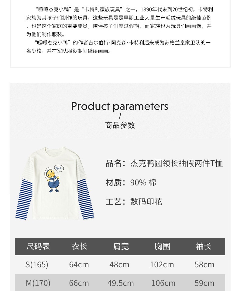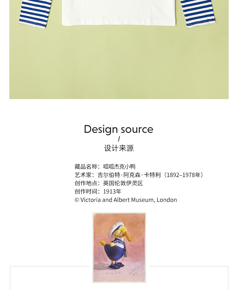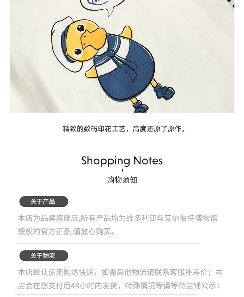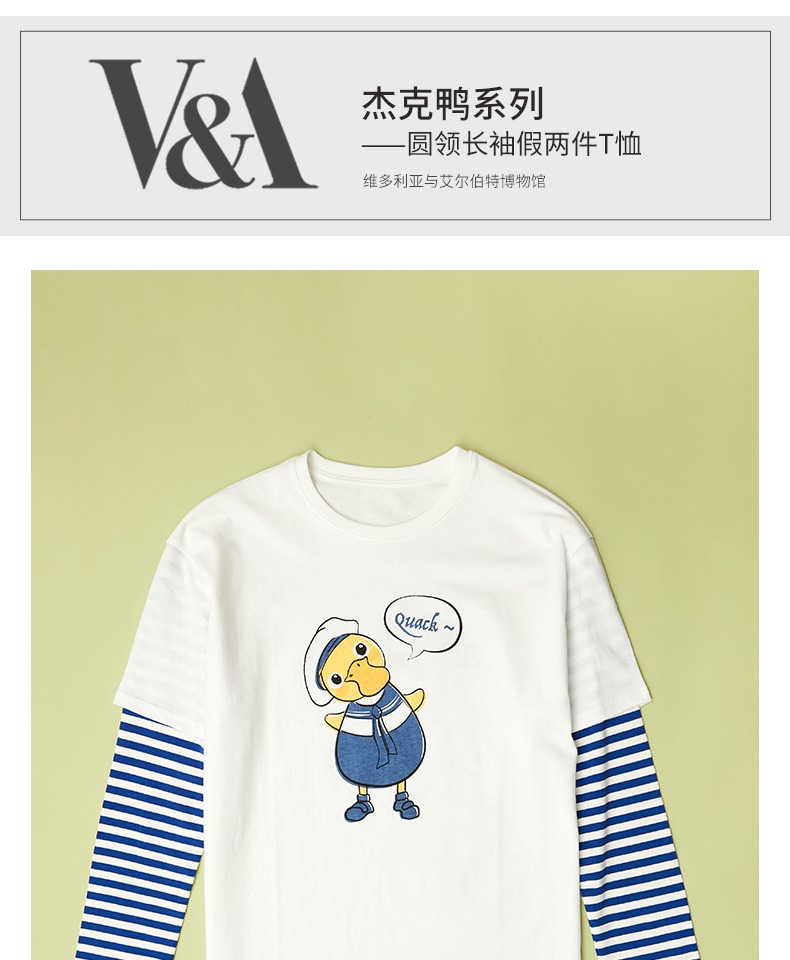 V&A博物馆杰克鸭系列印花夏季圆领ins长袖假两件文创T恤男女潮流