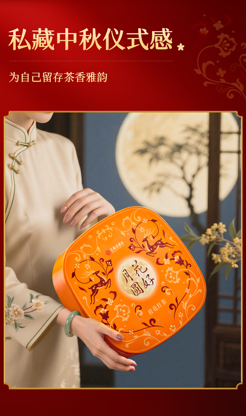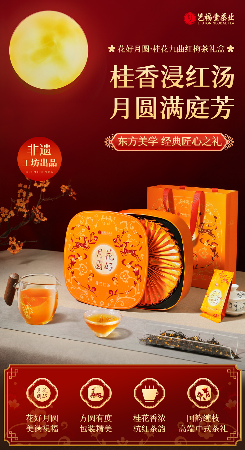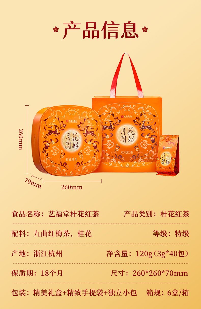 【立减50送三大茗茶礼盒】艺福堂花好月圆桂花红茶礼盒120g/盒特级