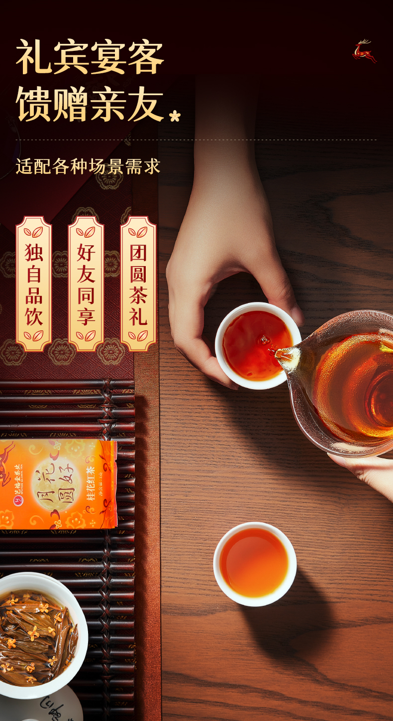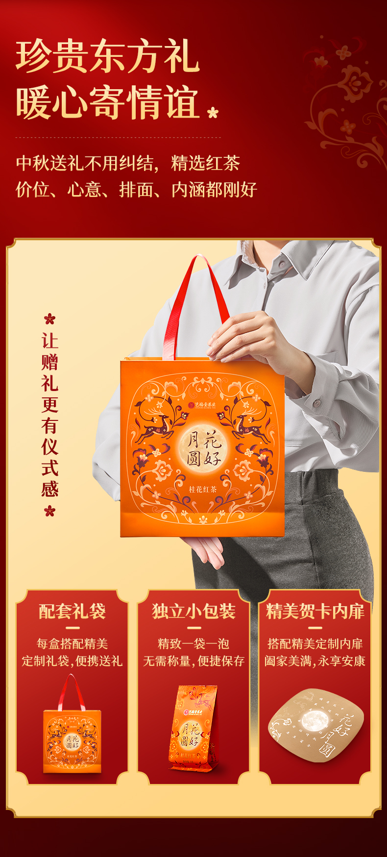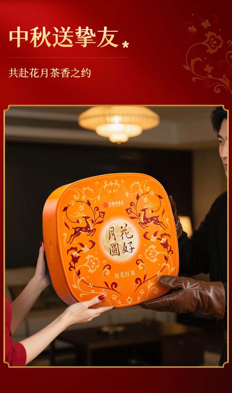 【立减50送三大茗茶礼盒】艺福堂花好月圆桂花红茶礼盒120g/盒特级
