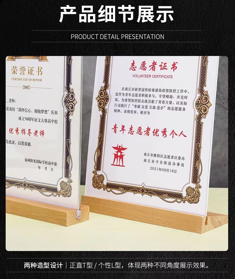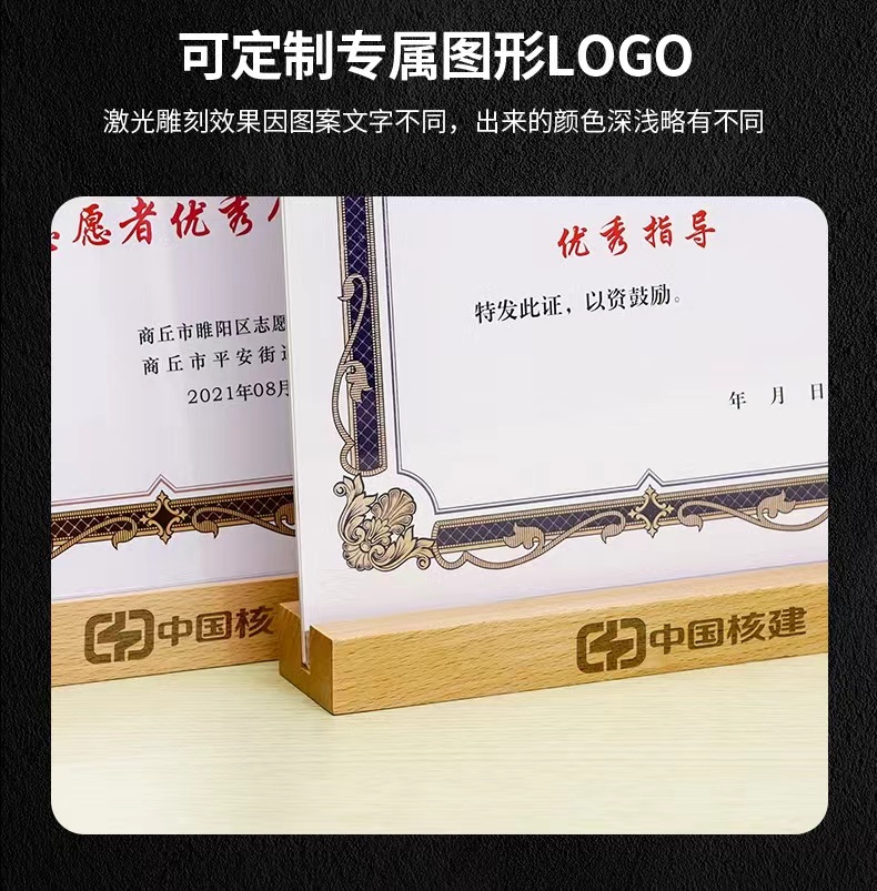 荣誉证书框奖状展示摆台木质桌面A4亚克力相框创意授权书裱框架
