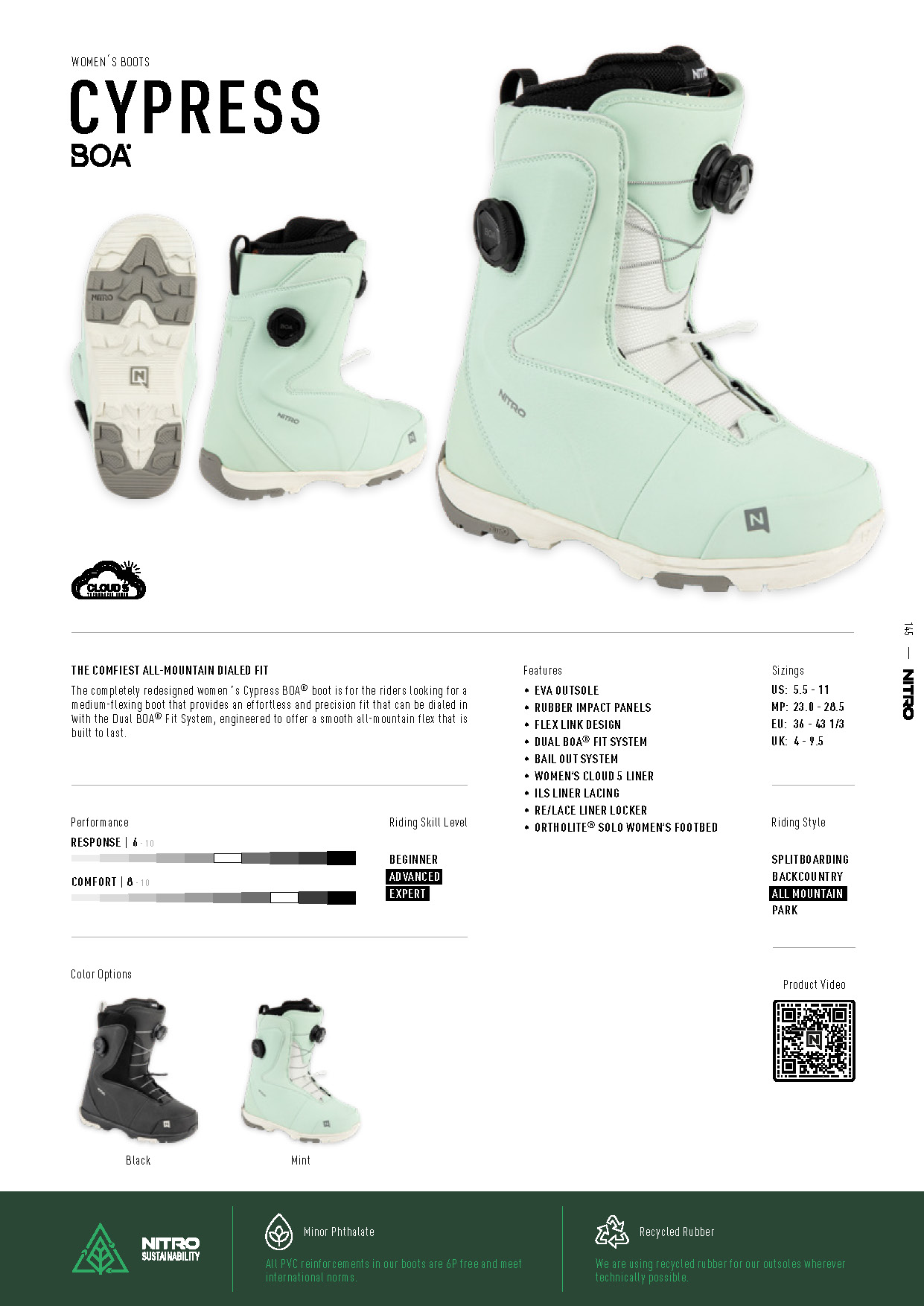 Nitro 23-24 【CYPRESS BOA】 女款雪鞋 Black Mint