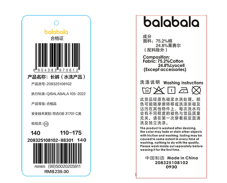巴拉巴拉balaOne童装男童长裤儿童裤子2025新款秋装牛仔裤弯刀裤