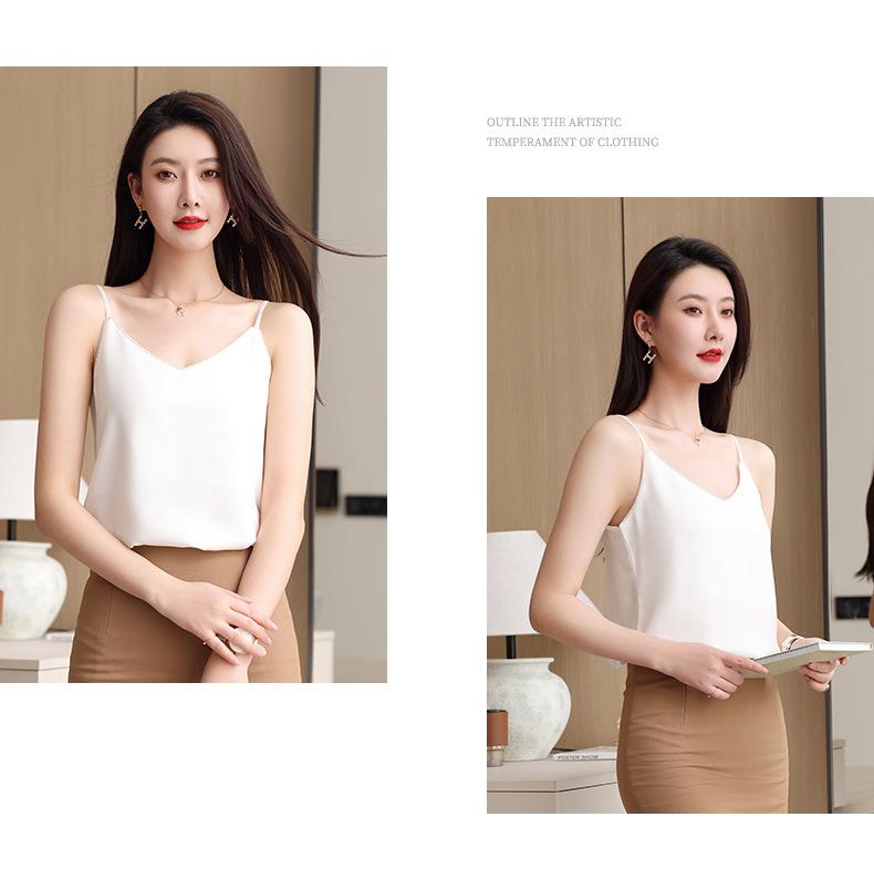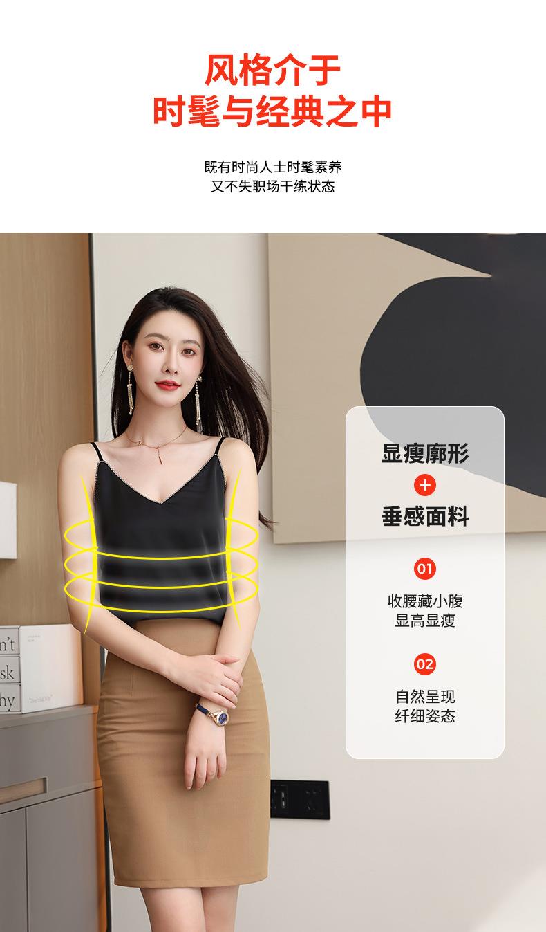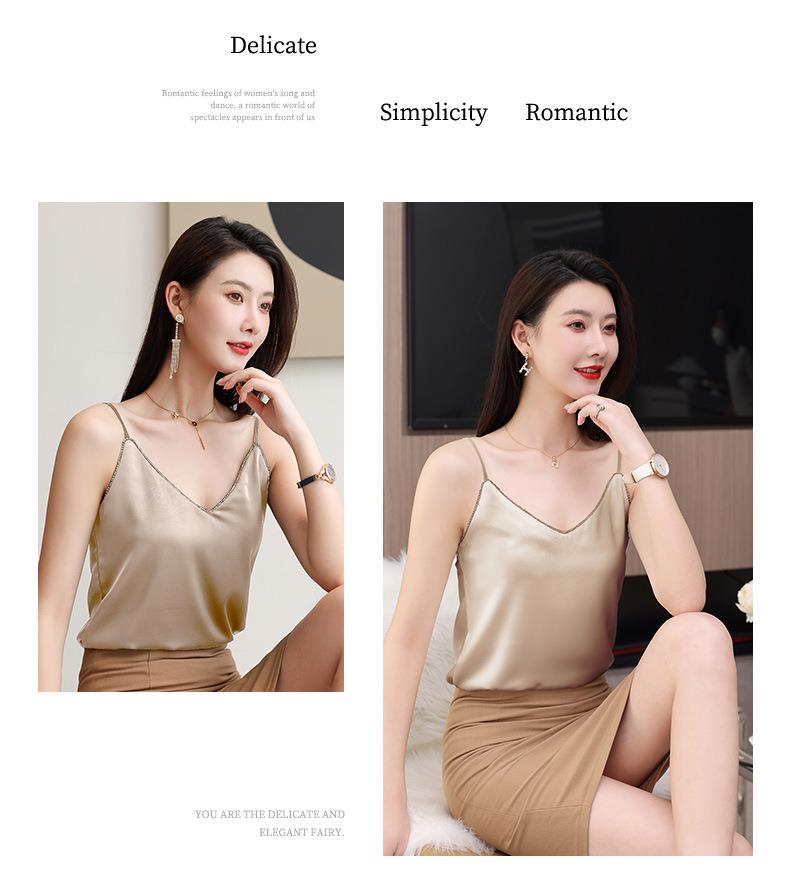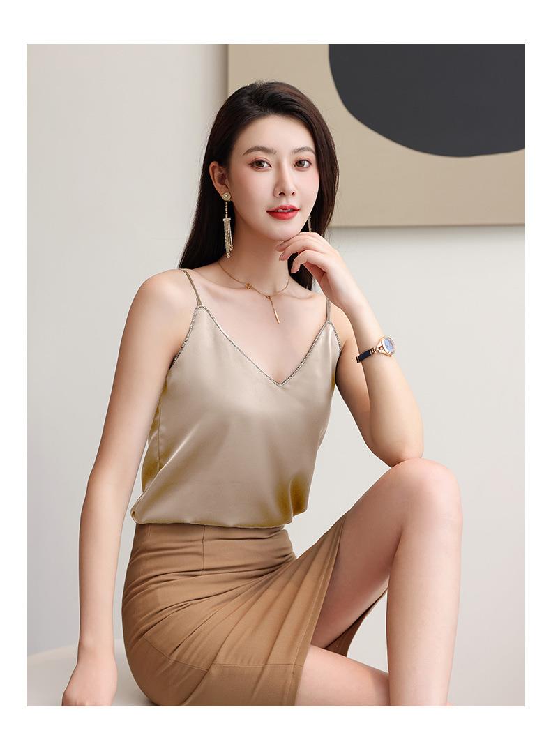 娜璐多 亮钻V字领防醋酸缎吊带背心女无袖打底衫西装内搭2023娜璐多新款