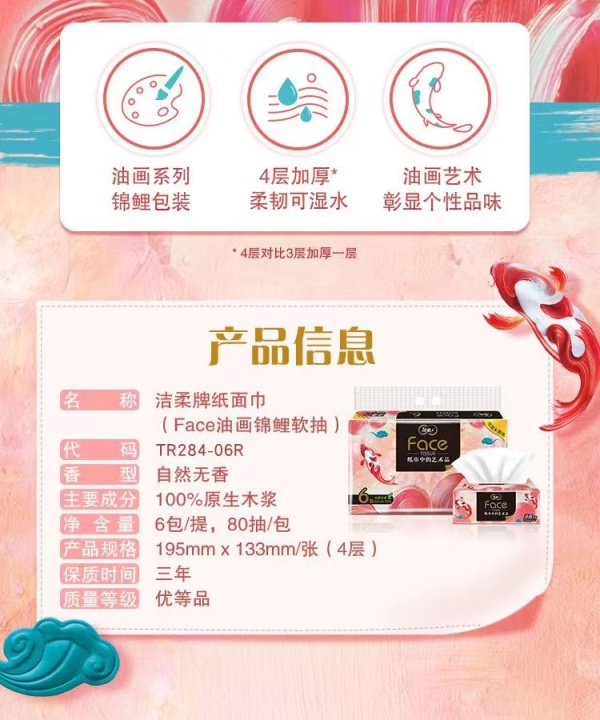 洁柔Face锦鲤油画软抽80抽4层6包(油画)