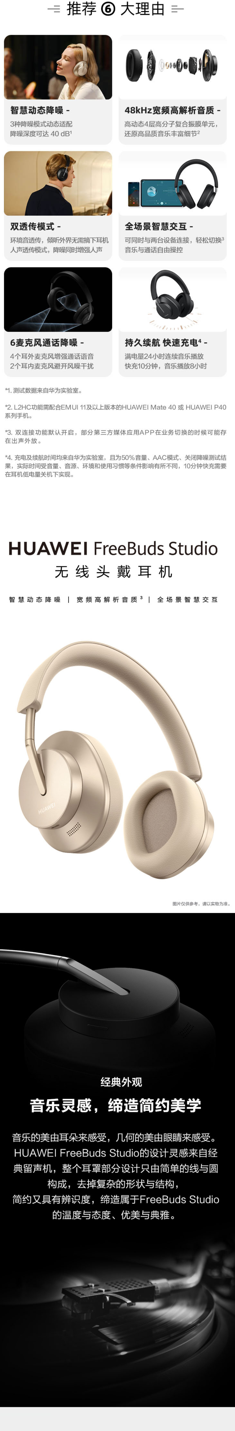 华为HUAWEI FreeBuds Studio无线头戴耳机 智慧动态降噪 宽频高解析度无线降噪蓝牙耳机 晨曦金 商用M0001
