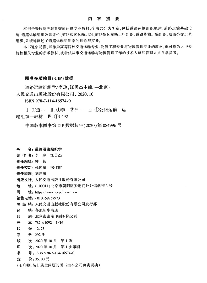 ISBN:9787114165740
