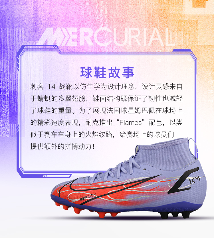 NIKE/耐克 青少年中端高帮姆巴佩刺客14AG短钉足球鞋DB2675506