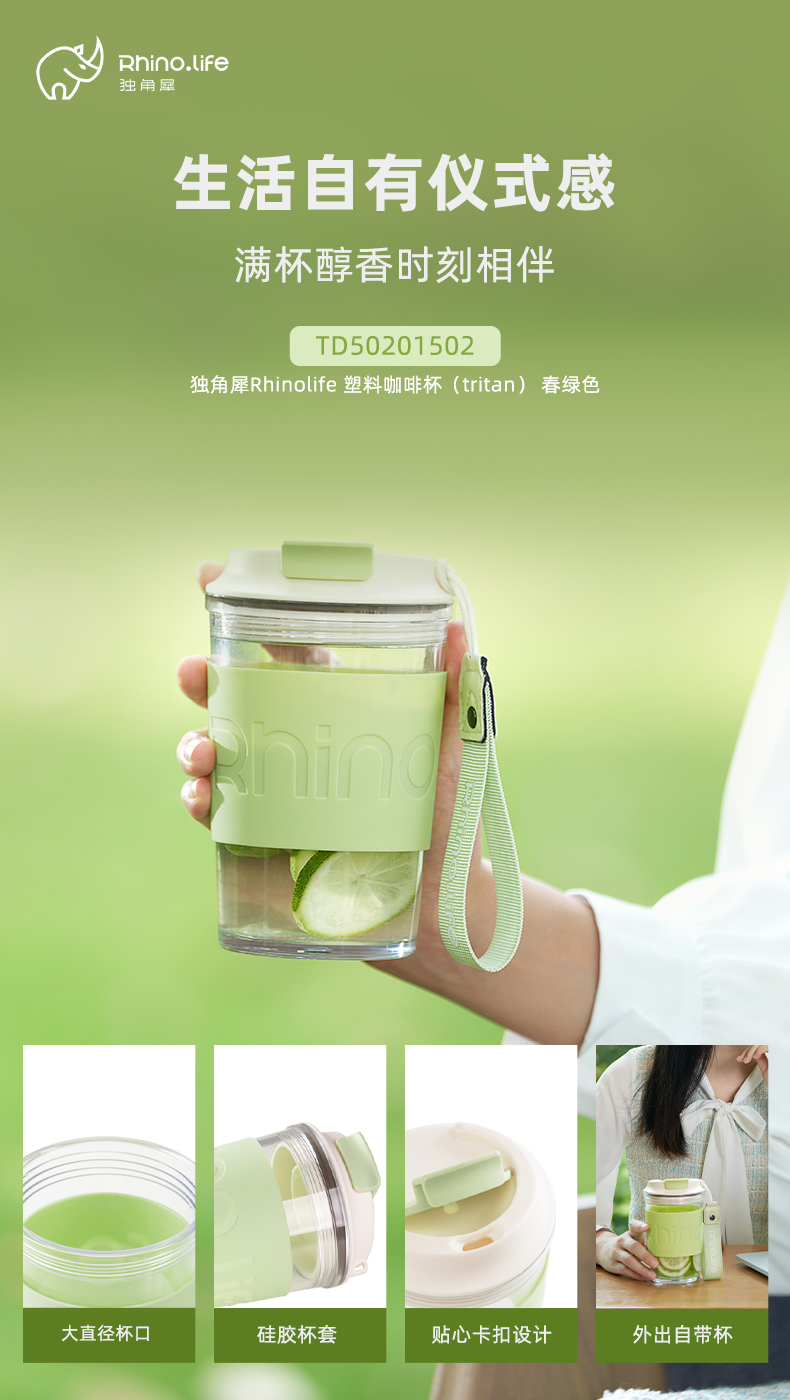 TD50201502-独角犀Rhinolife 塑料咖啡杯(tritan) 春绿色