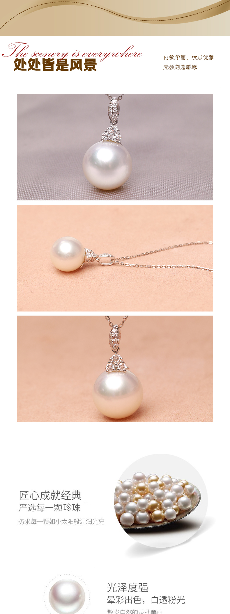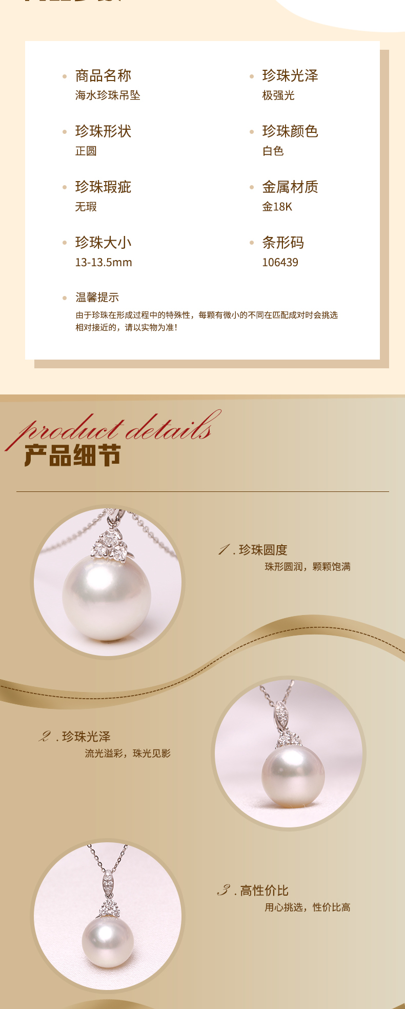 美裕 金18K海水珍珠吊坠 南洋珠吊坠13-13.5mm白 106439