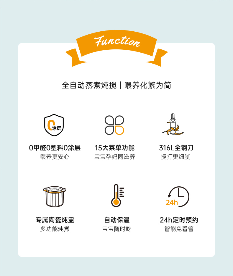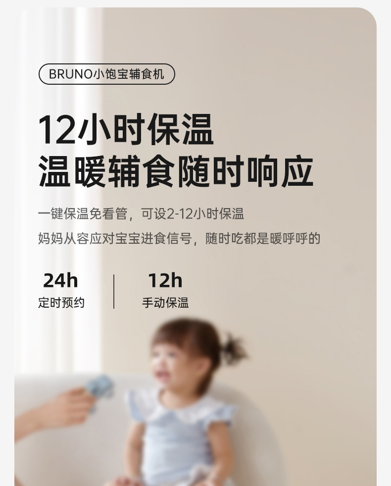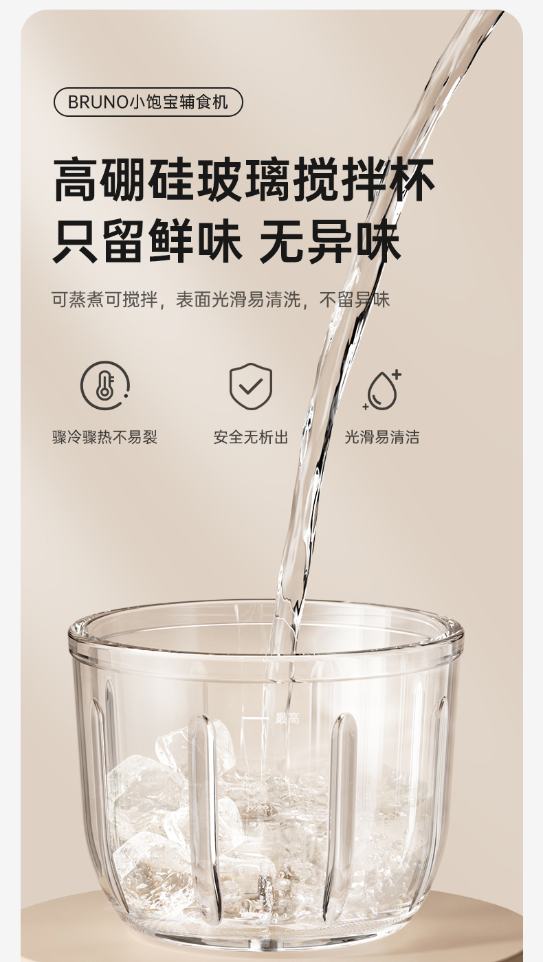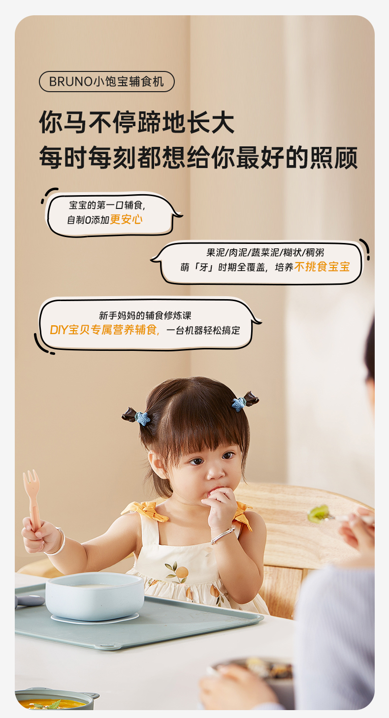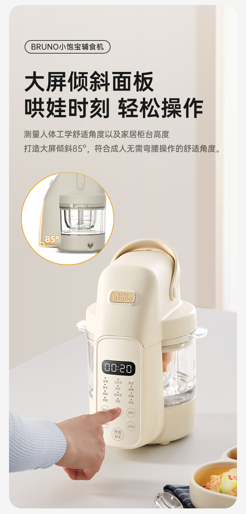 【宝宝辅食机】BRUNO小饱宝辅食机BZK-FSJ6LH01 全自动蒸煮炖搅一体 316L全钢刀 0甲醛0塑料0涂层 15大菜单 自动保温 24h定时预约