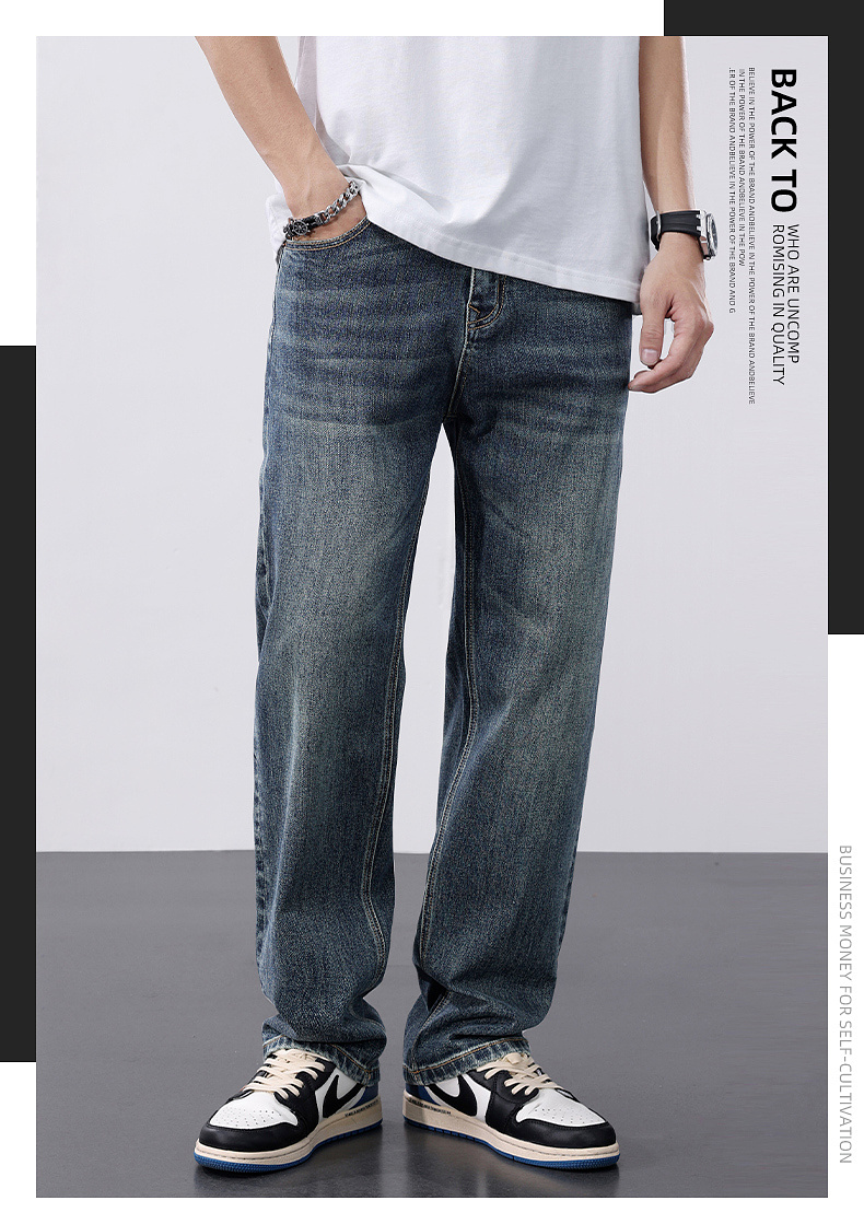 圣得西长裤男款2025年新款休闲阔腿宽松直筒青年美式街头牛仔裤男2552915163
