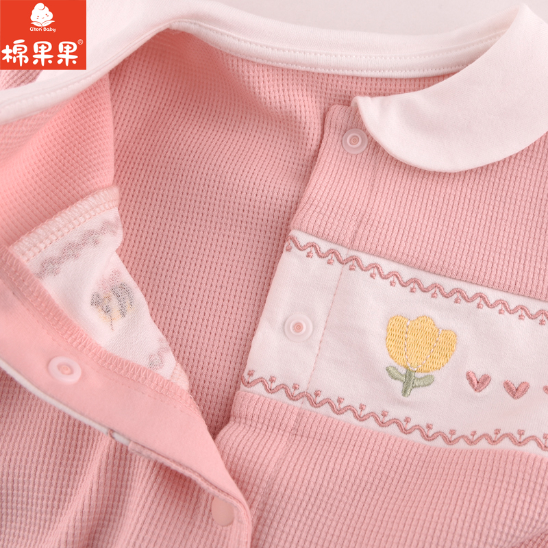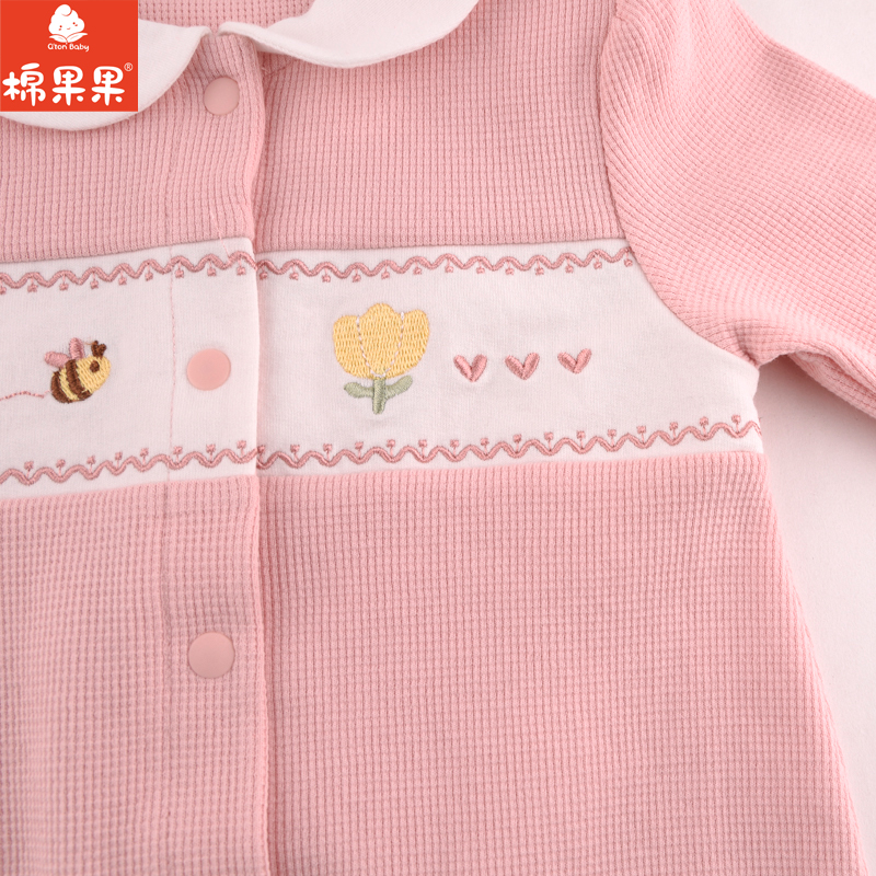 棉果果专柜同款春季新品女童华夫格质感纯棉对开连体衣M122722224002