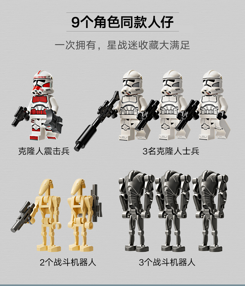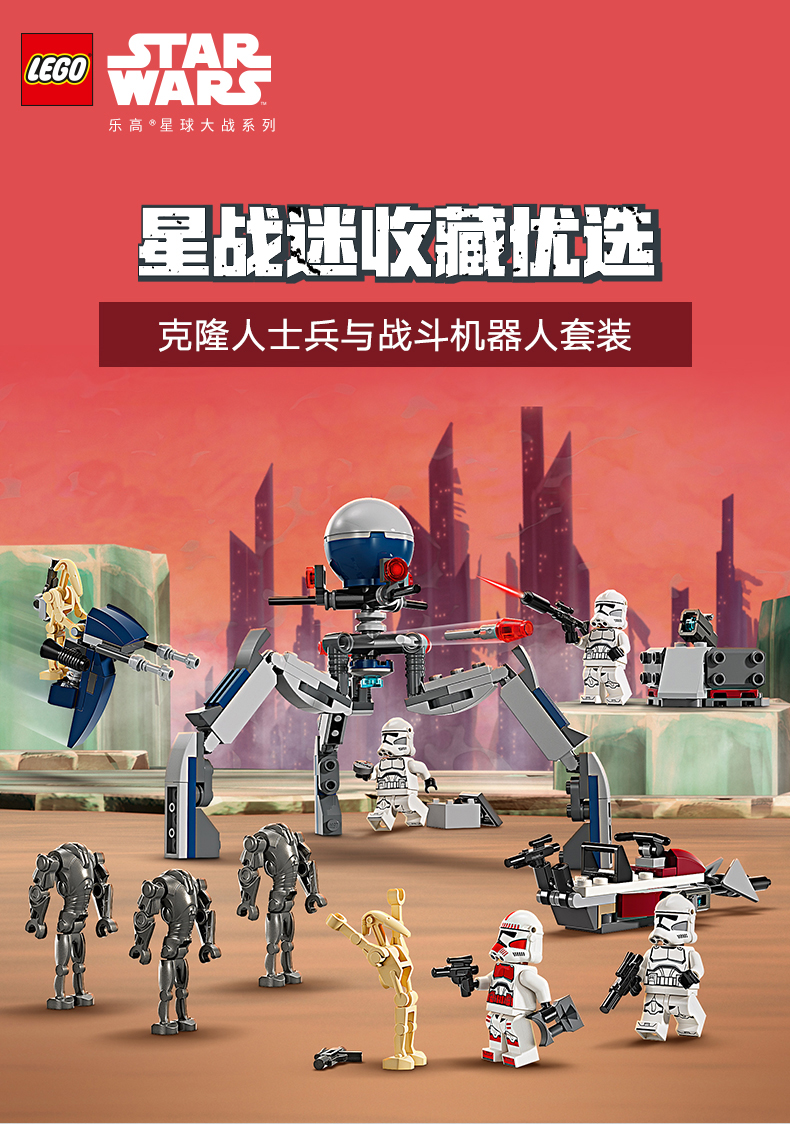 乐高 LEGO克隆人士兵与战斗机器人战斗套装LEGC75372