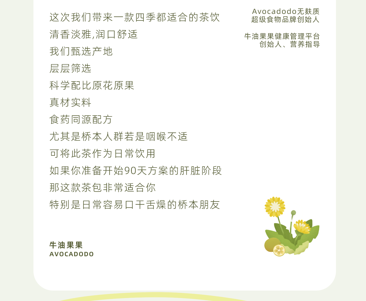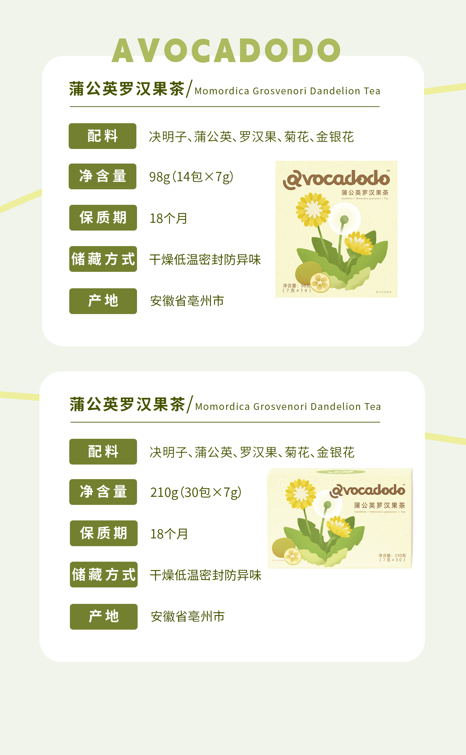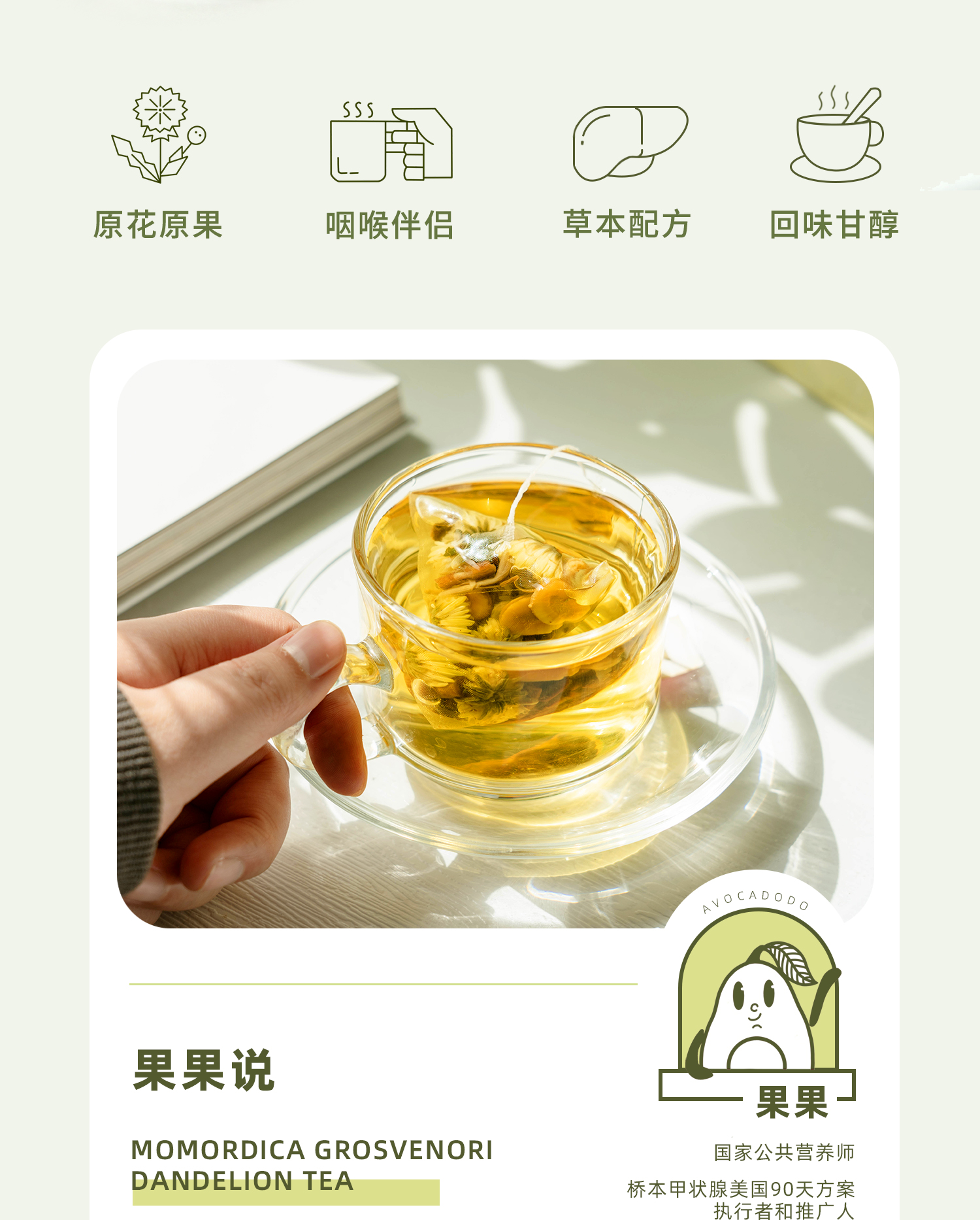 Avocadodo蒲公英罗汉果菊花金银茶润护甘甜祛嗓喉火牛油果果桥本