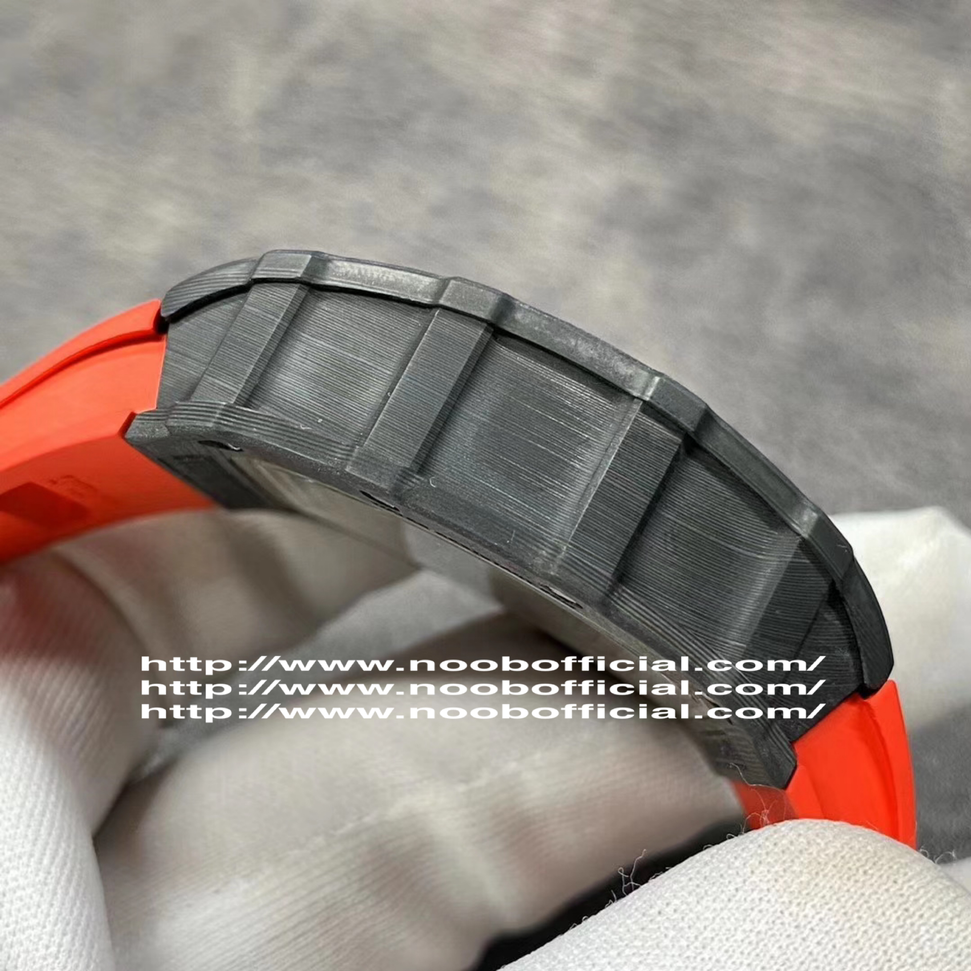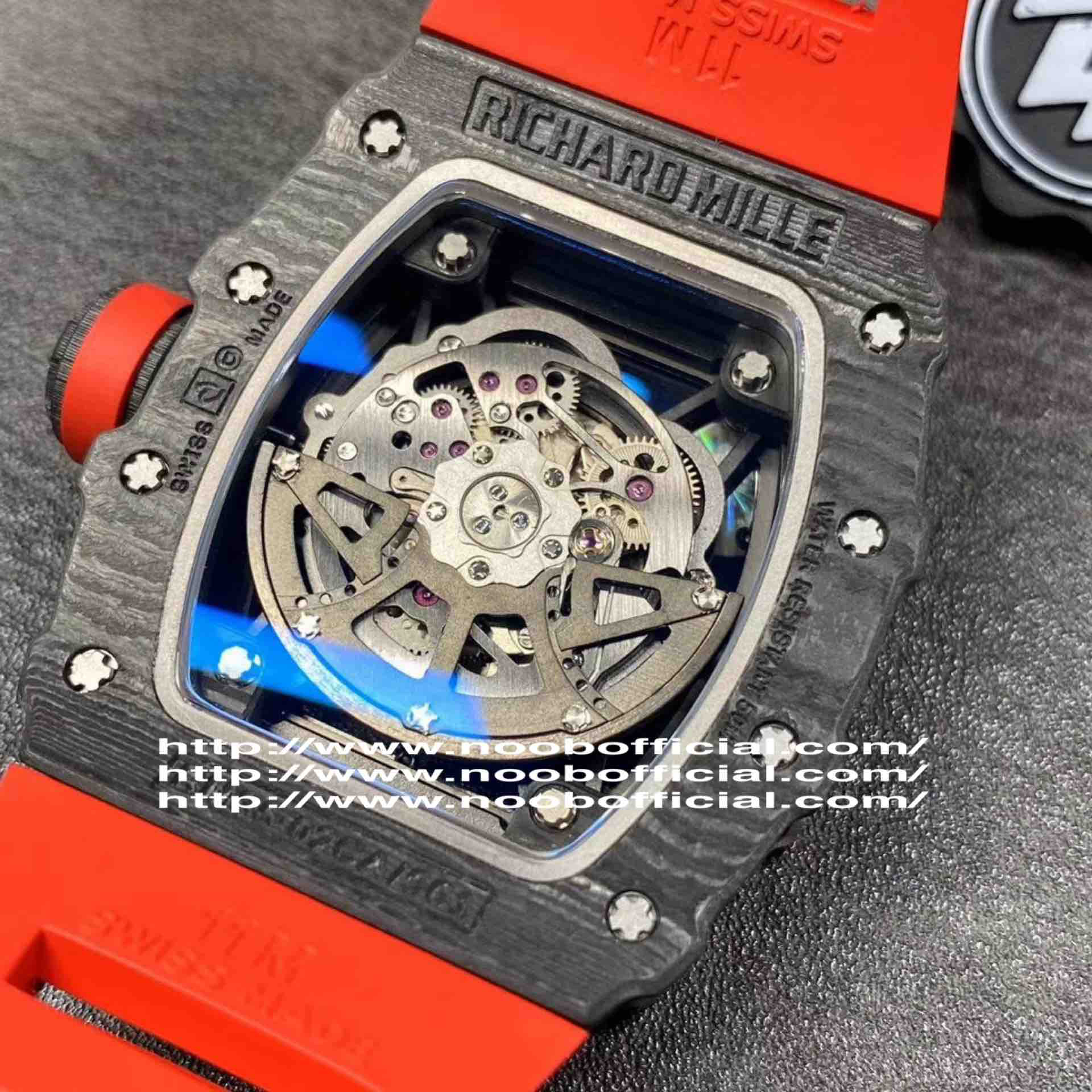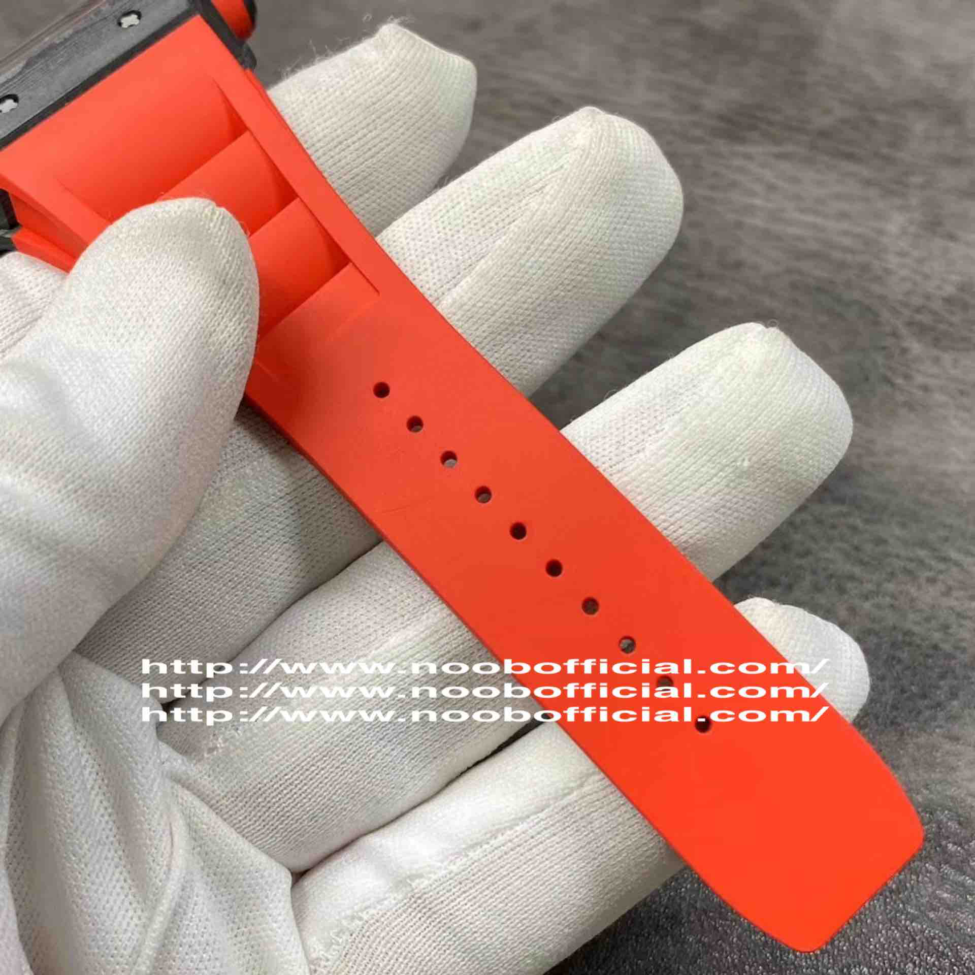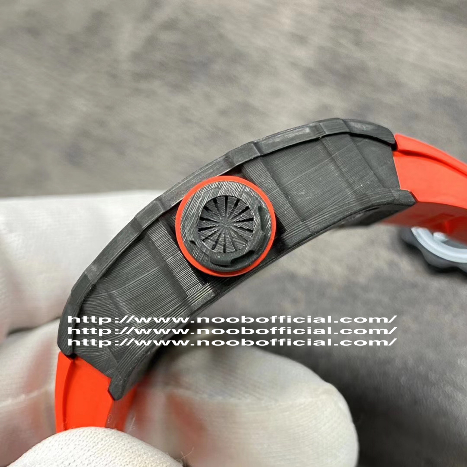 ZF理查德·米勒RM035,研发时间长达4年,把头、表壳、底盖均为碳纤维打造,男士腕表,橡胶表带,自动机械机芯,透底。
