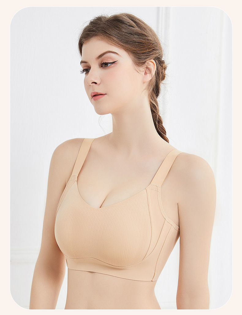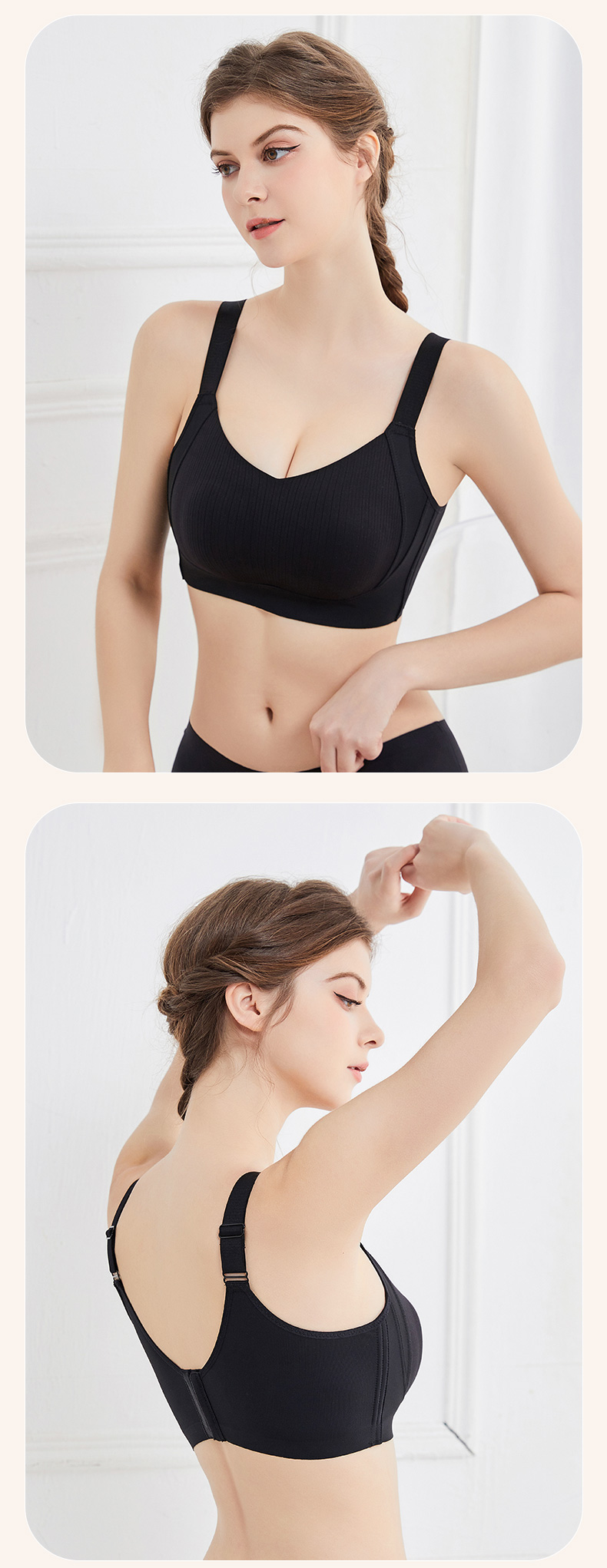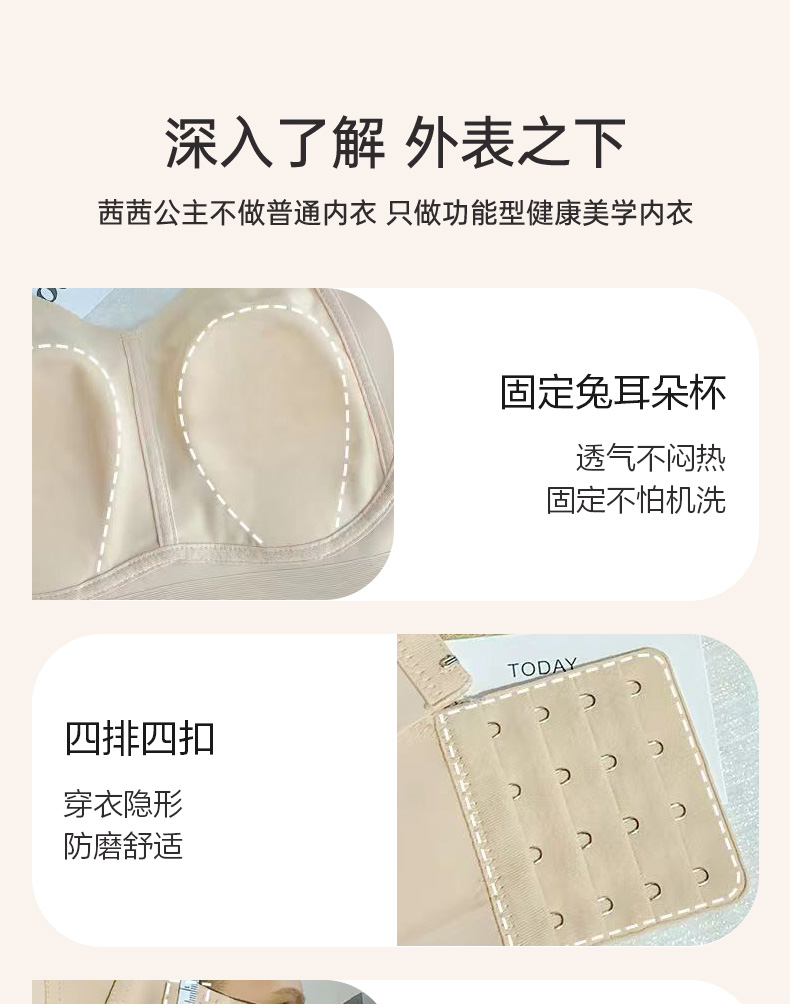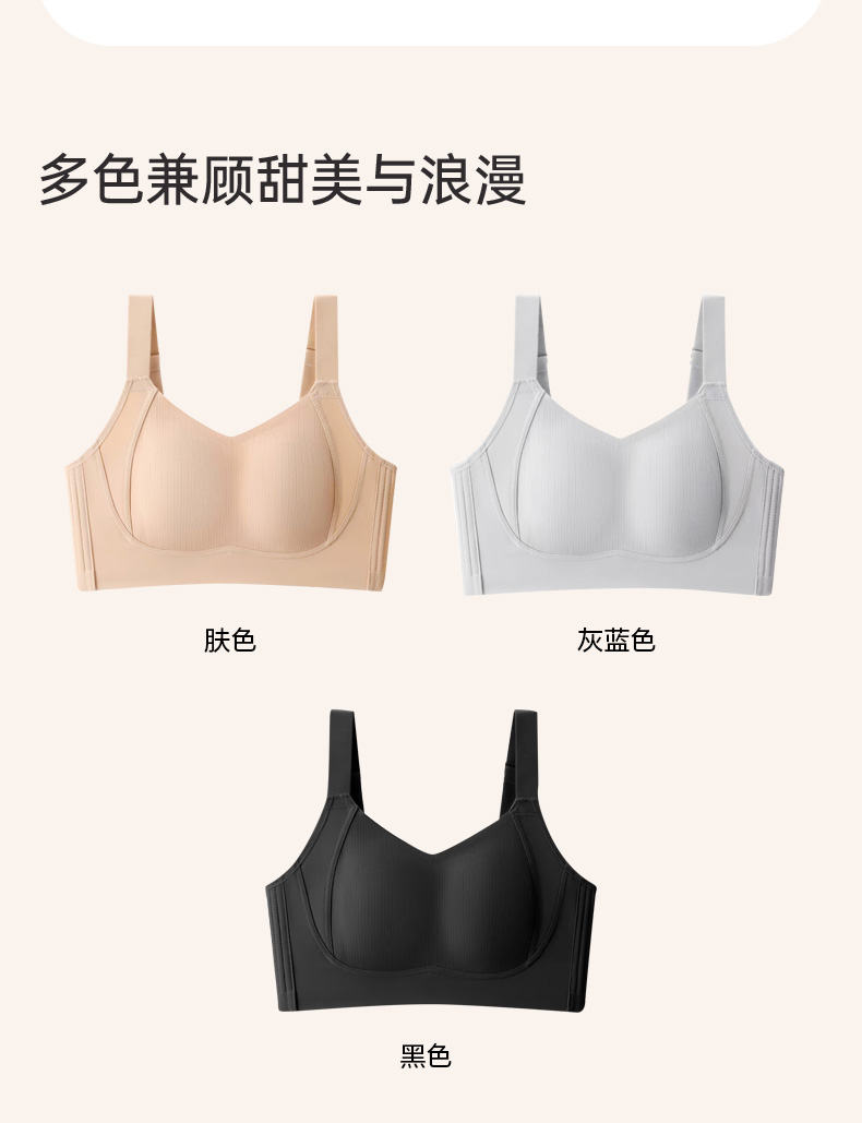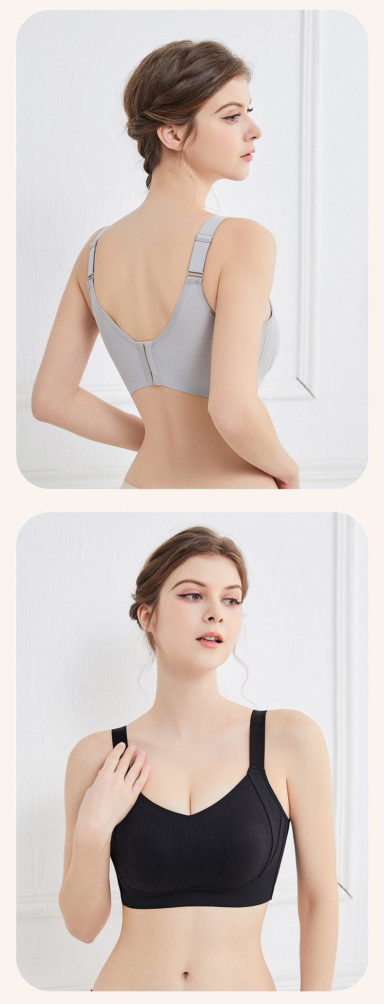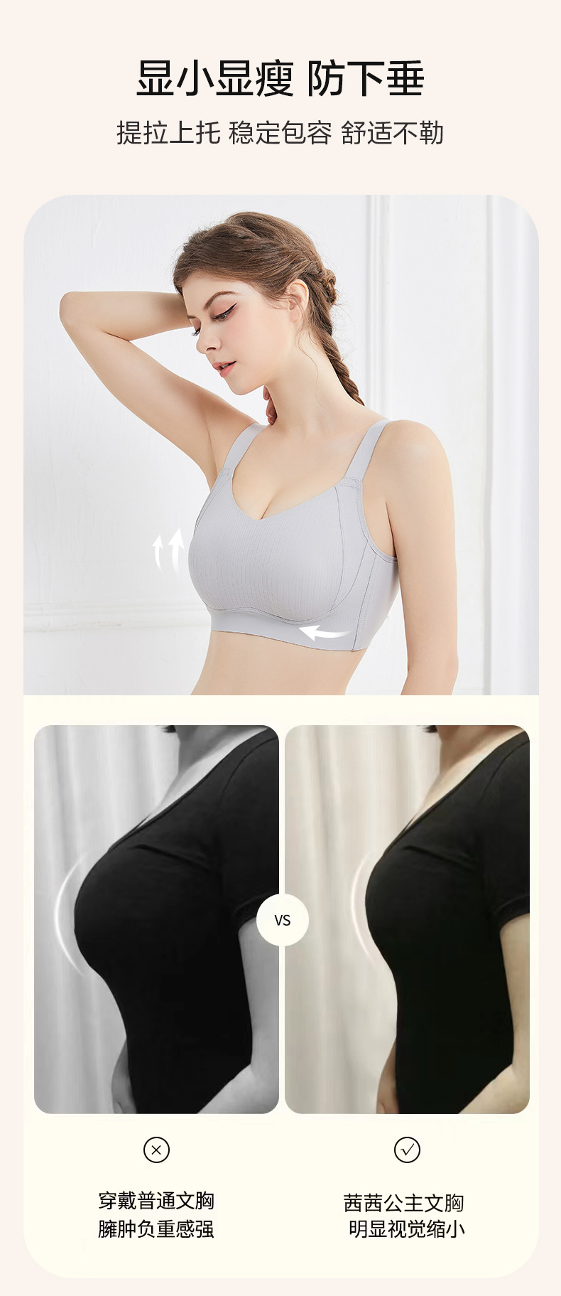 条纹兔耳朵养护文胸 超薄大胸显小 全罩杯强包容无钢圈 塑身咖啡因面料 高弹不变形 防震锁住脂肪无痕平整