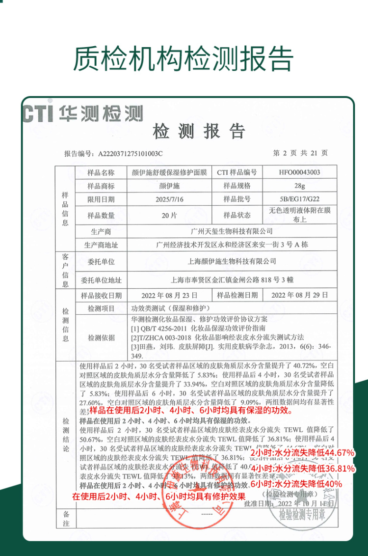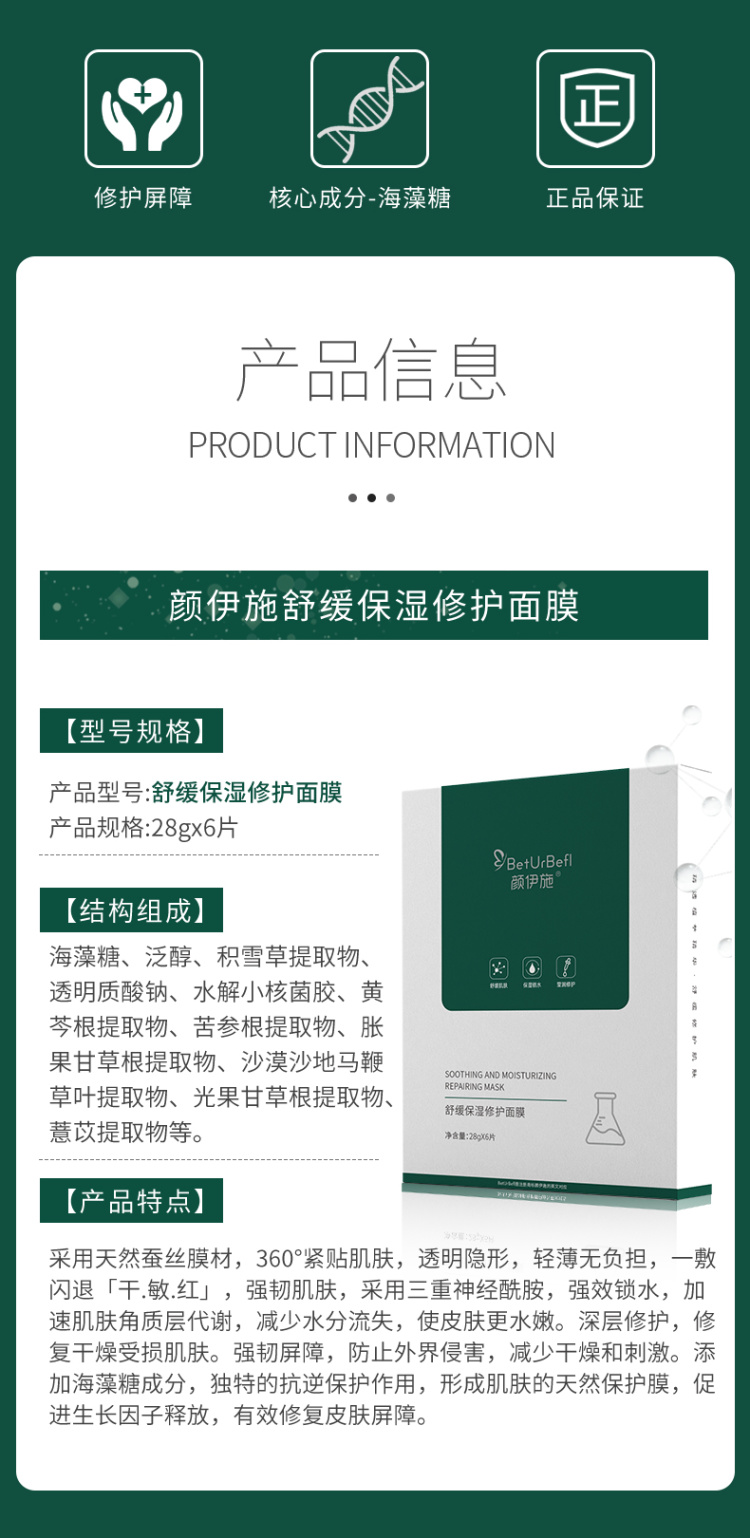 颜伊施舒缓保湿修护面膜 6片装