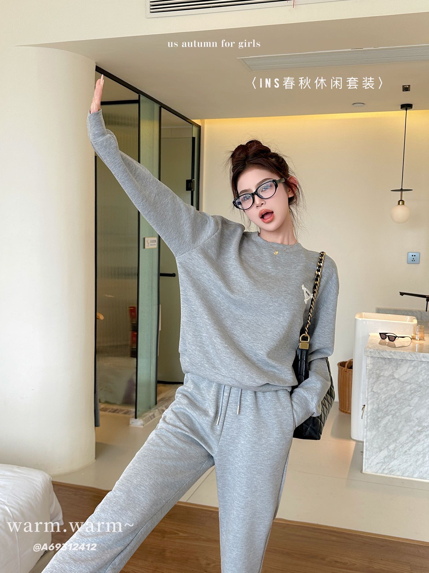 【YW】无忧购韩系ins休闲裸感百搭圆领卫衣运动套装C3629(截单后7天发货)
