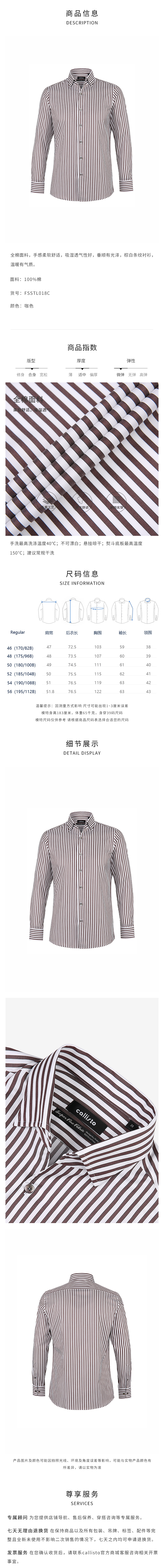 callisto棕白条纹全棉长袖衬衫 FSSTL018C BR