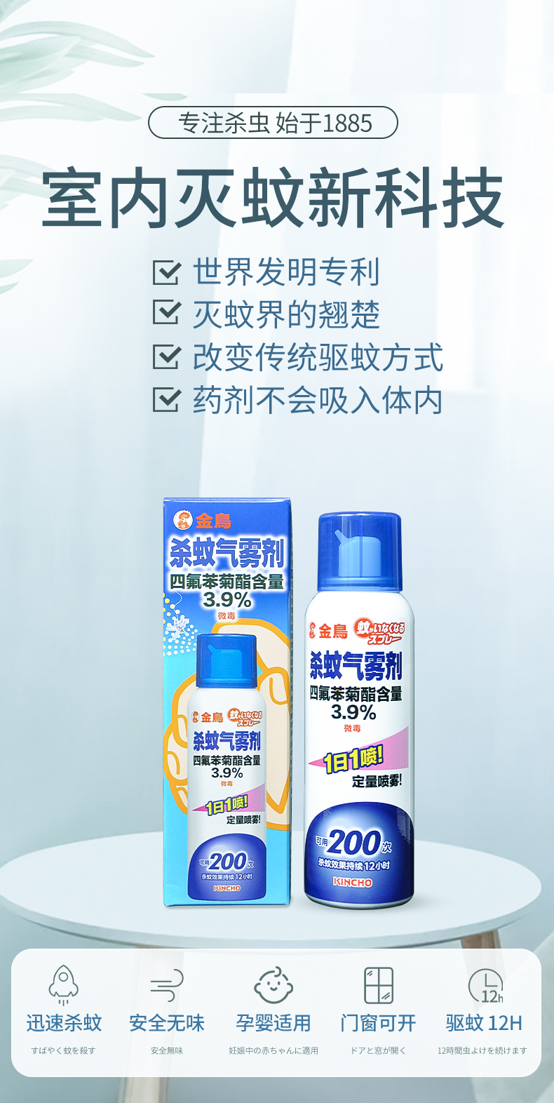 日本金鸟kincho有效防驱蚊定量喷雾家用室内神器婴儿童孕妇灭蚊液