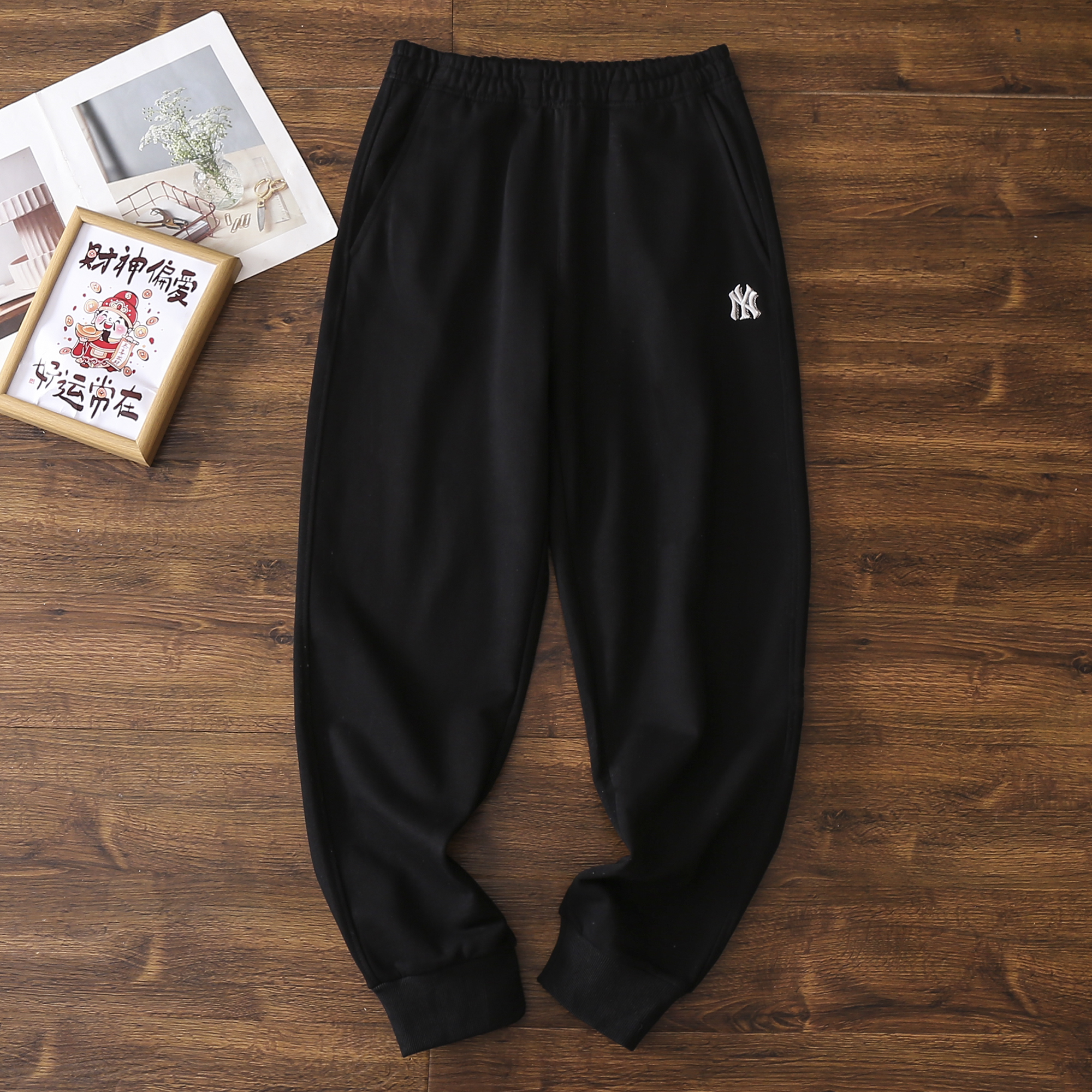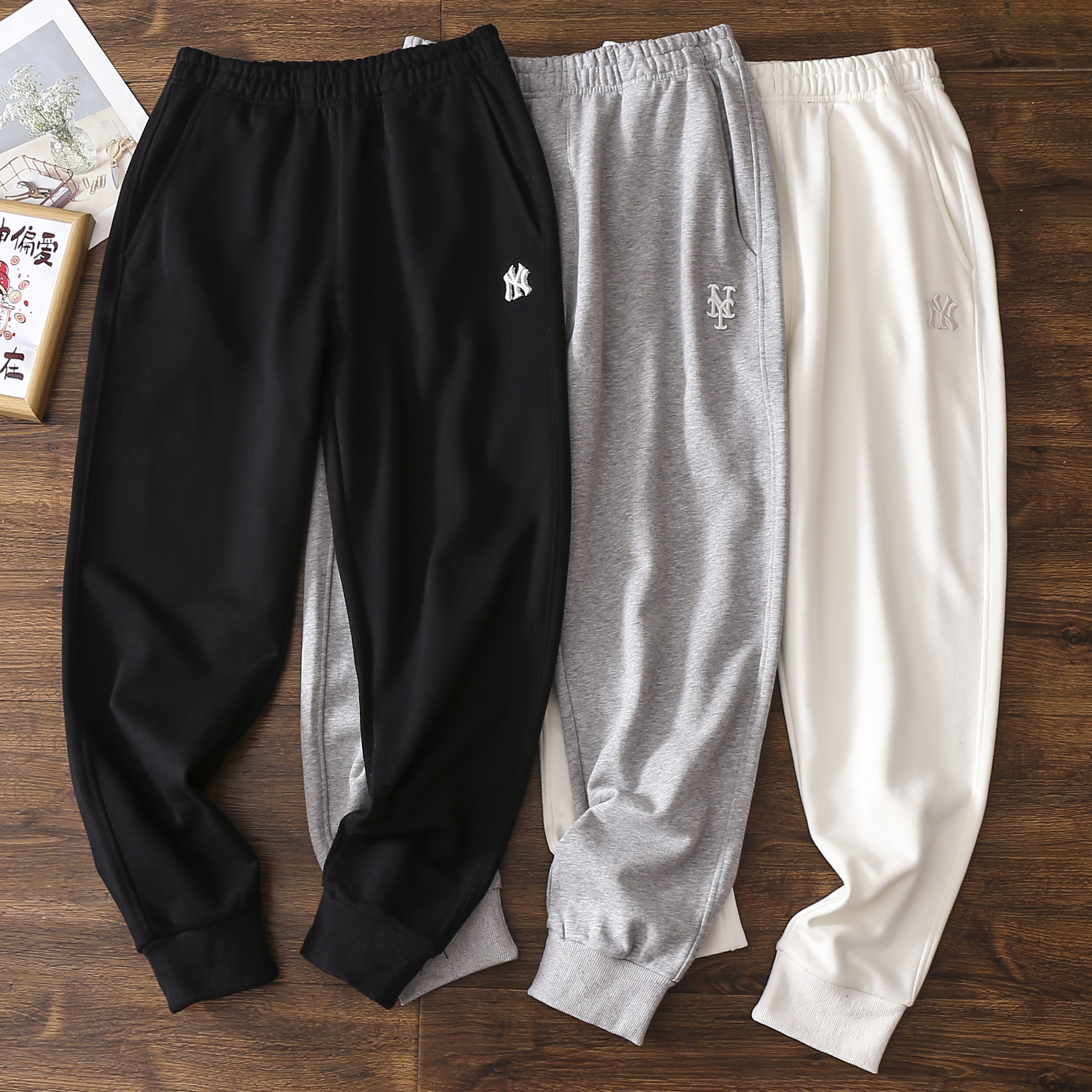 优选 | MLB经典小LOGO束脚长裤 黑色/奶油色/麻灰色 S-XL 显高又显瘦 松弛感