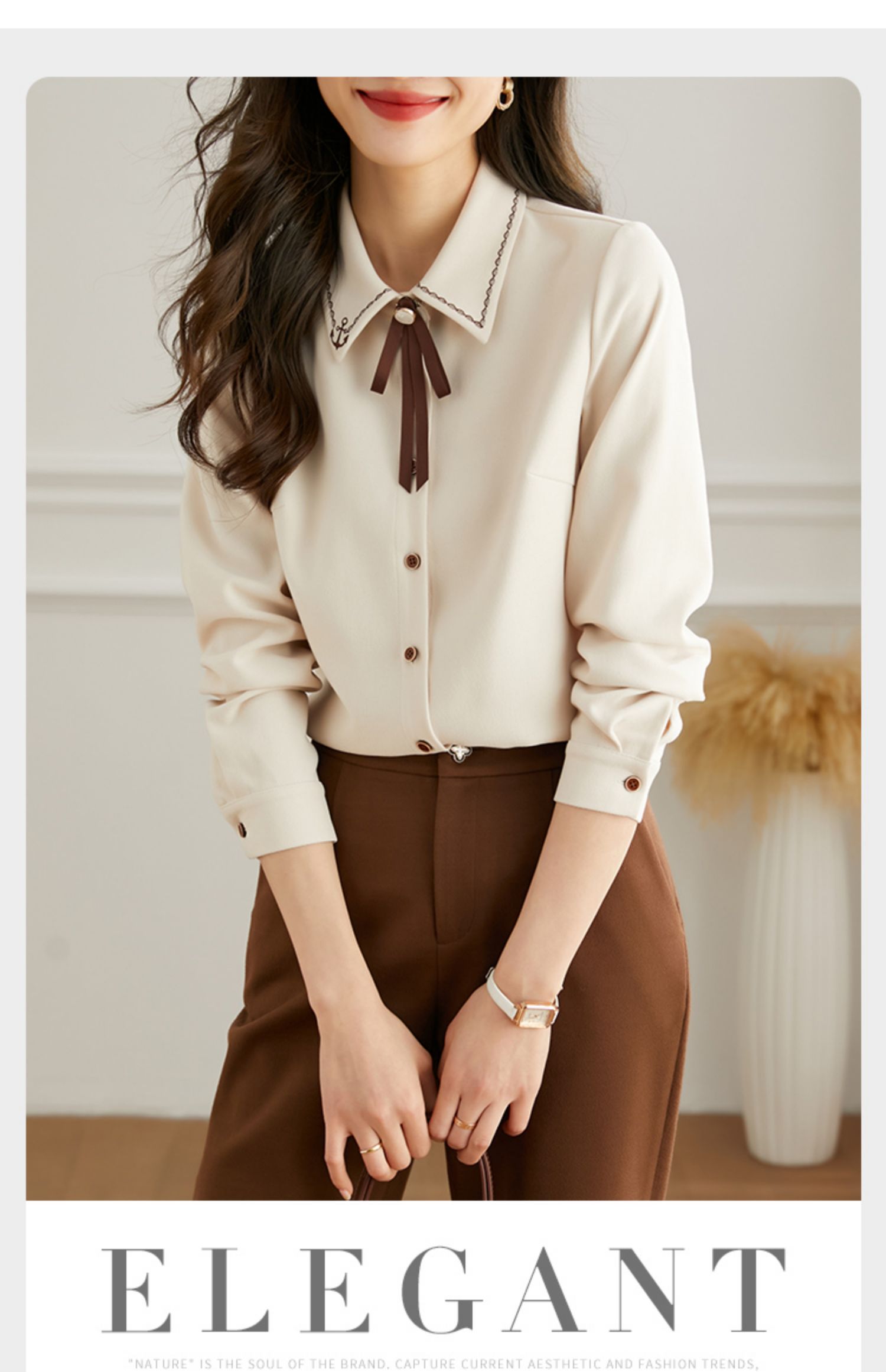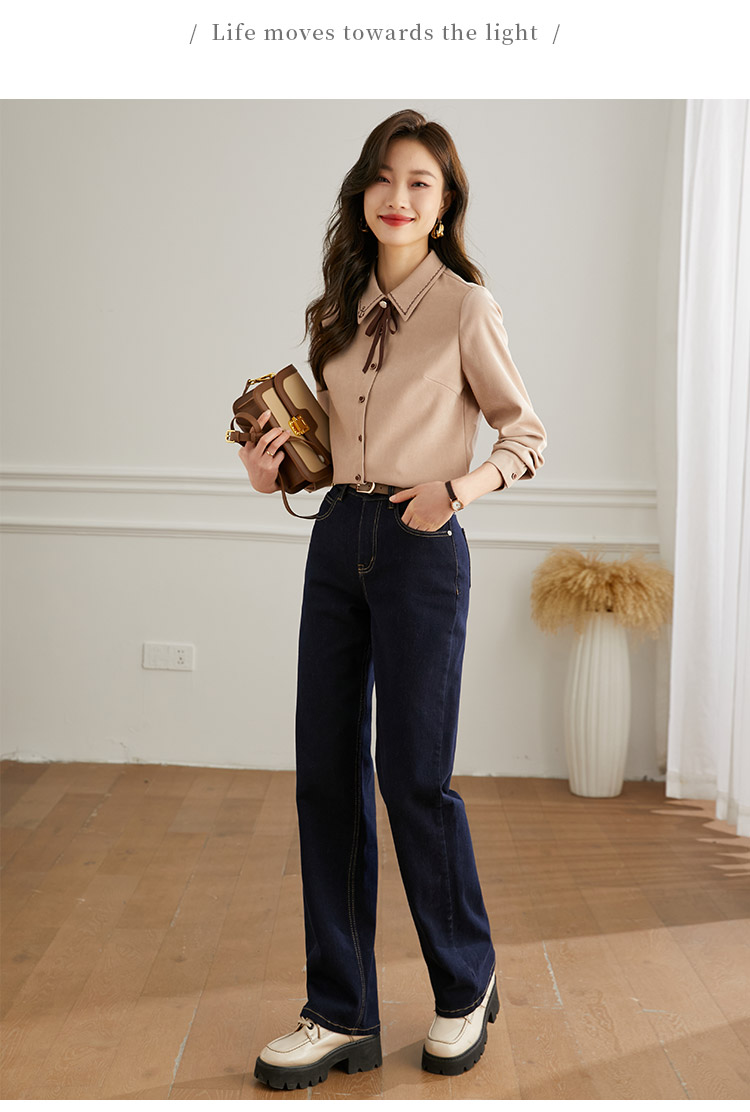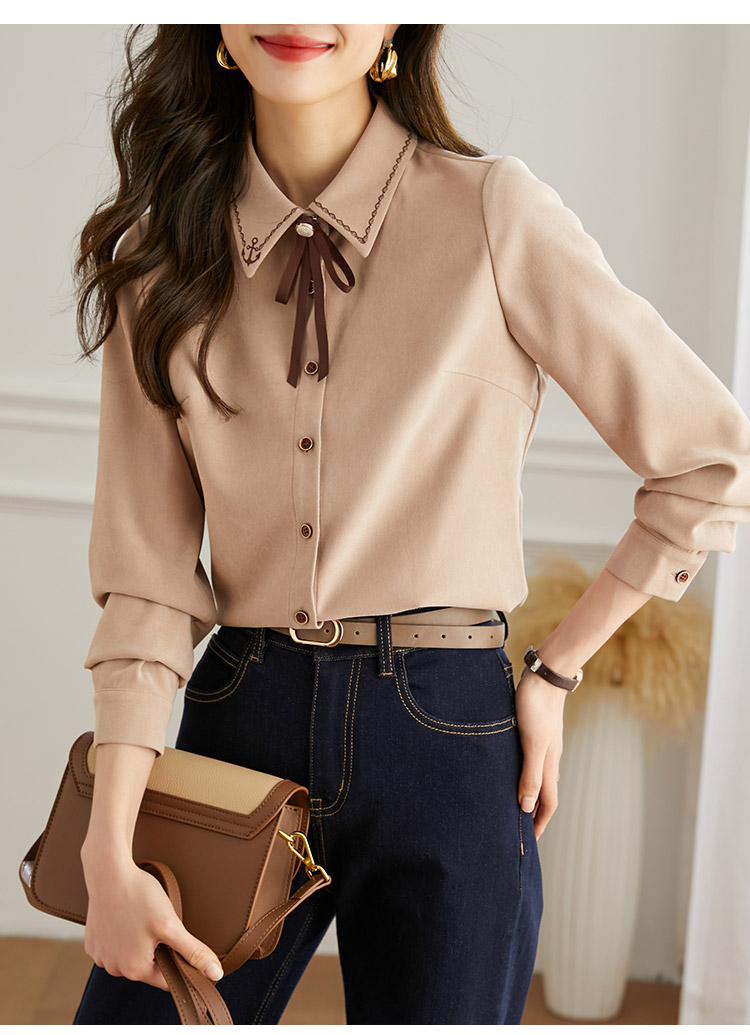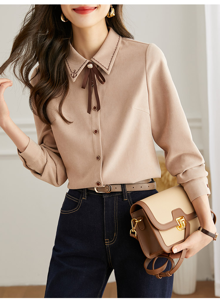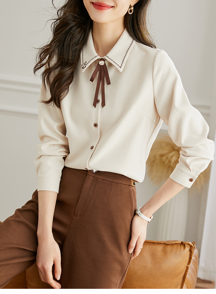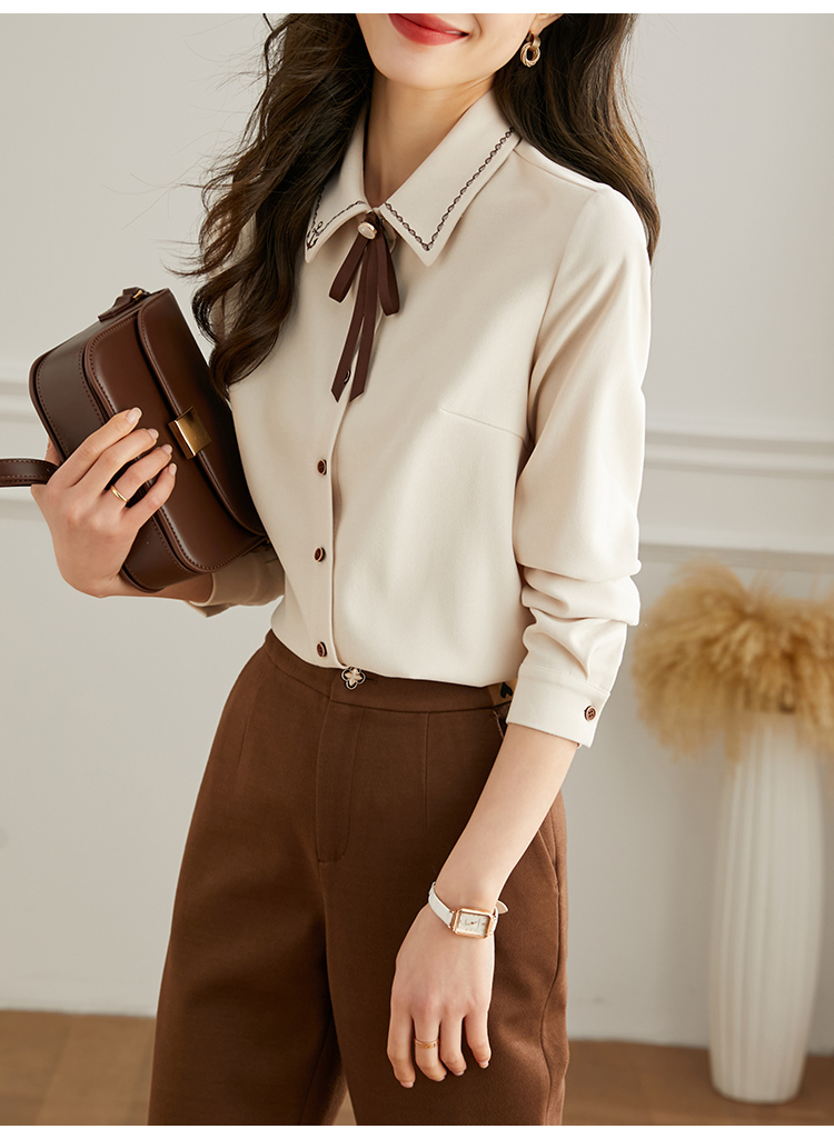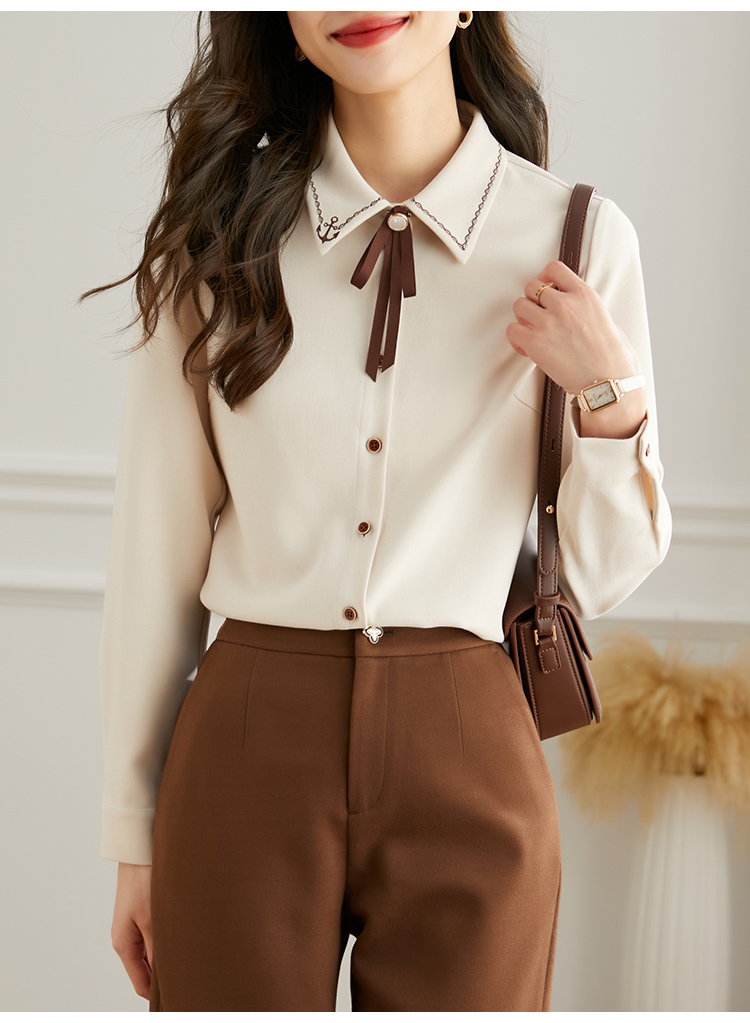 【年终特卖】熙世界通勤气质衬衫女2025年秋季新款优雅长袖翻领上衣设计感小众