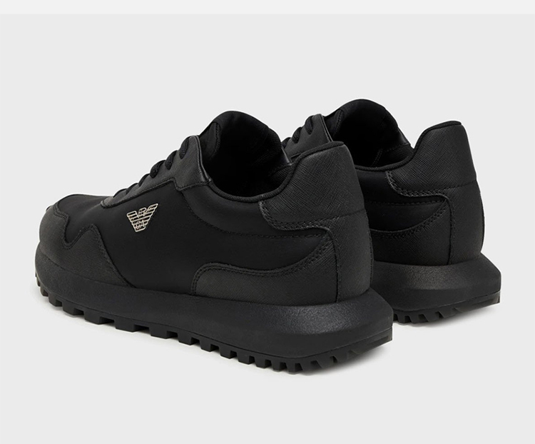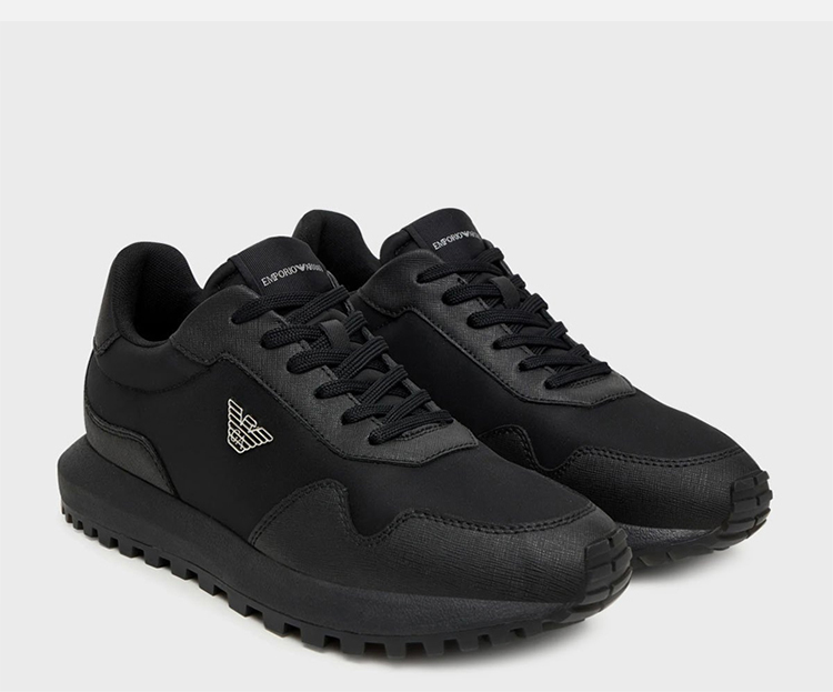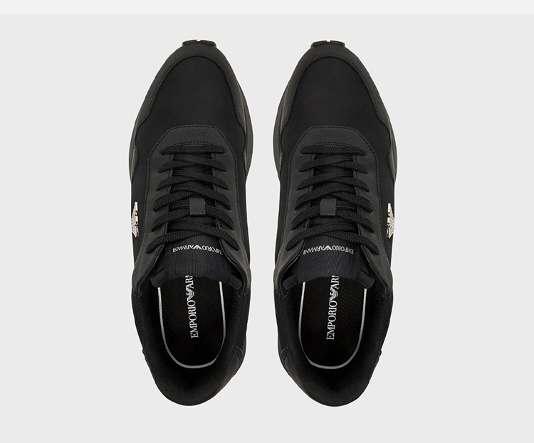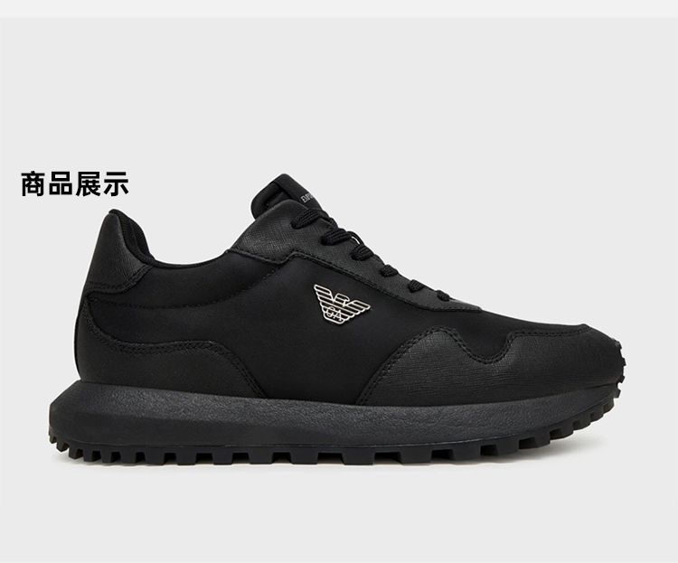 EMPORIO ARMANI 阿玛尼 男士小鹰徽标贴片系带休闲鞋 黑色 EM003738 AF19532 MC005