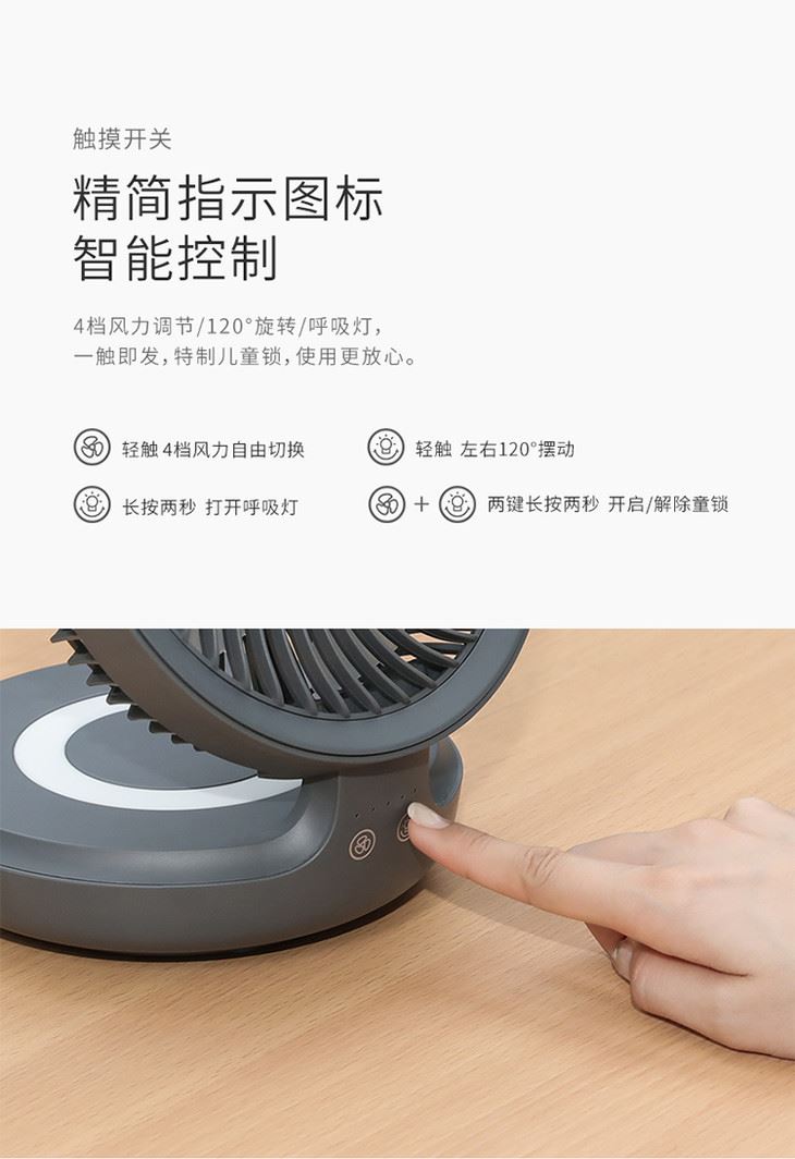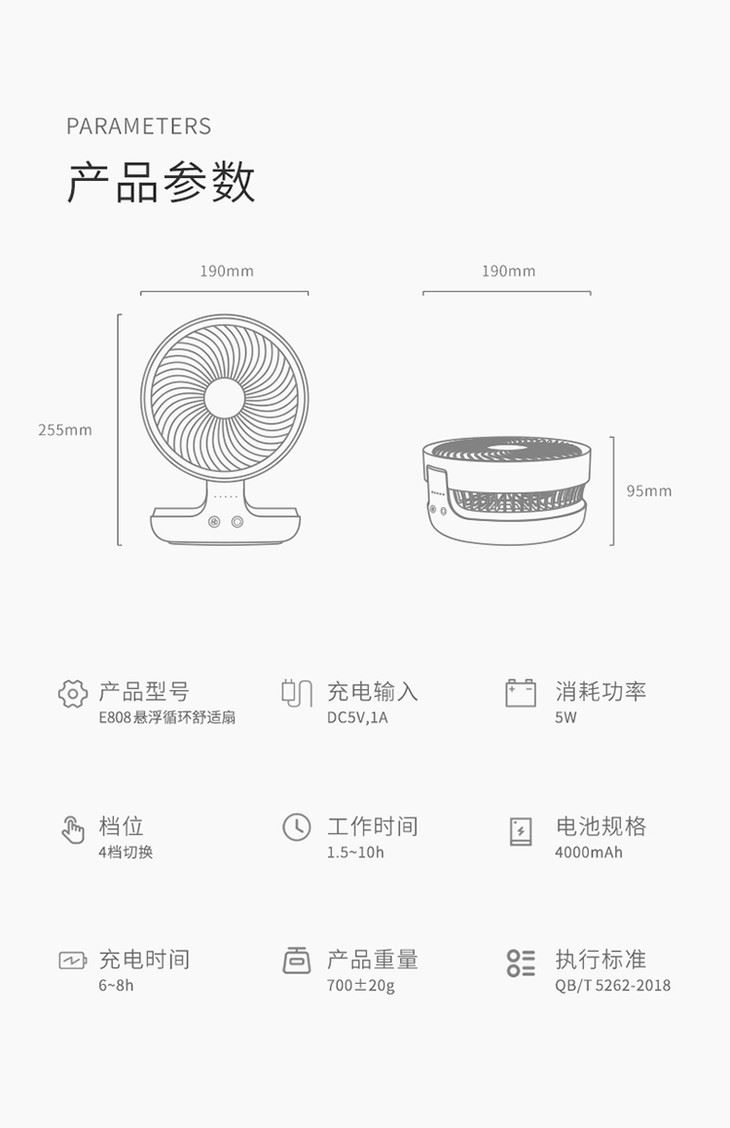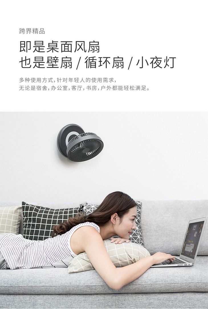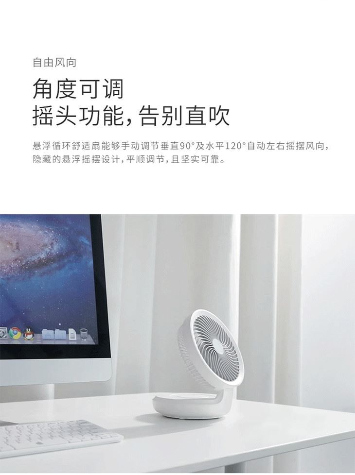 USB空气循环扇爱登808悬浮舒适扇便携折叠挂壁充电摇头小风扇