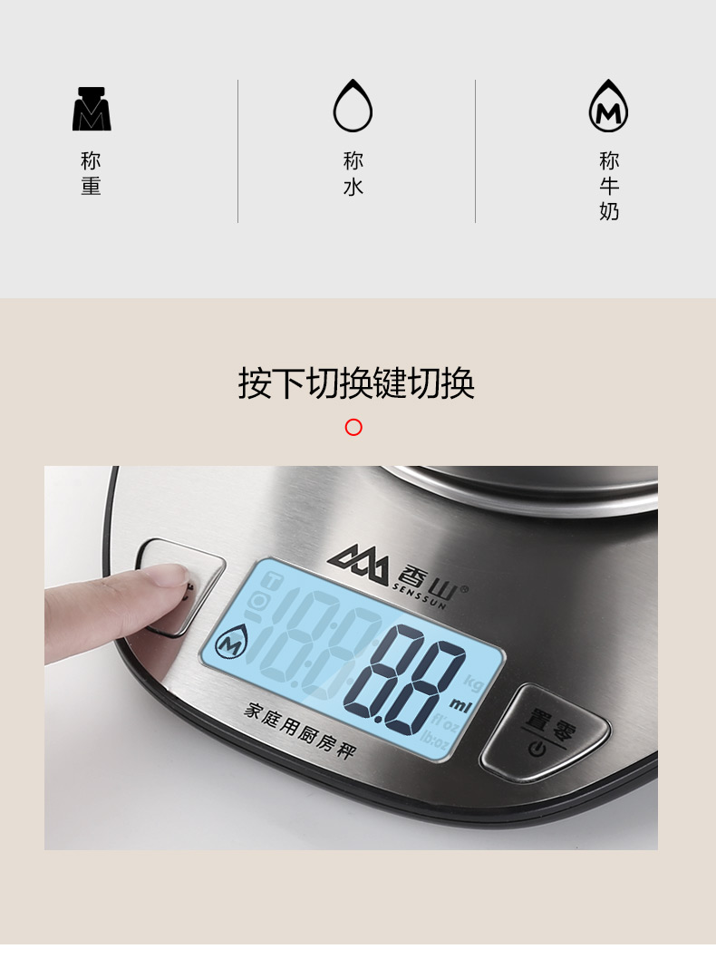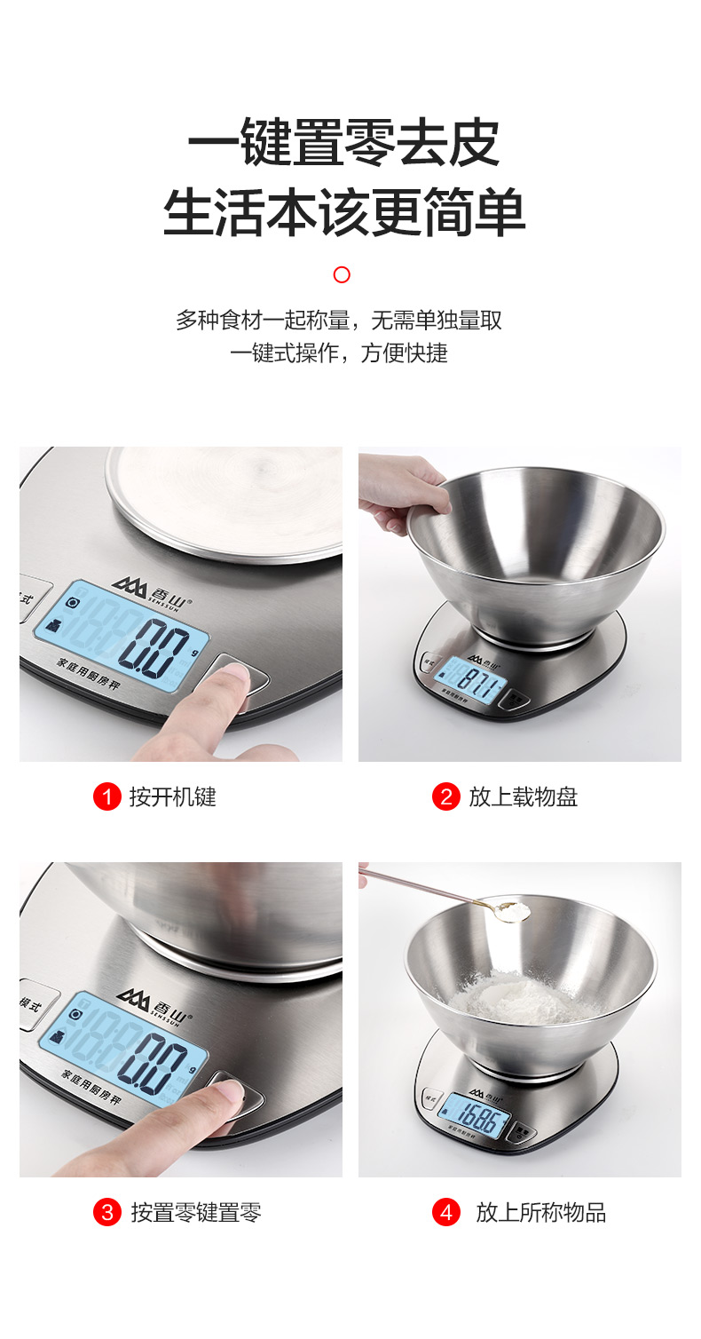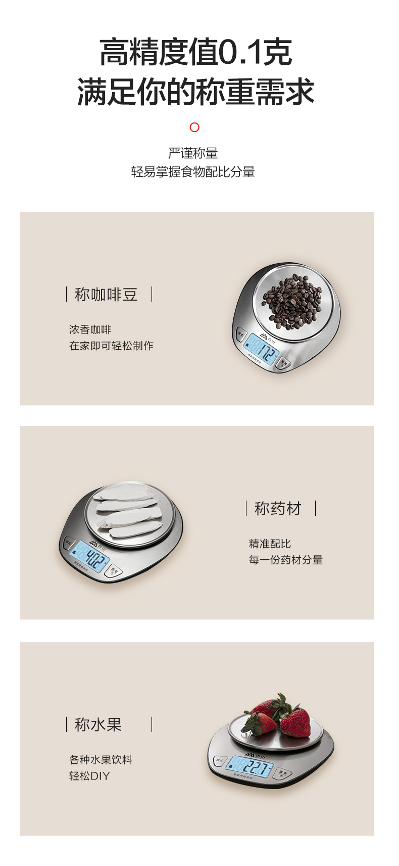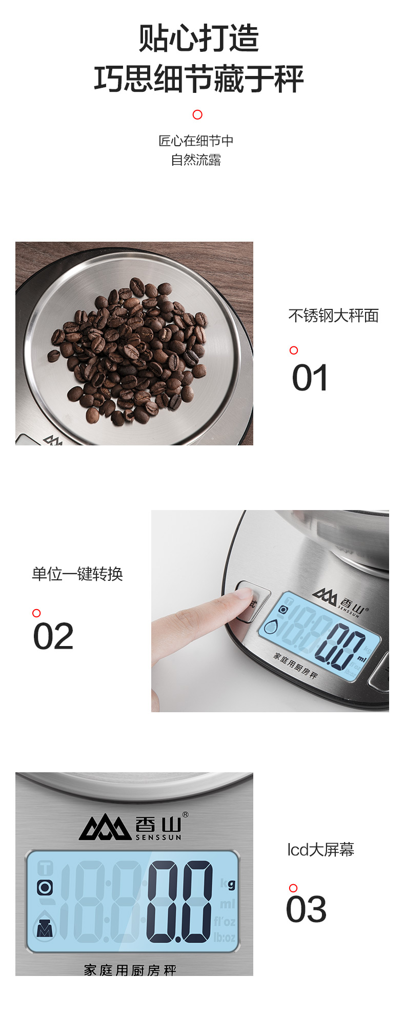 香山 厨房秤 家用烘焙秤电子秤厨房称 0.1g精准不锈钢珠宝称 EK518(银色)