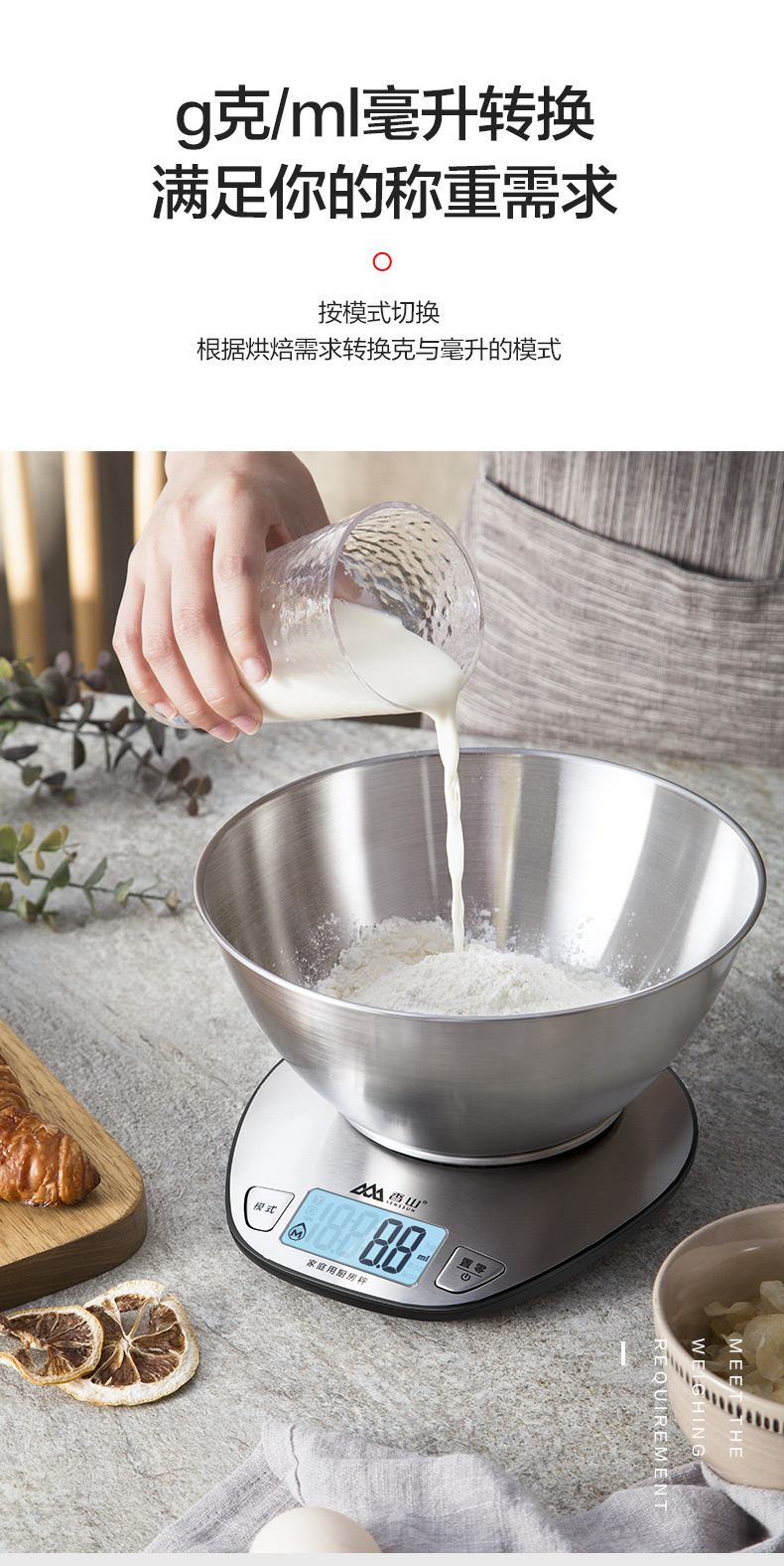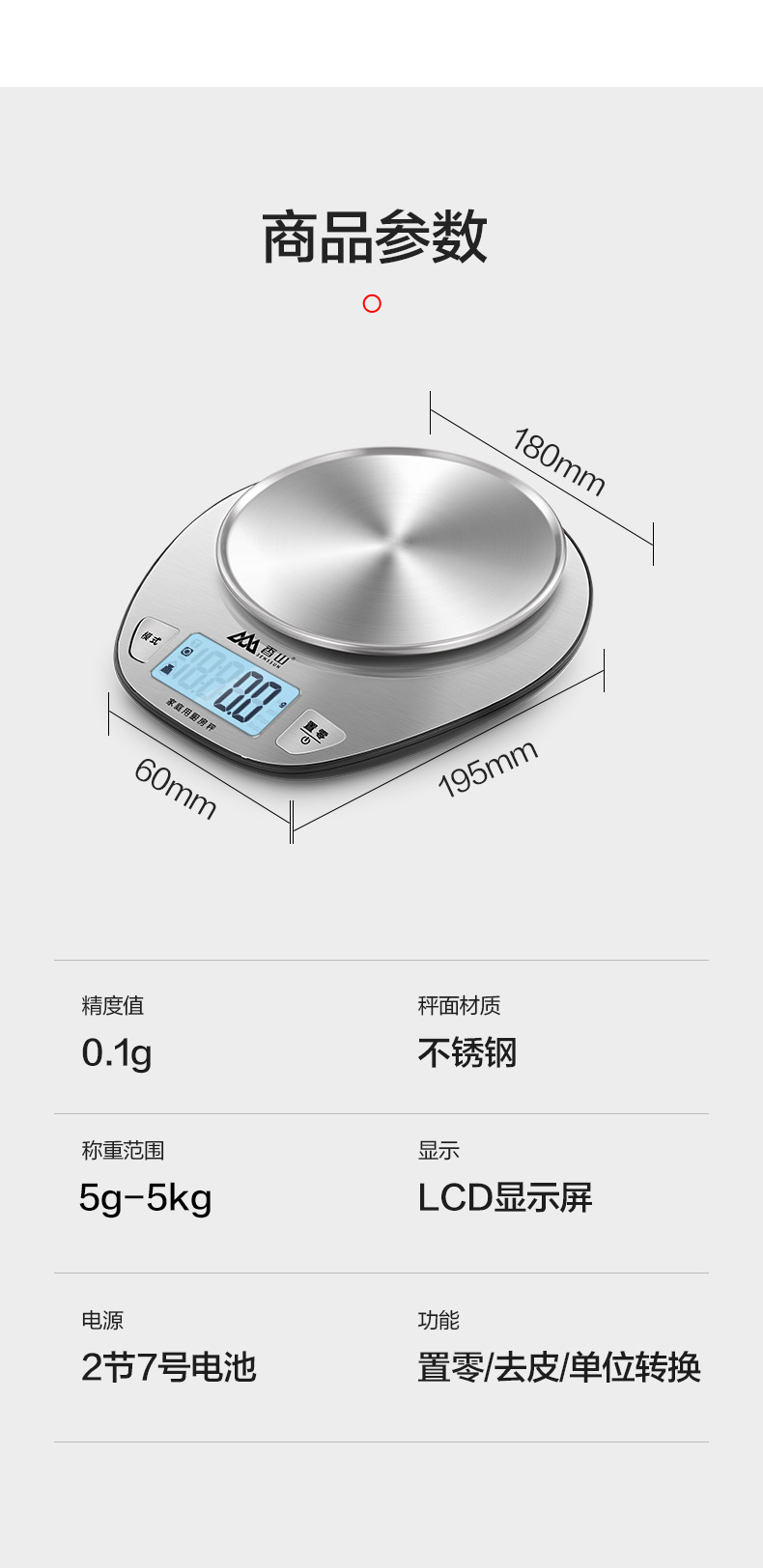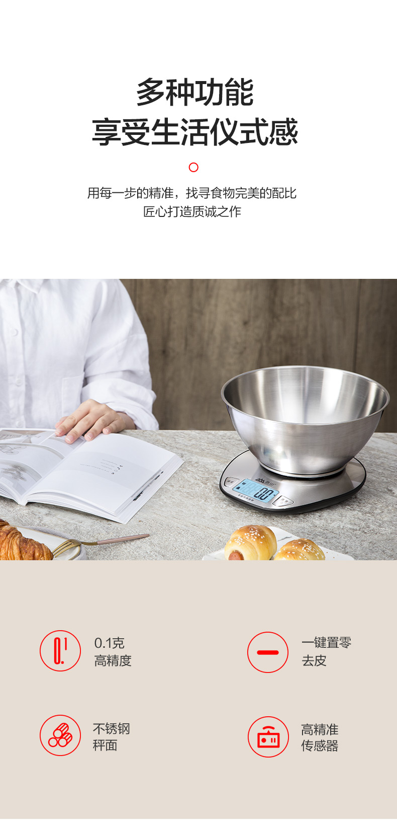 香山 厨房秤 家用烘焙秤电子秤厨房称 0.1g精准不锈钢珠宝称 EK518(银色)